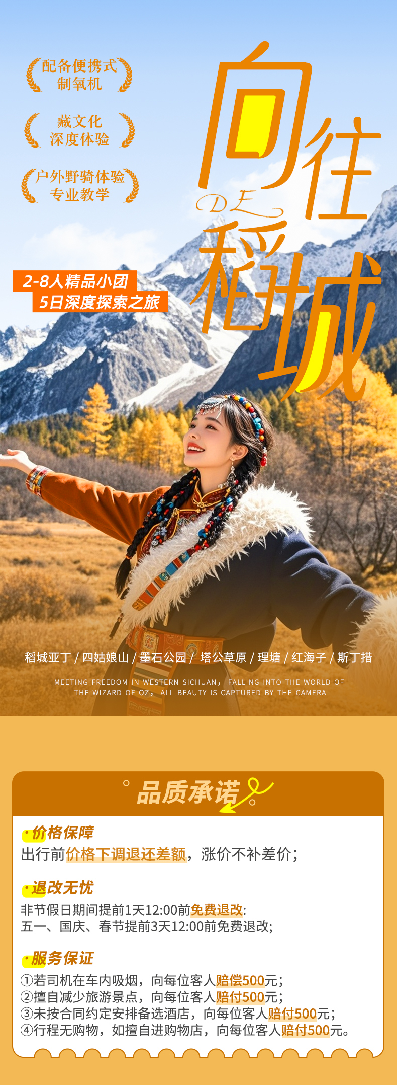 稻城5天 四姑娘山2-8人小团 便携式制氧机+藏文化深度体验 打卡稻城亚丁/四姑娘山双桥沟/墨石公园/塔公草原/理塘/八郎生都
