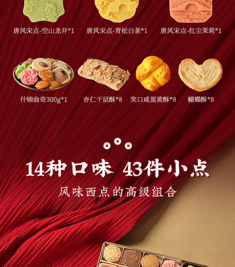 【臻萃缤盈】悠享时曲奇饼干糕点蝴蝶酥过年走亲戚送礼品新年高端点心615g