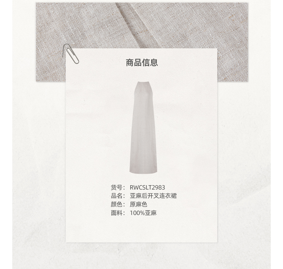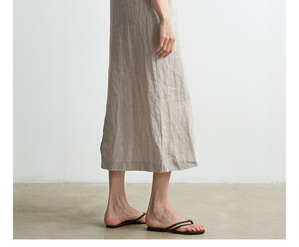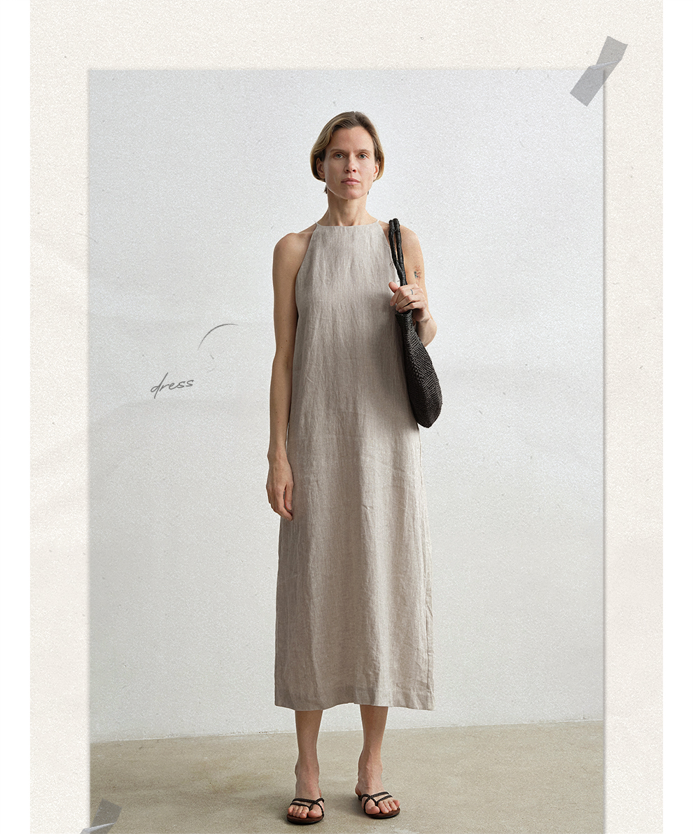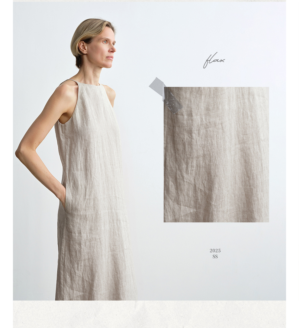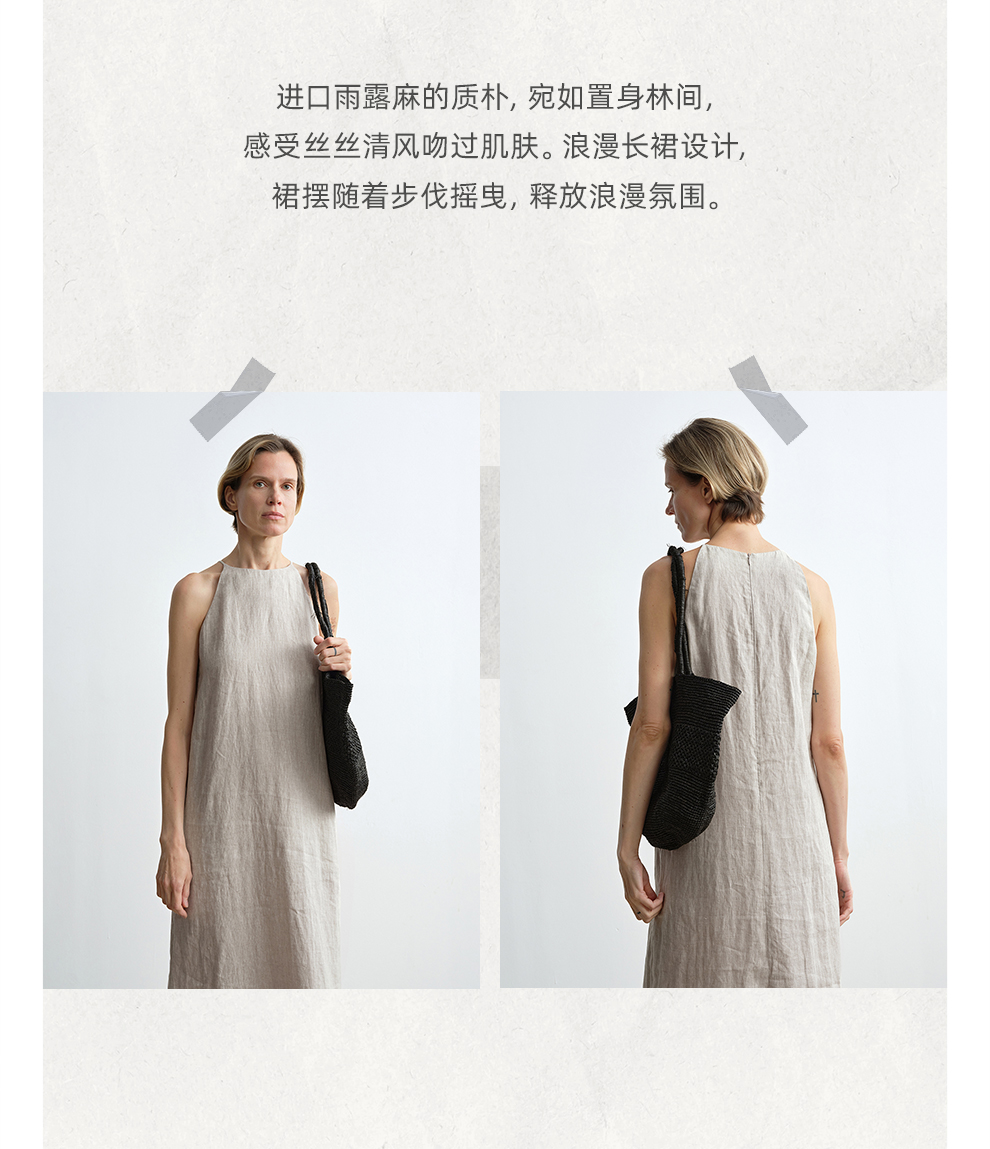 ROMI STUDIO法国进口雨露麻 天然原麻色100%亚麻连衣裙RWCSLT2983