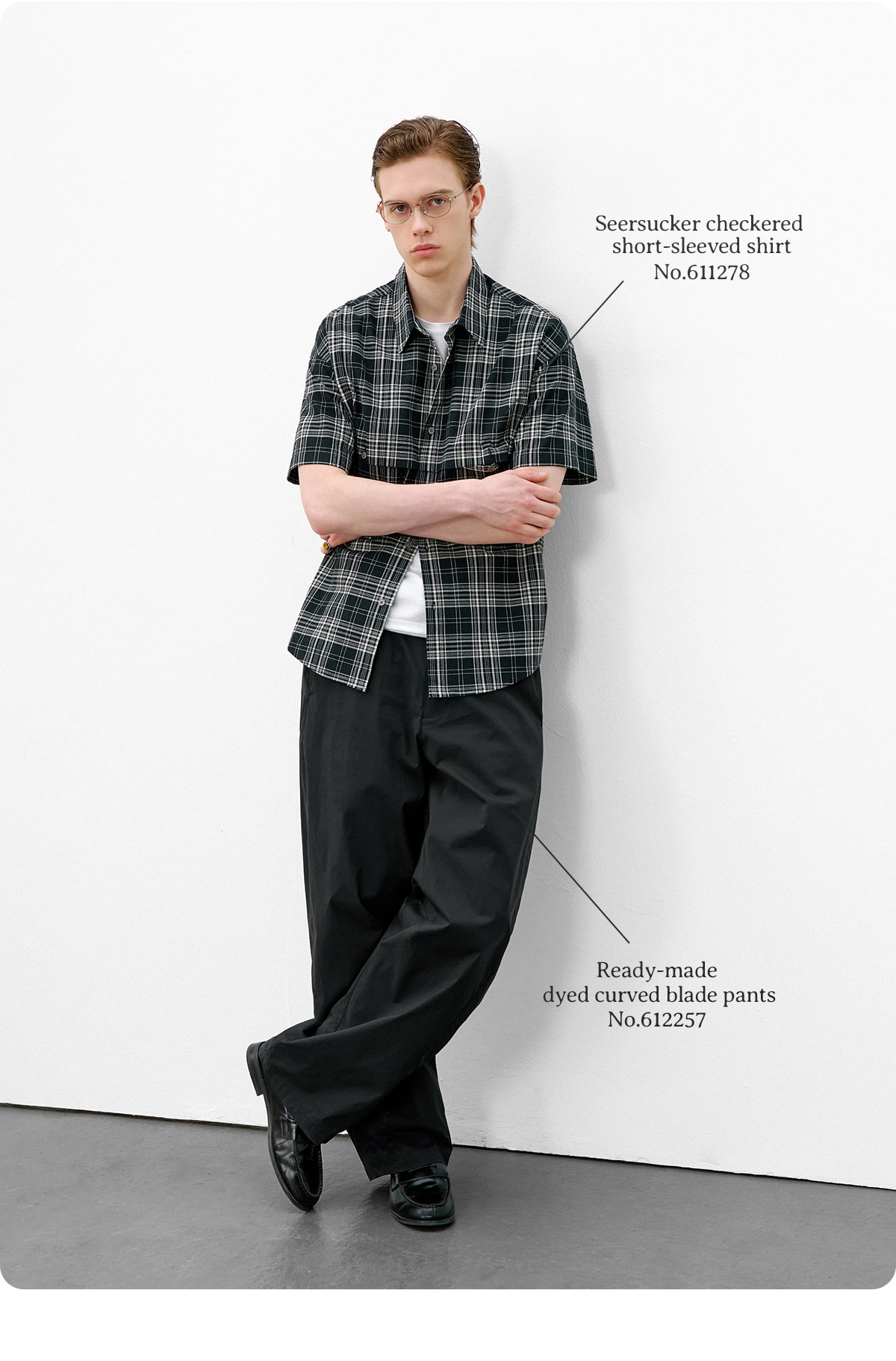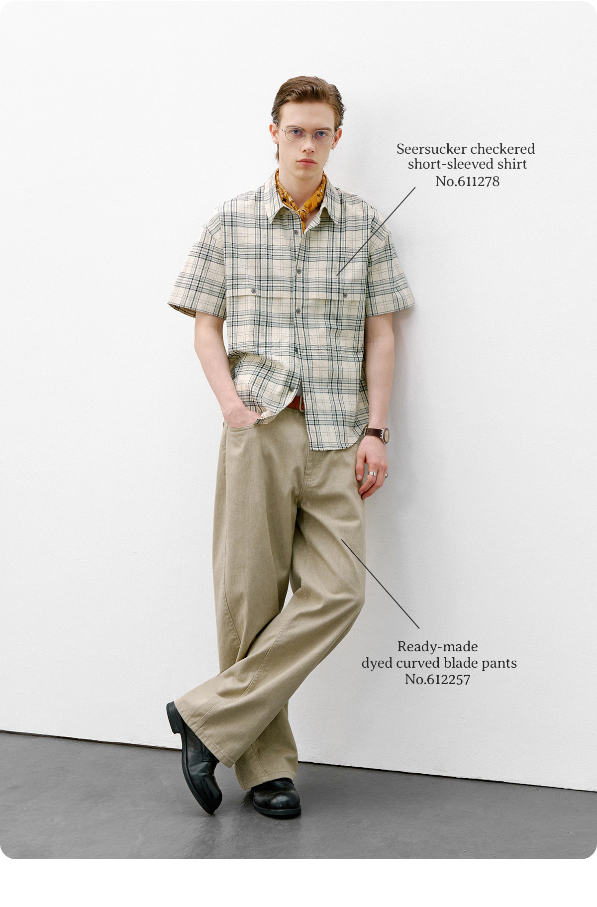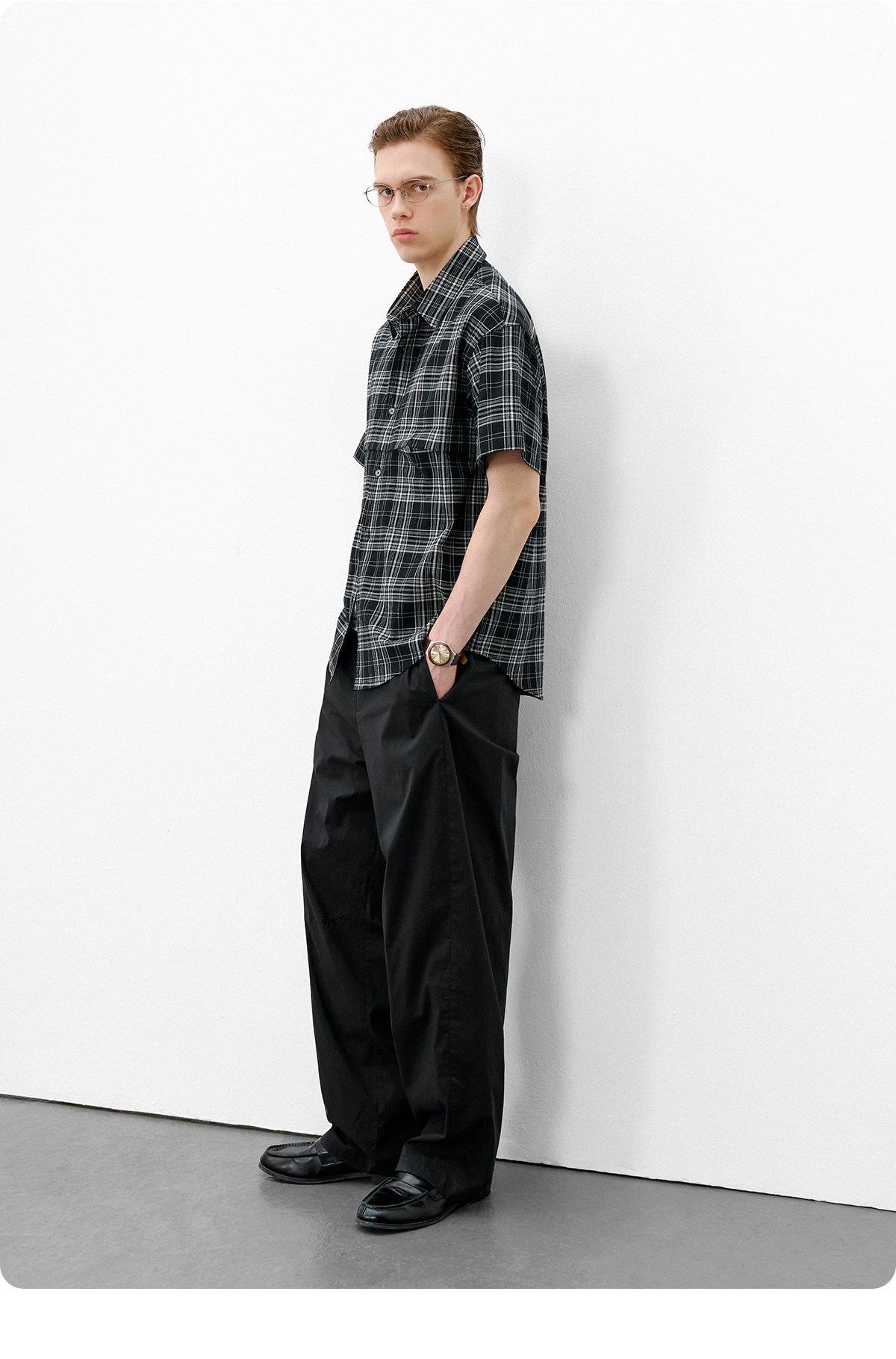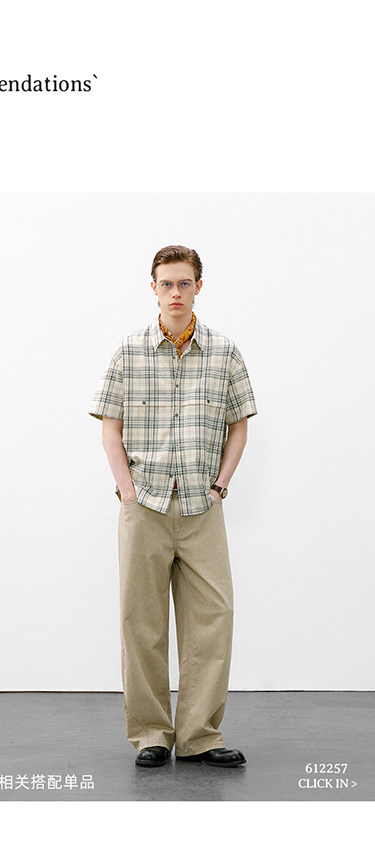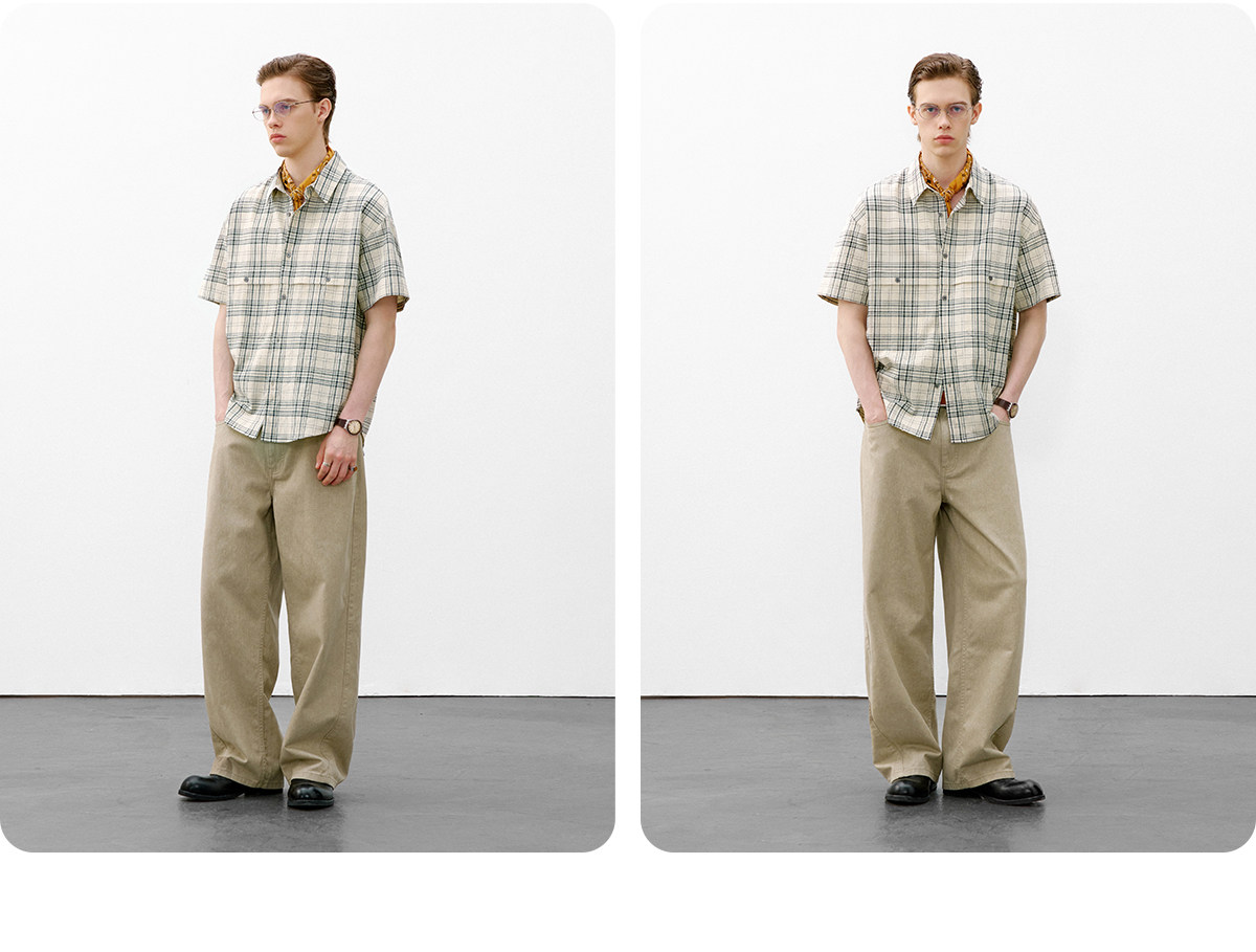 714street夏季新款日系休闲高级感凹凸微皱肌理格子短袖衬衫男款