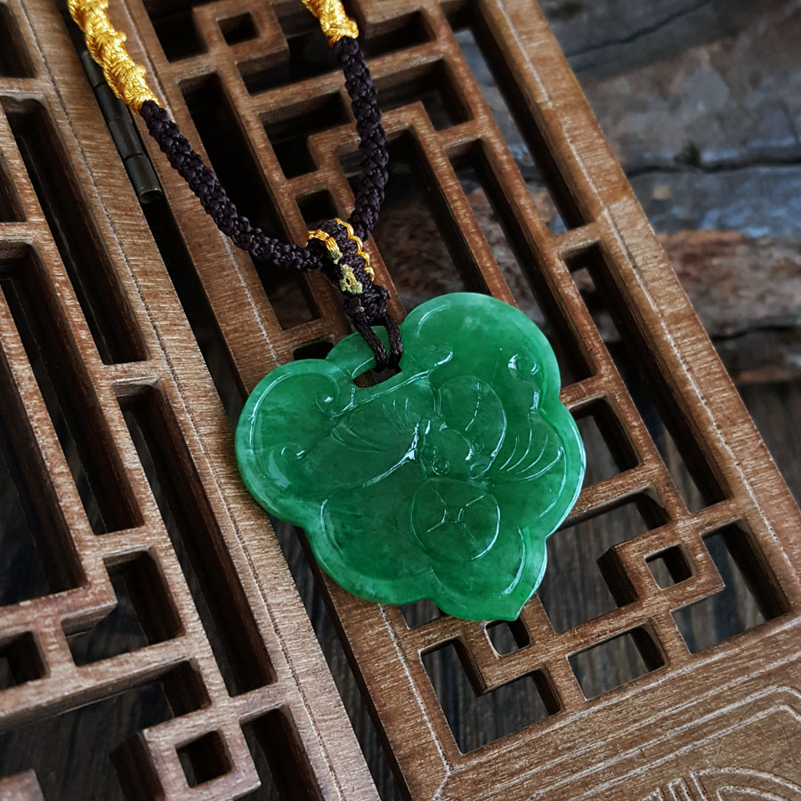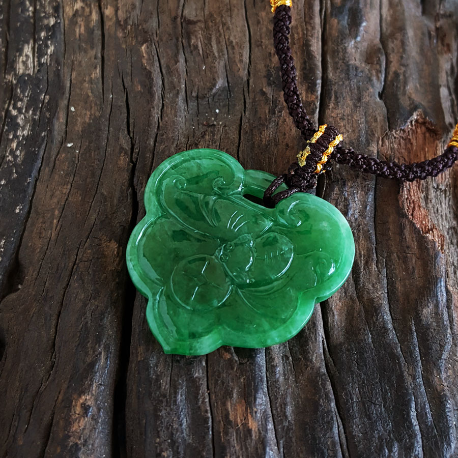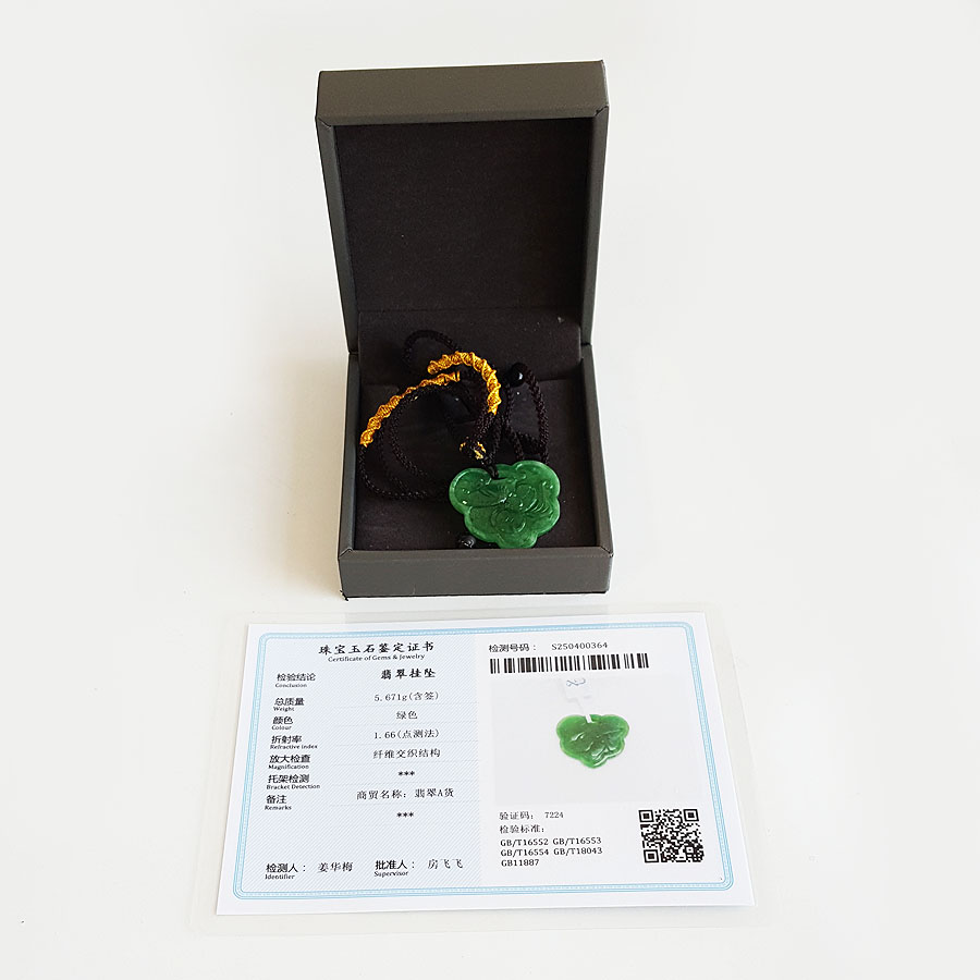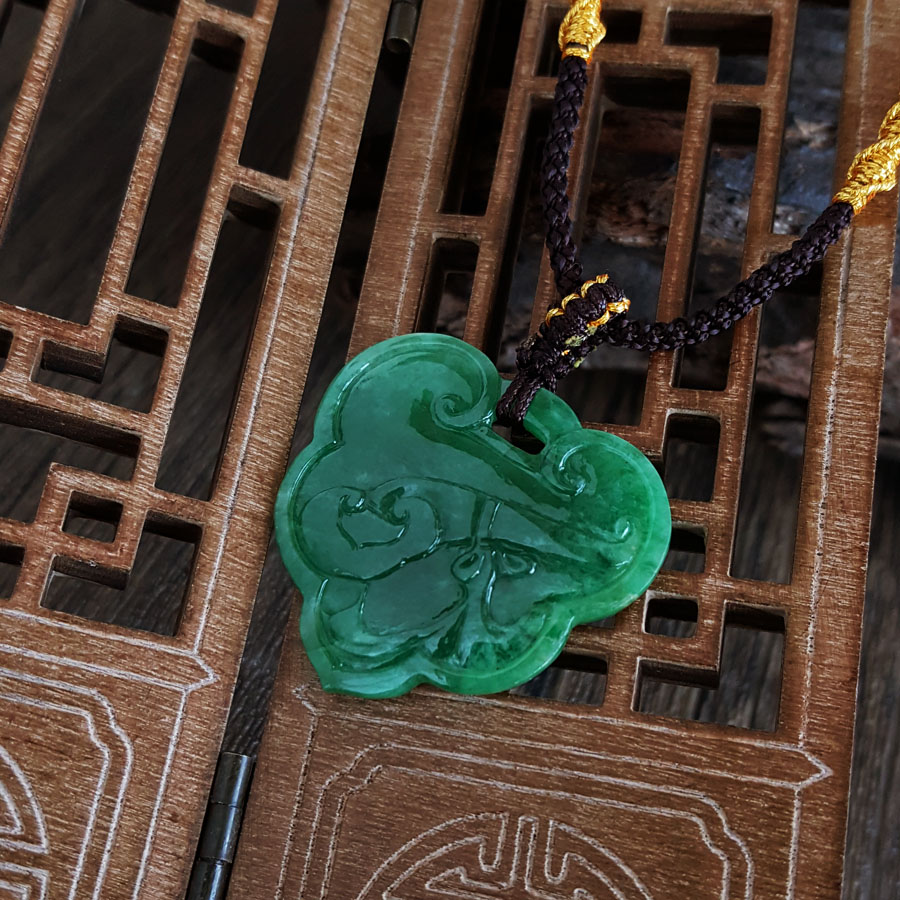 名称 | 天然细腻糯种满绿如意(万事如意)翡翠吊坠项链 |