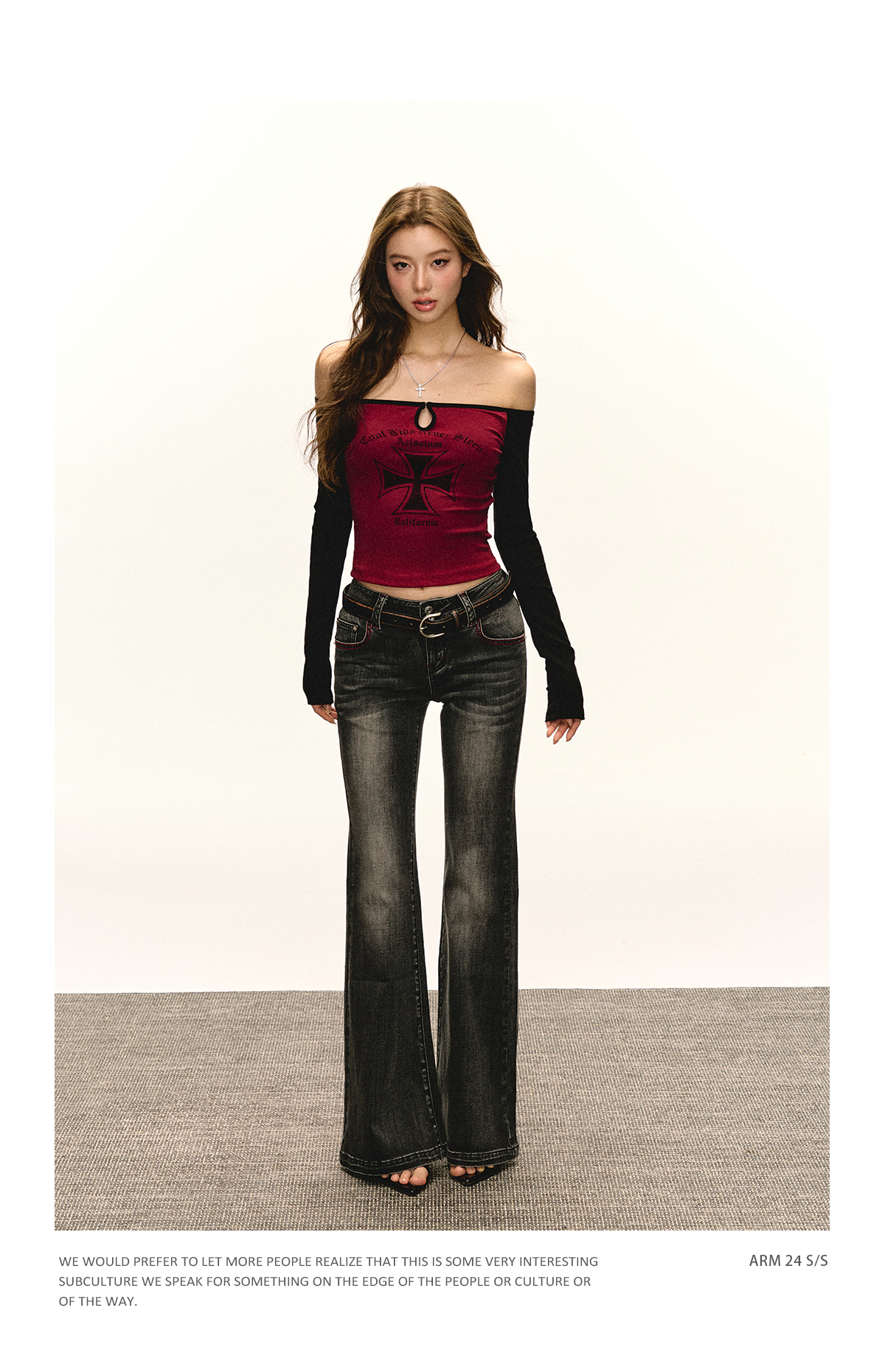 Ariseism 美式复古白色一字肩套装女春季新款两件套