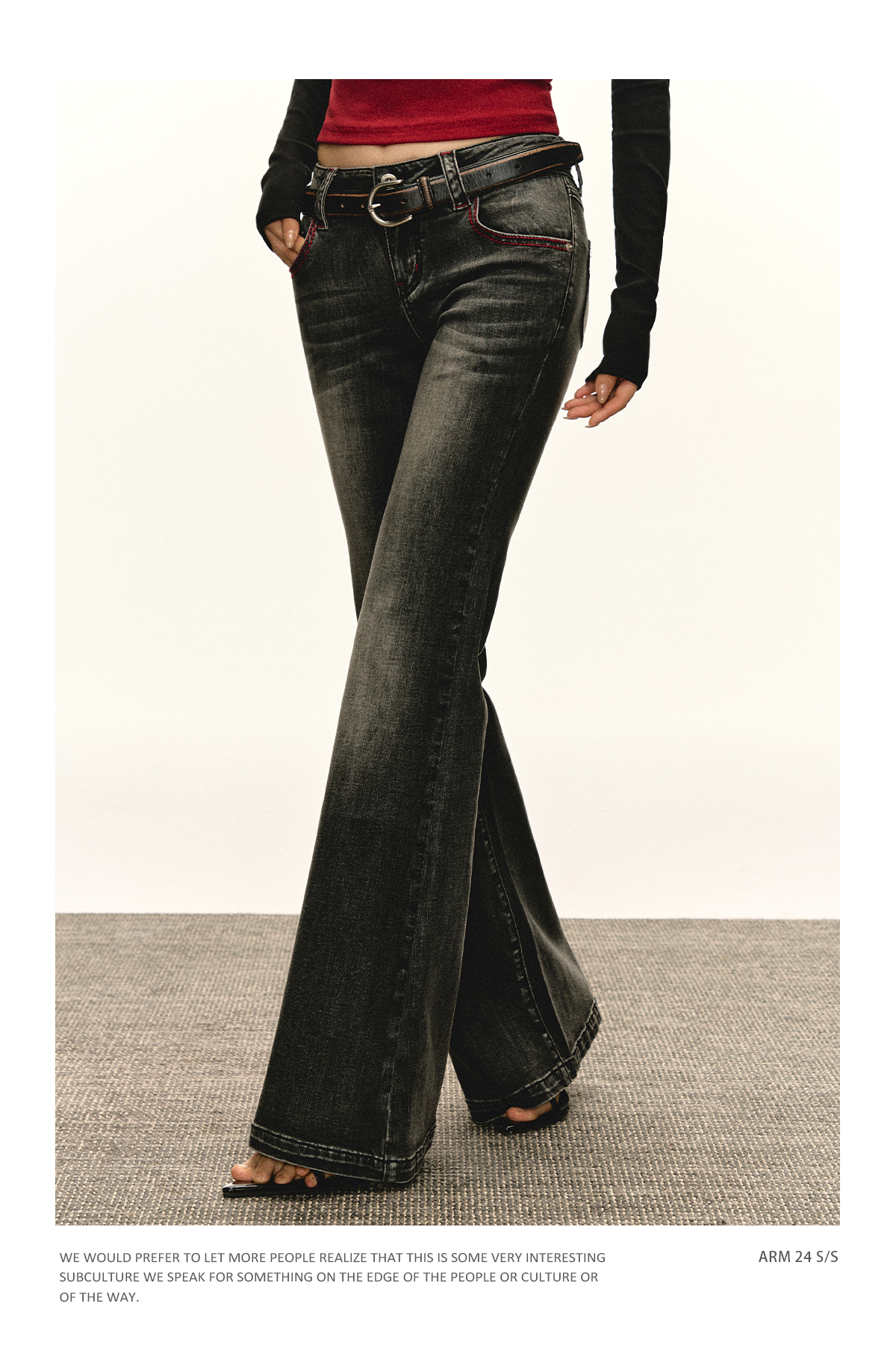 Ariseism 美式复古低腰做旧微喇叭牛仔裤女春秋新款修身长裤子