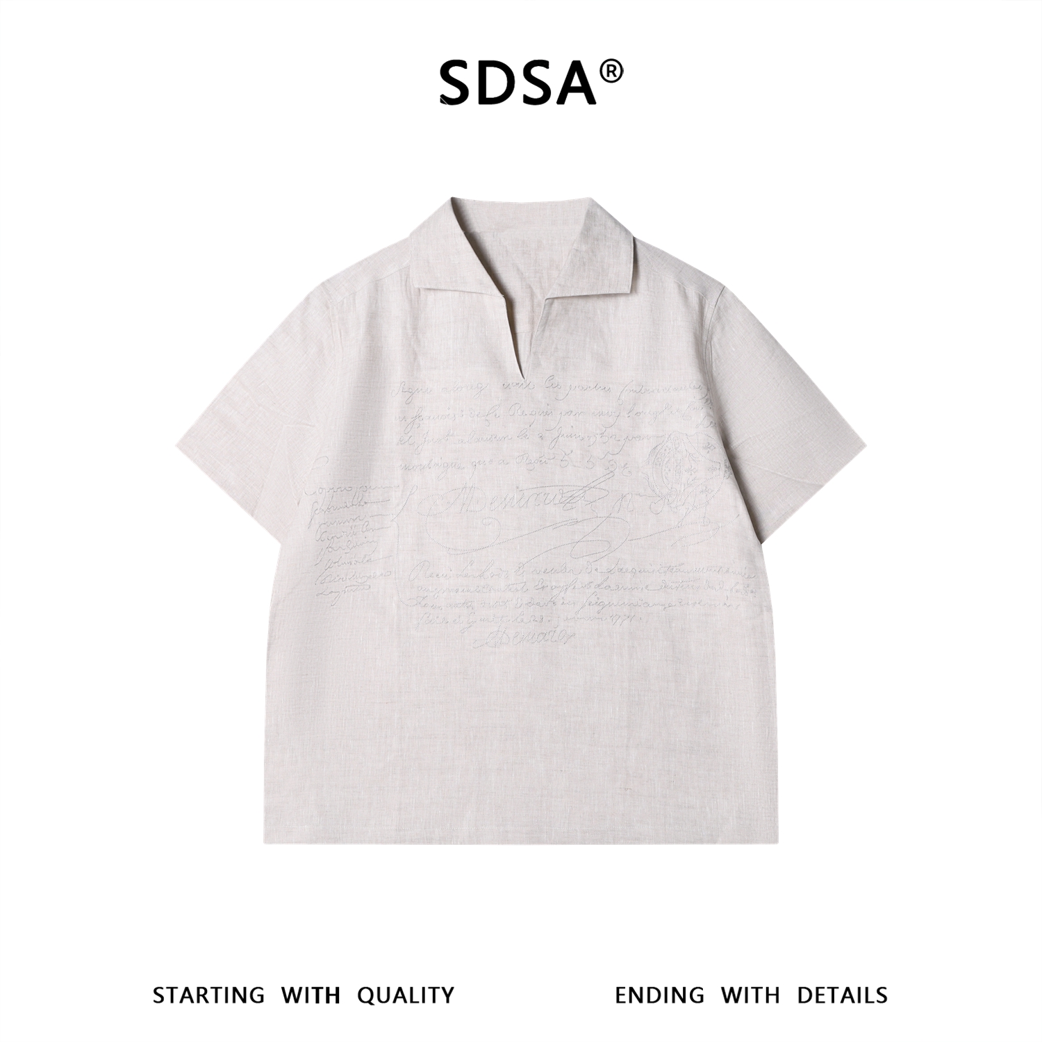 SDSA男装2026新款高贵轻奢简约刺绣字母小V翻领短袖T恤百搭上衣
