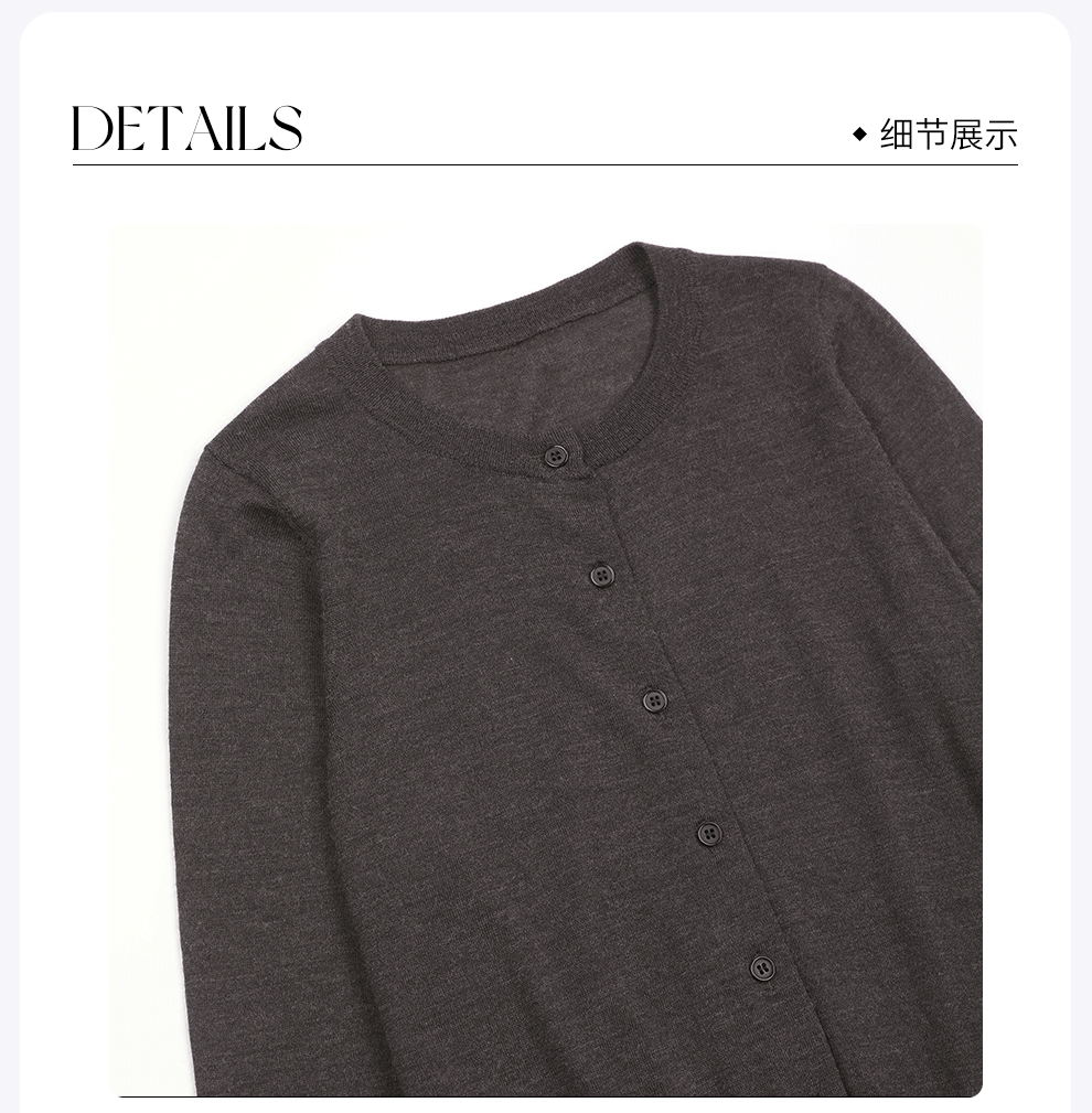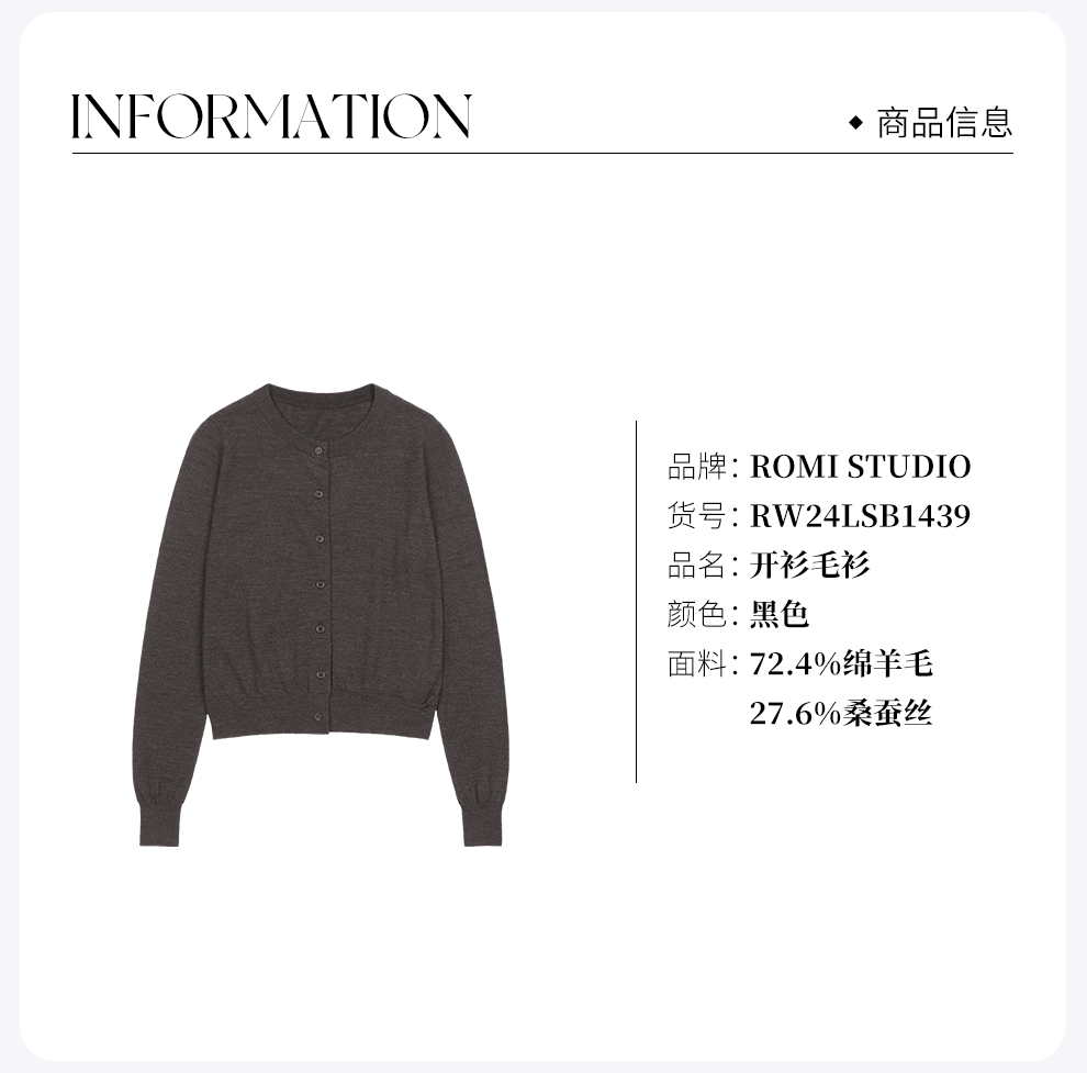 ROMI STUDIO“简约老钱”超细美丽诺绵羊毛混纺圆领开衫RW24LSB1439