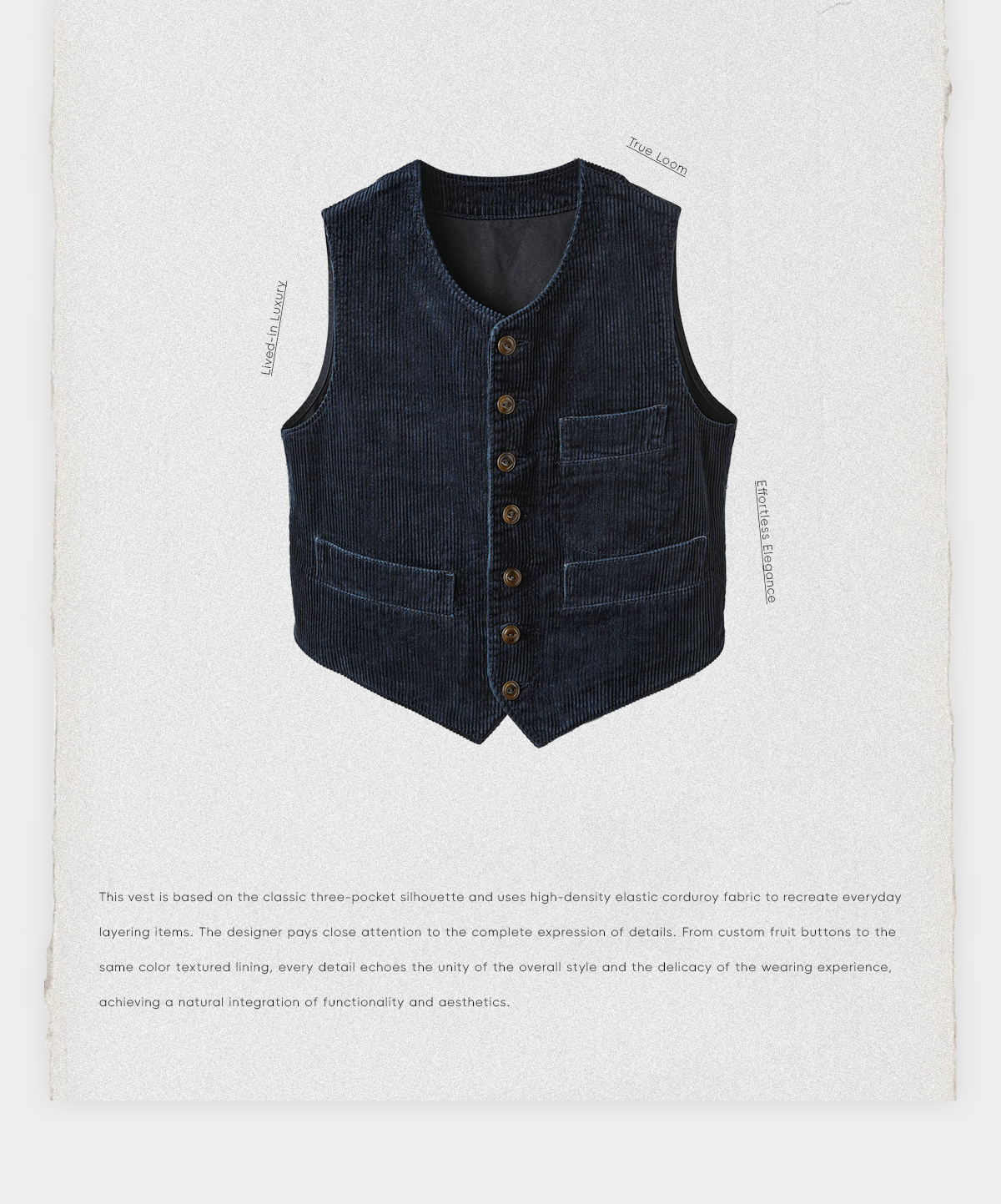 ROMI STUDIO高密弹力灯芯绒马甲复古百搭V领肌理感马夹RWCAW86449
