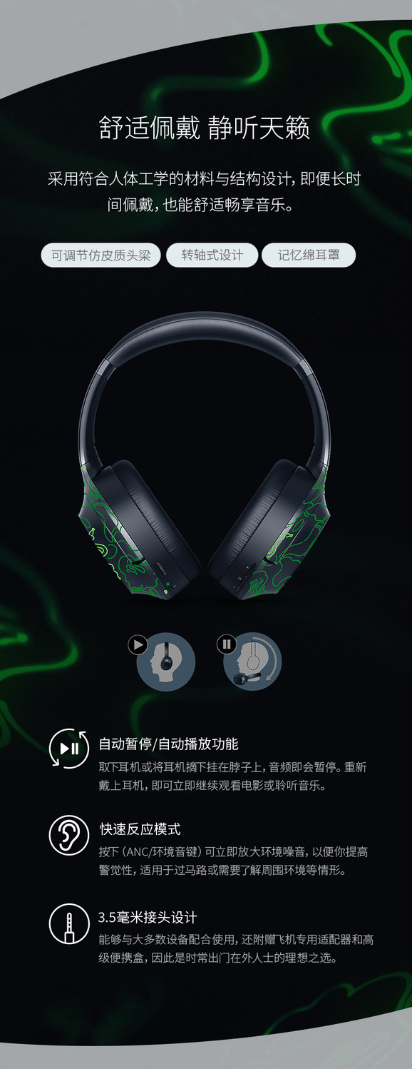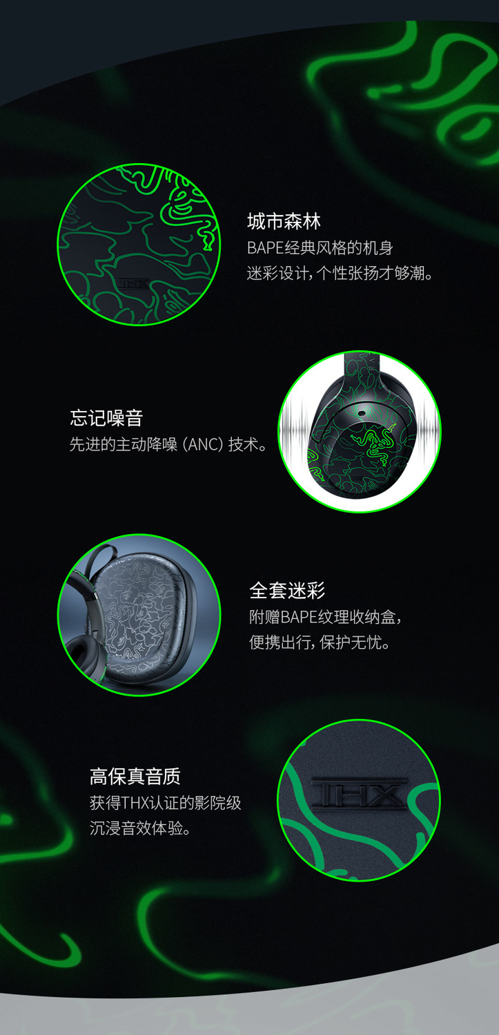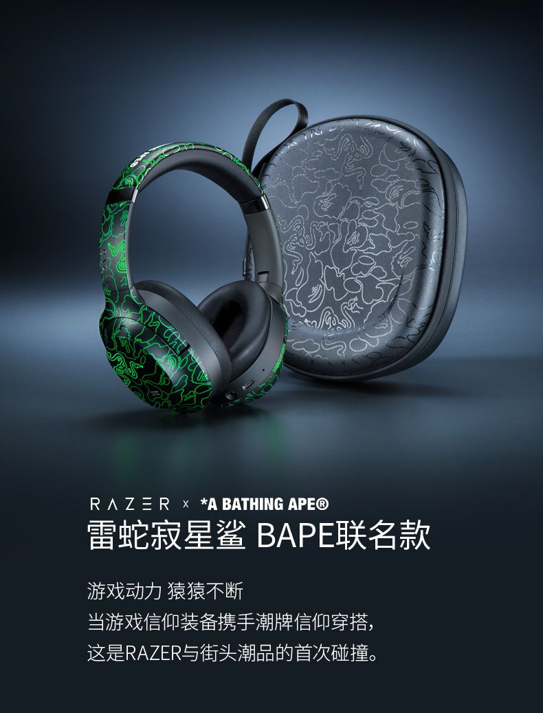 Razer雷蛇BAPE限定款寂星鲨无线蓝牙耳机【雷蛇官方直营,3年有限质保】