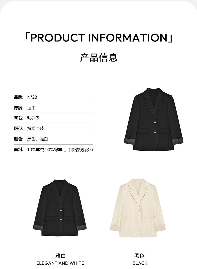 【破价】N°28 秋冬款气质修身毛呢西装外套羊绒舒适双面呢大衣8A51D677