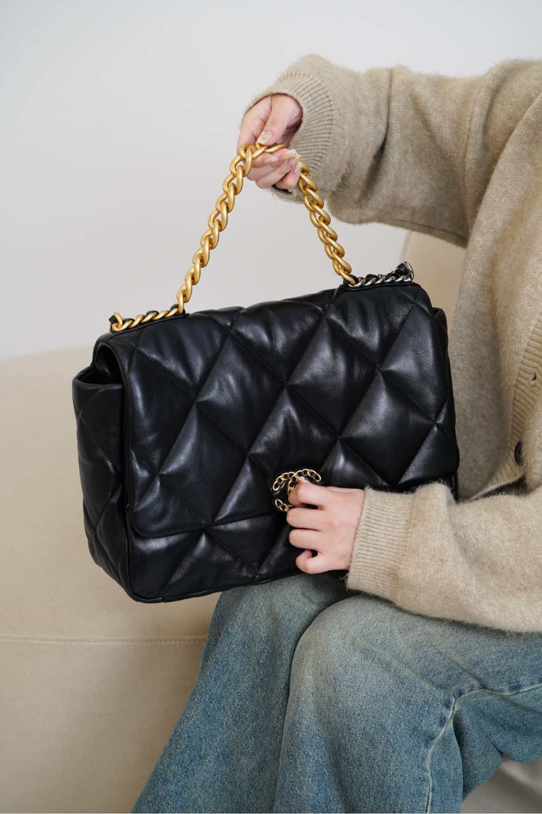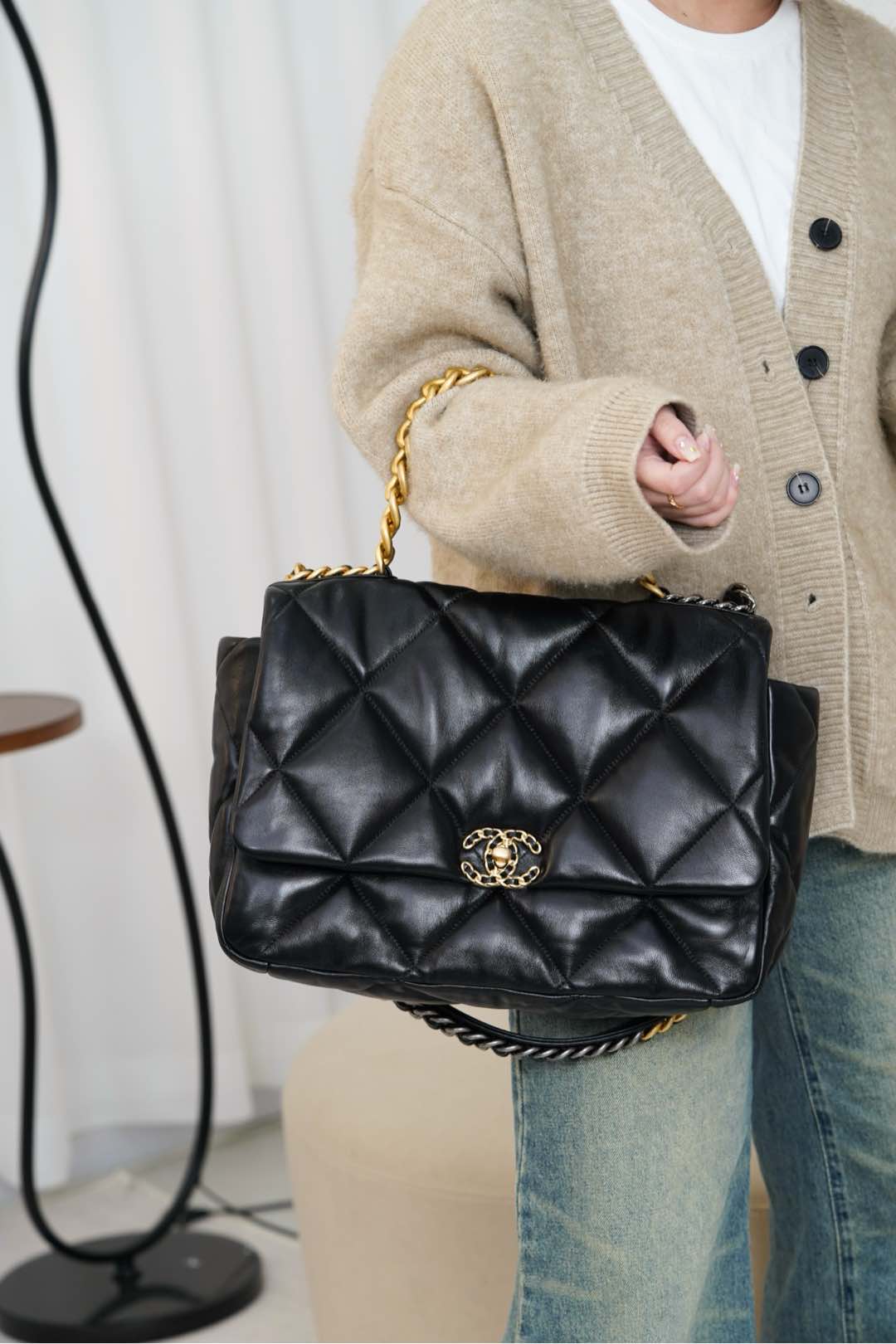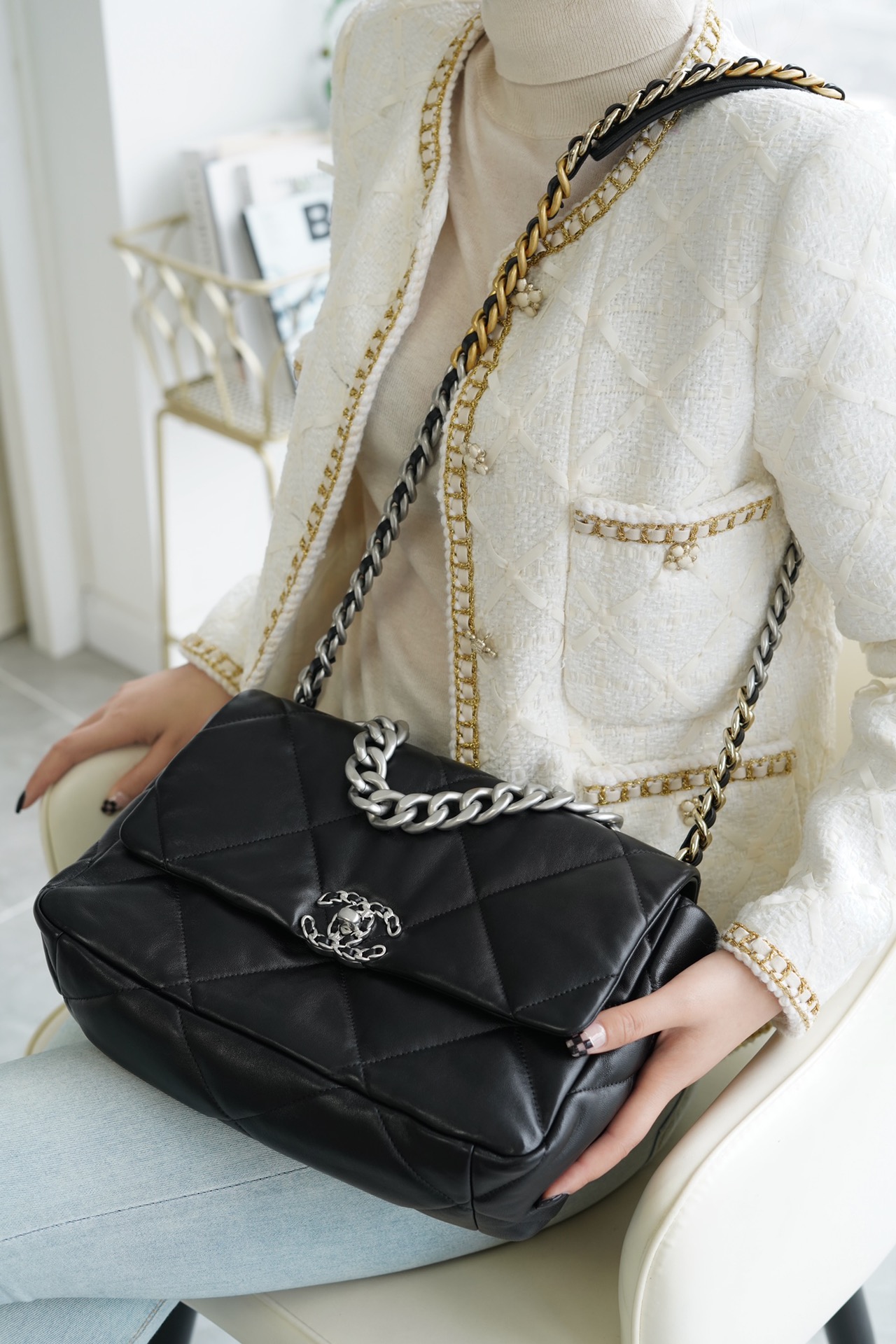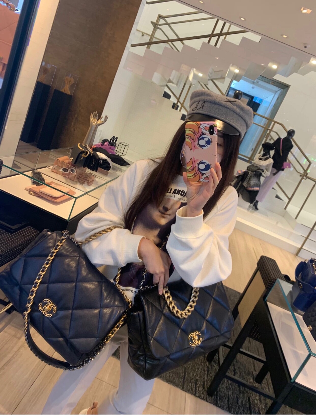 香奈儿 19Bag 系列翻盖双链条 羊皮 单肩斜挎包 (大中小号)(LZ)