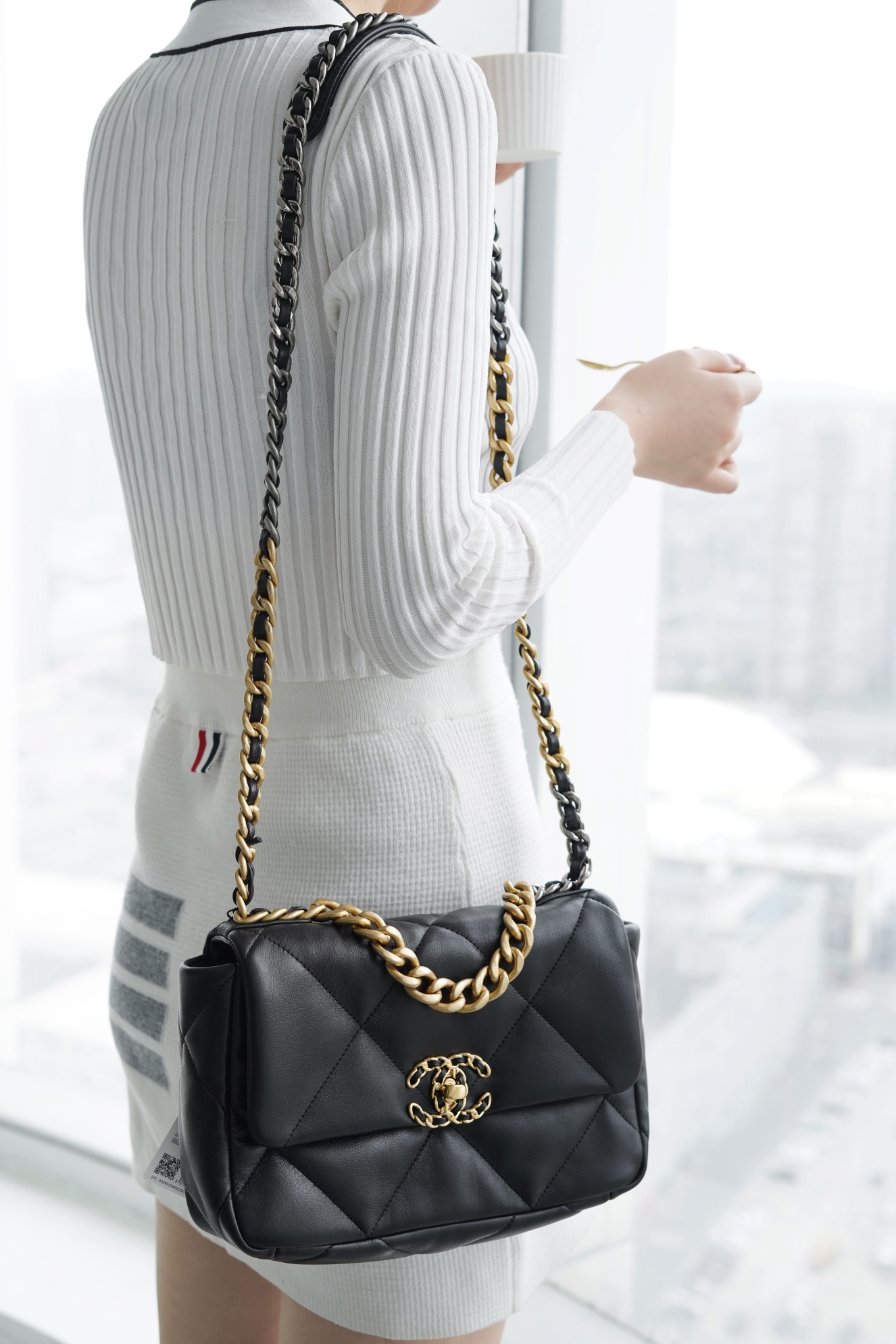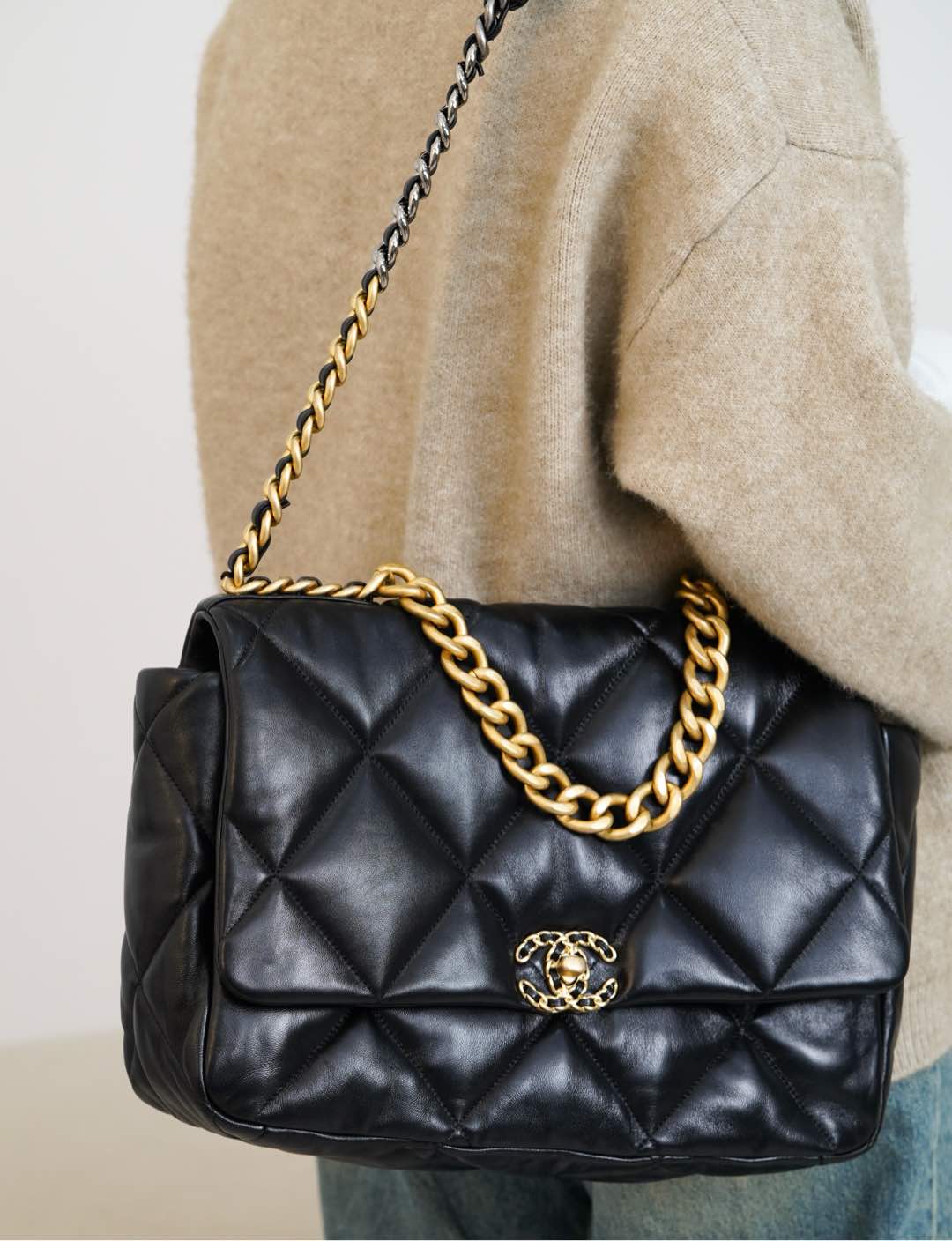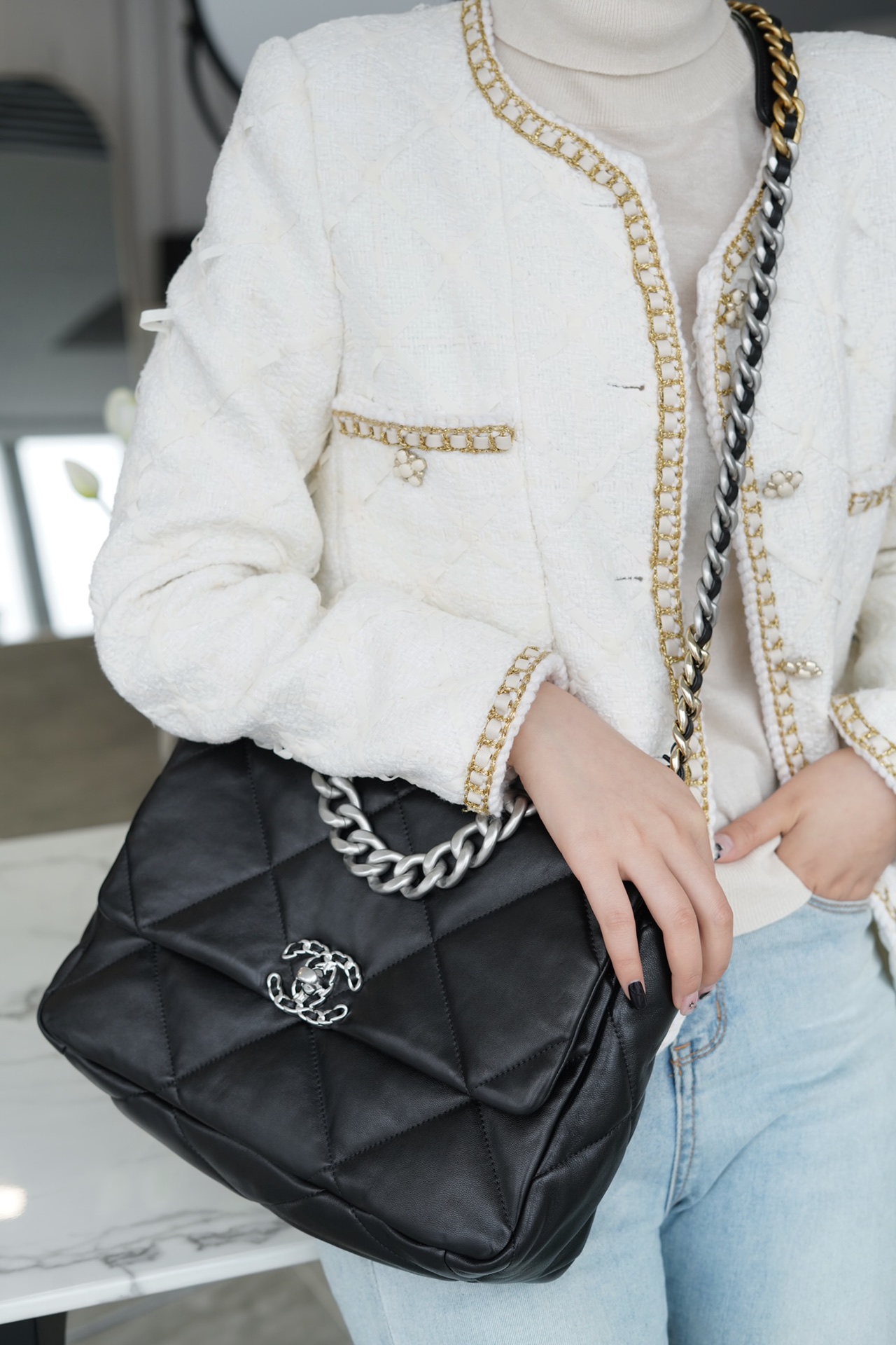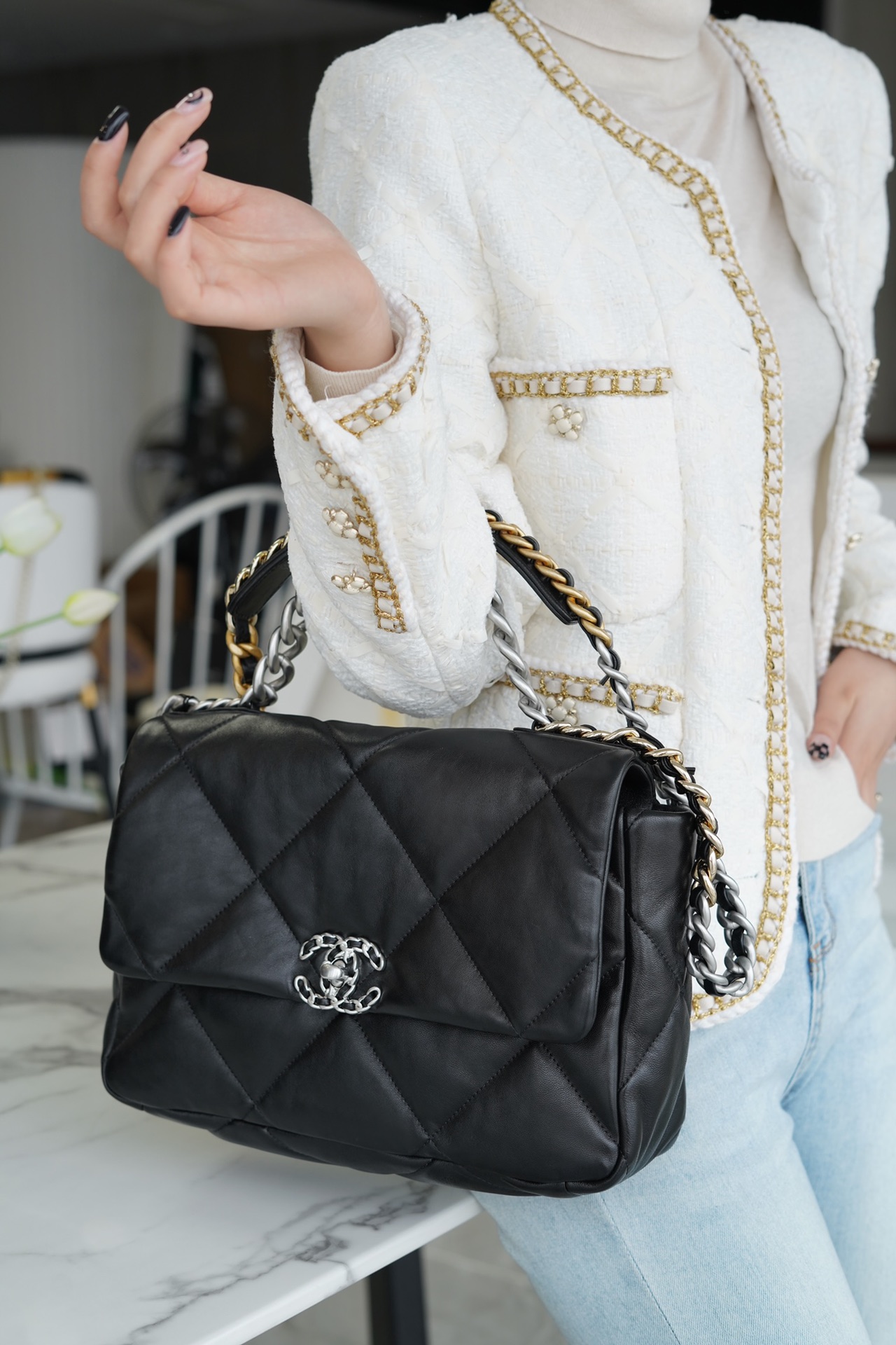 香奈儿 19Bag 系列翻盖双链条 羊皮 单肩斜挎包 (大中小号)(LZ)