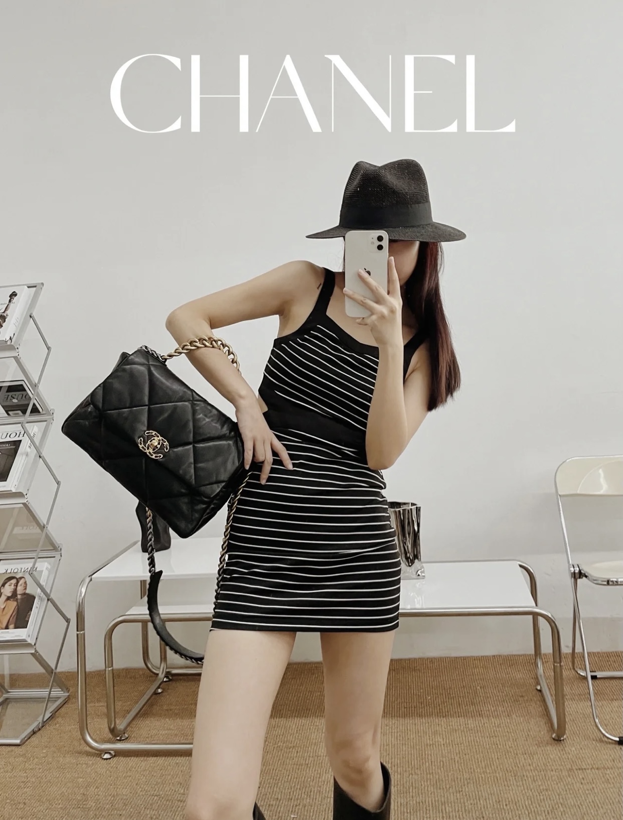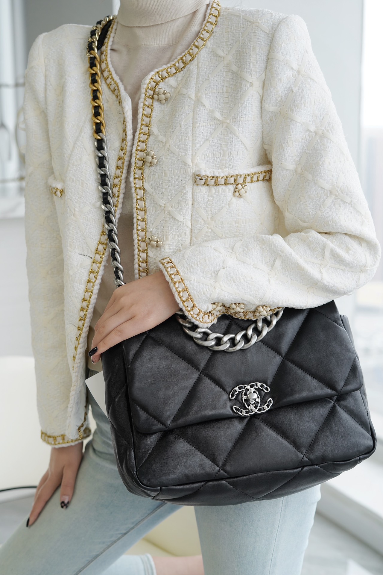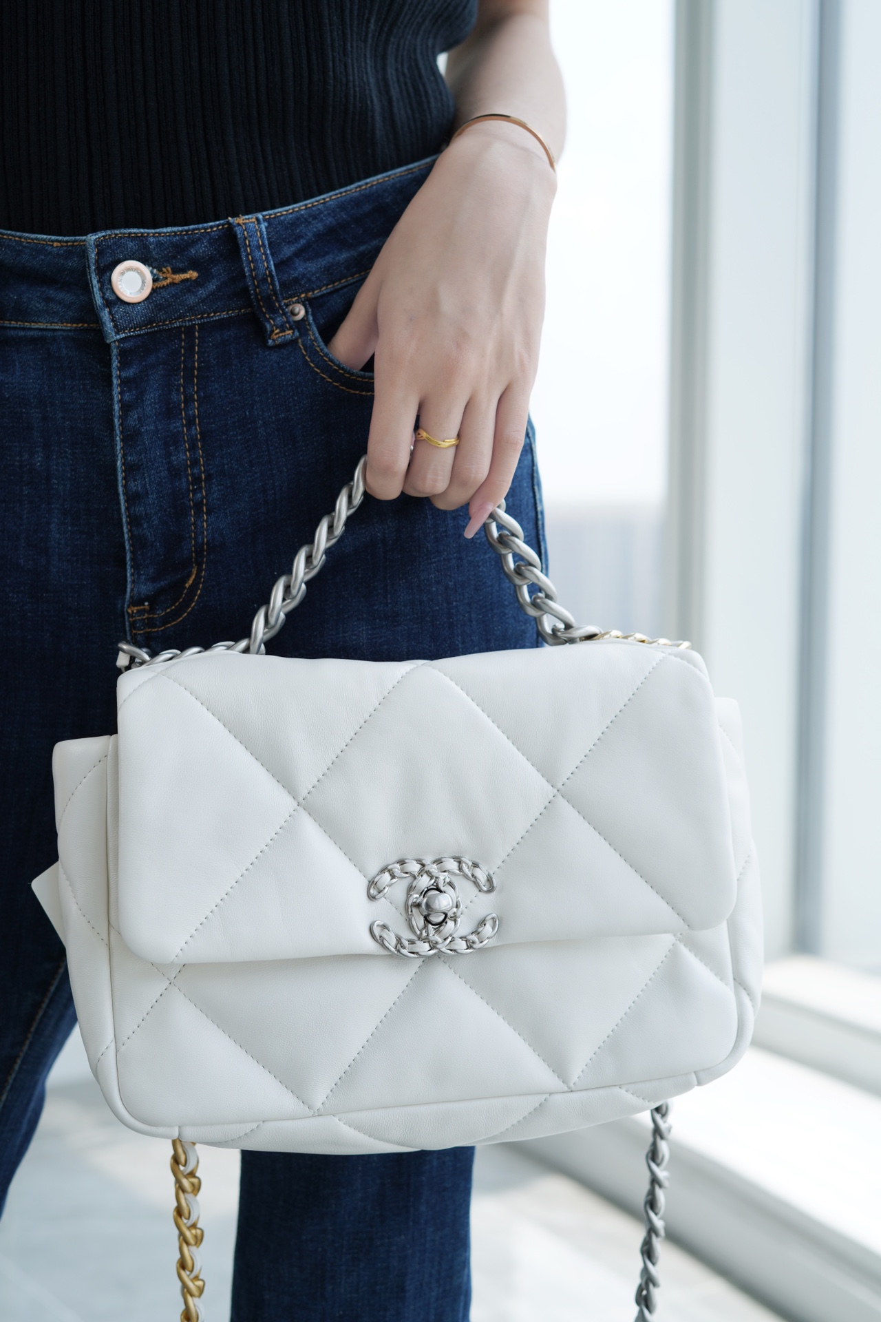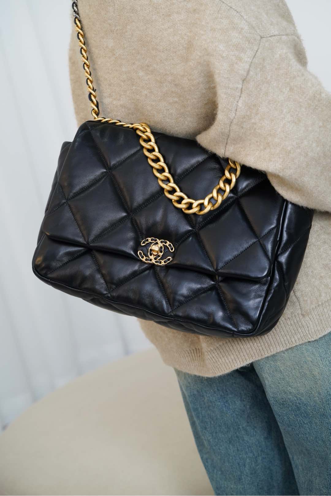 香奈儿 19Bag 系列翻盖双链条 羊皮 单肩斜挎包 (大中小号)(LZ)