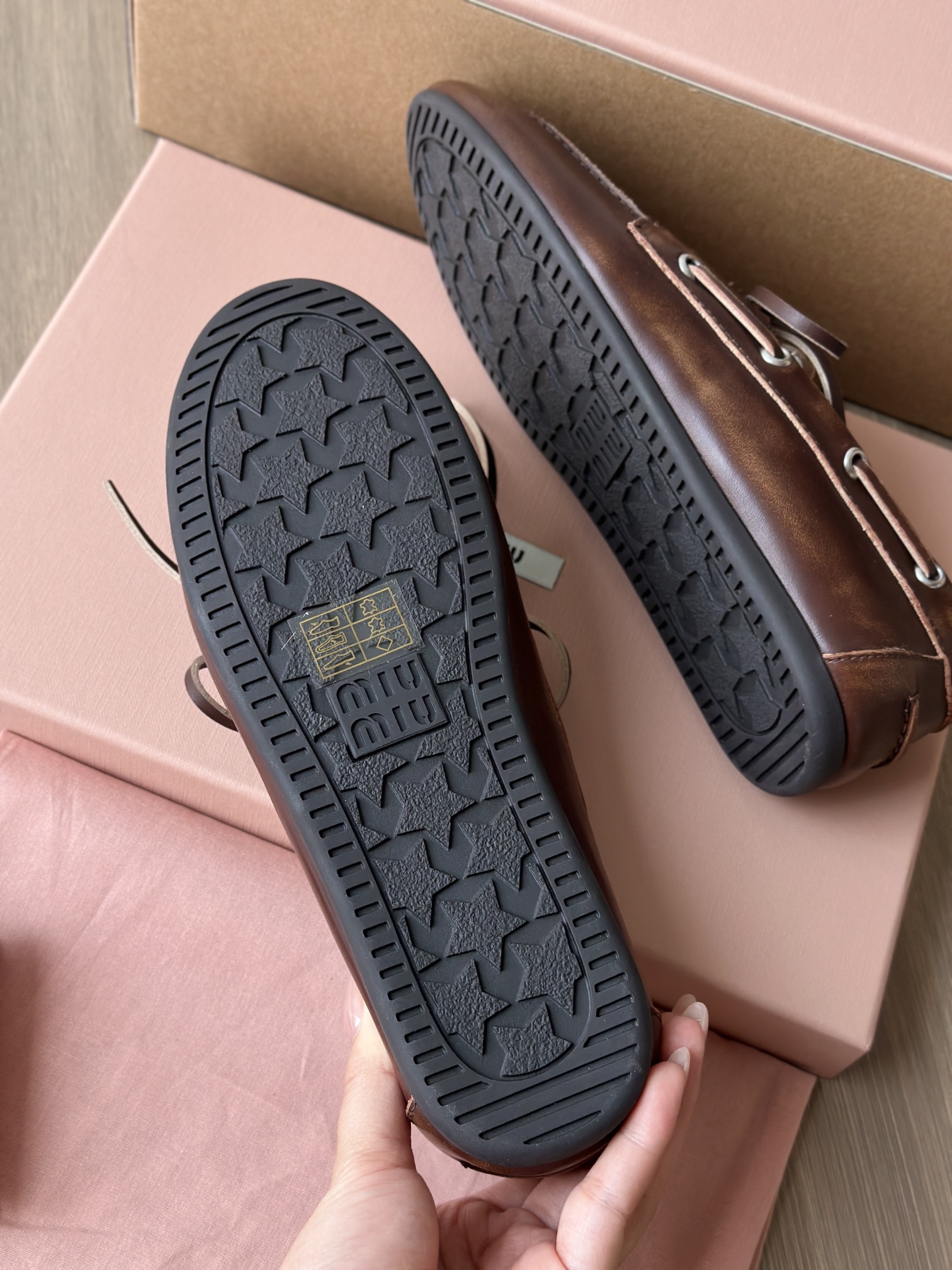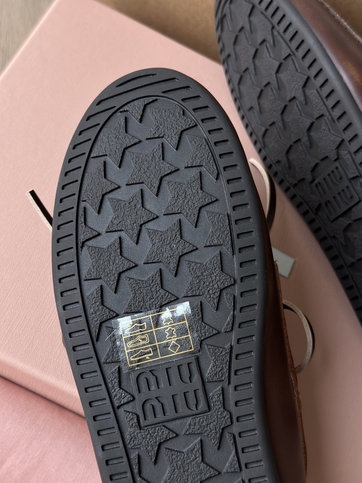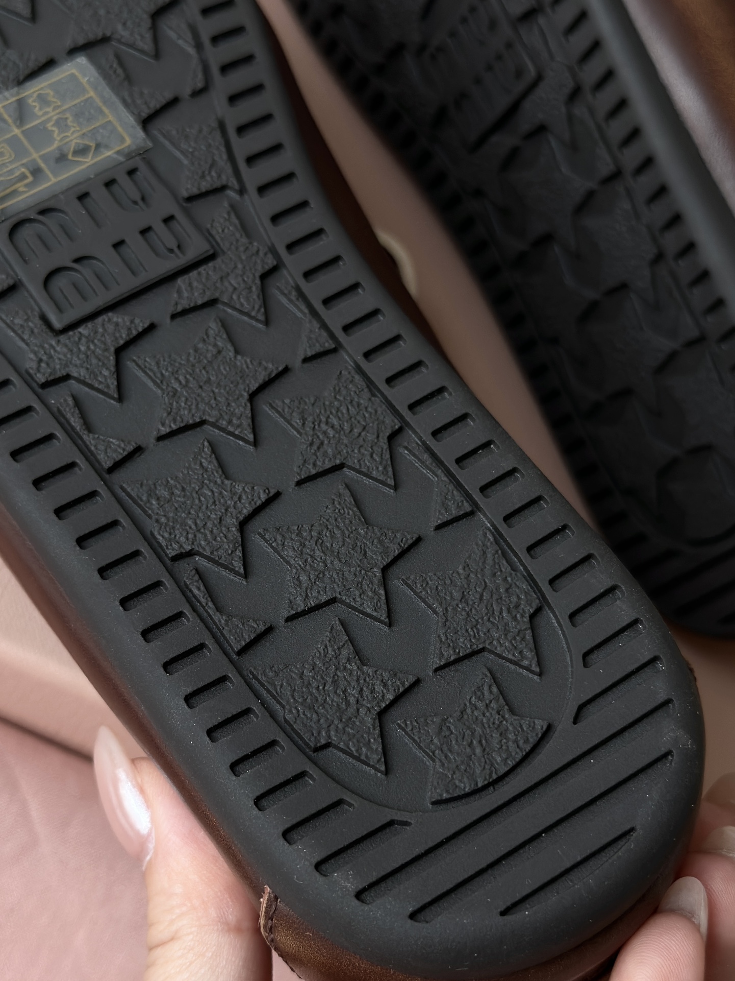 miu家标准的星星型橡胶磨具大底 耐磨防滑又耐穿,抓地感很强 而且鞋底非常软,可以轻松弯曲那种 穿上脚舒服又 轻便,轻松走路无压力 能脚随鞋走不板脚!日常暴走压力!❤️