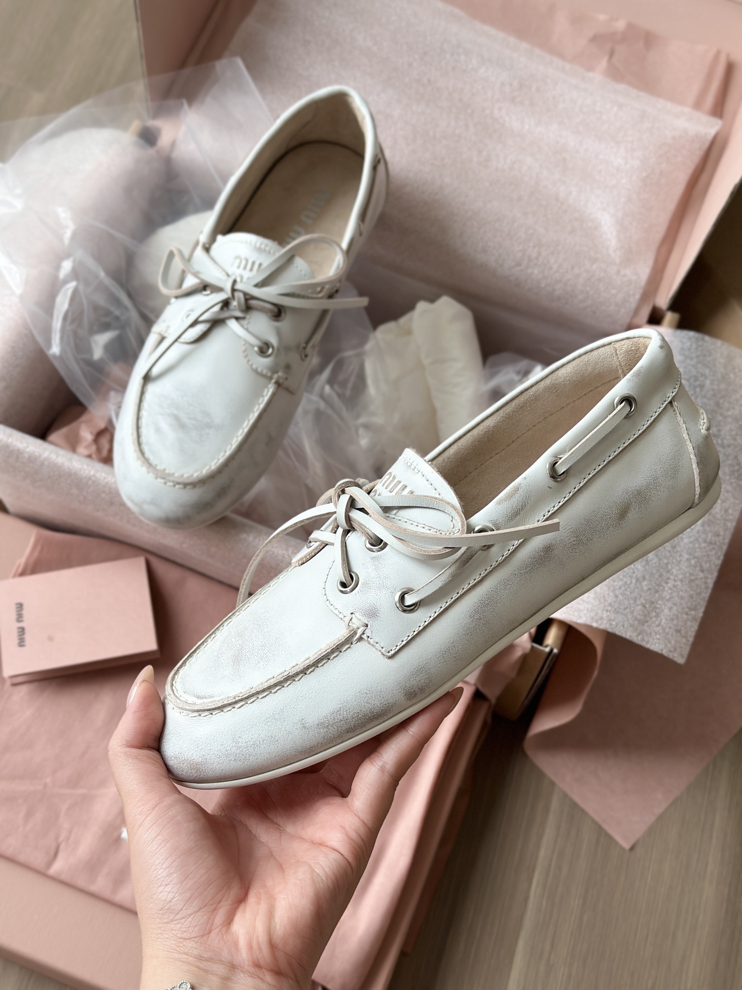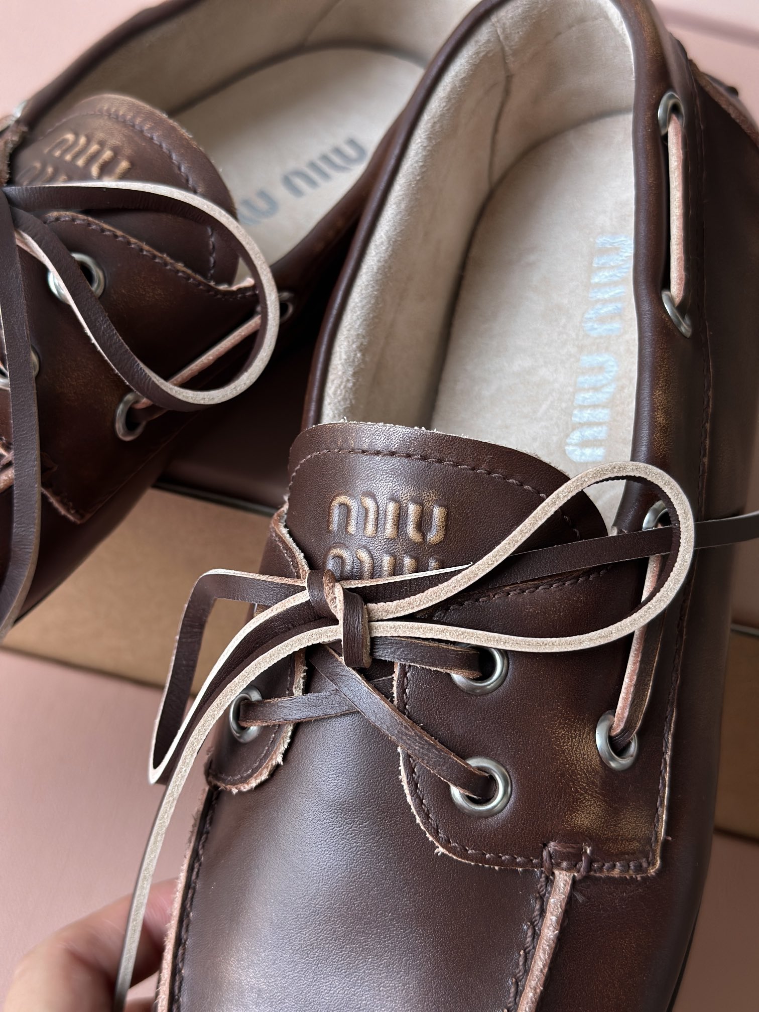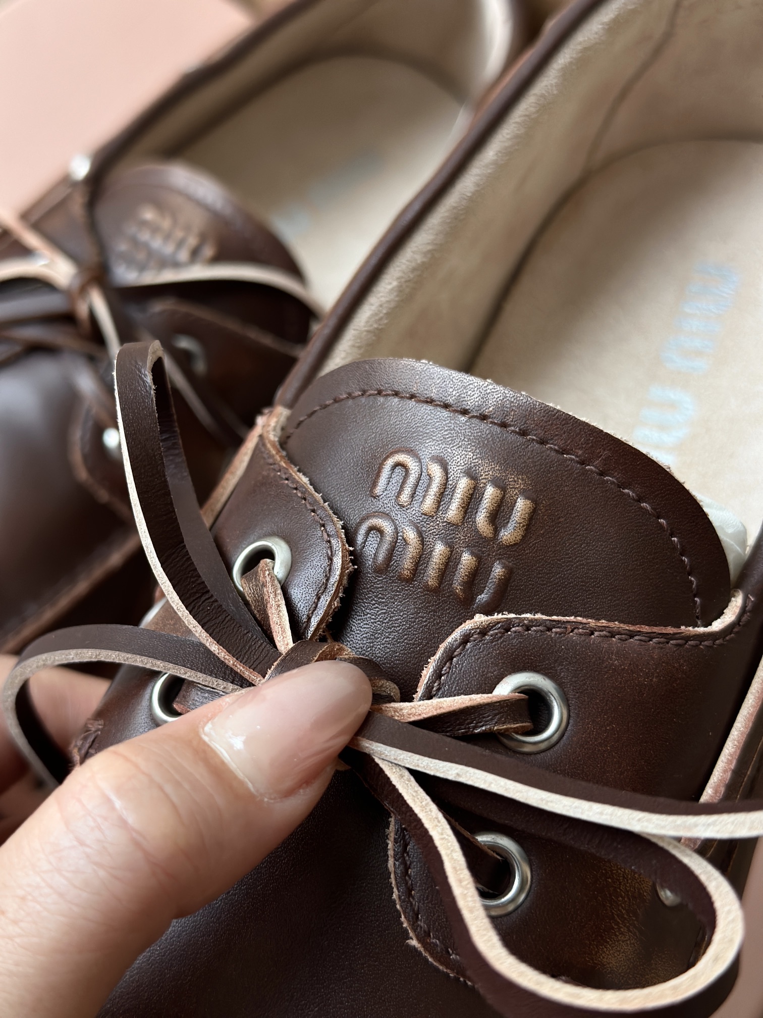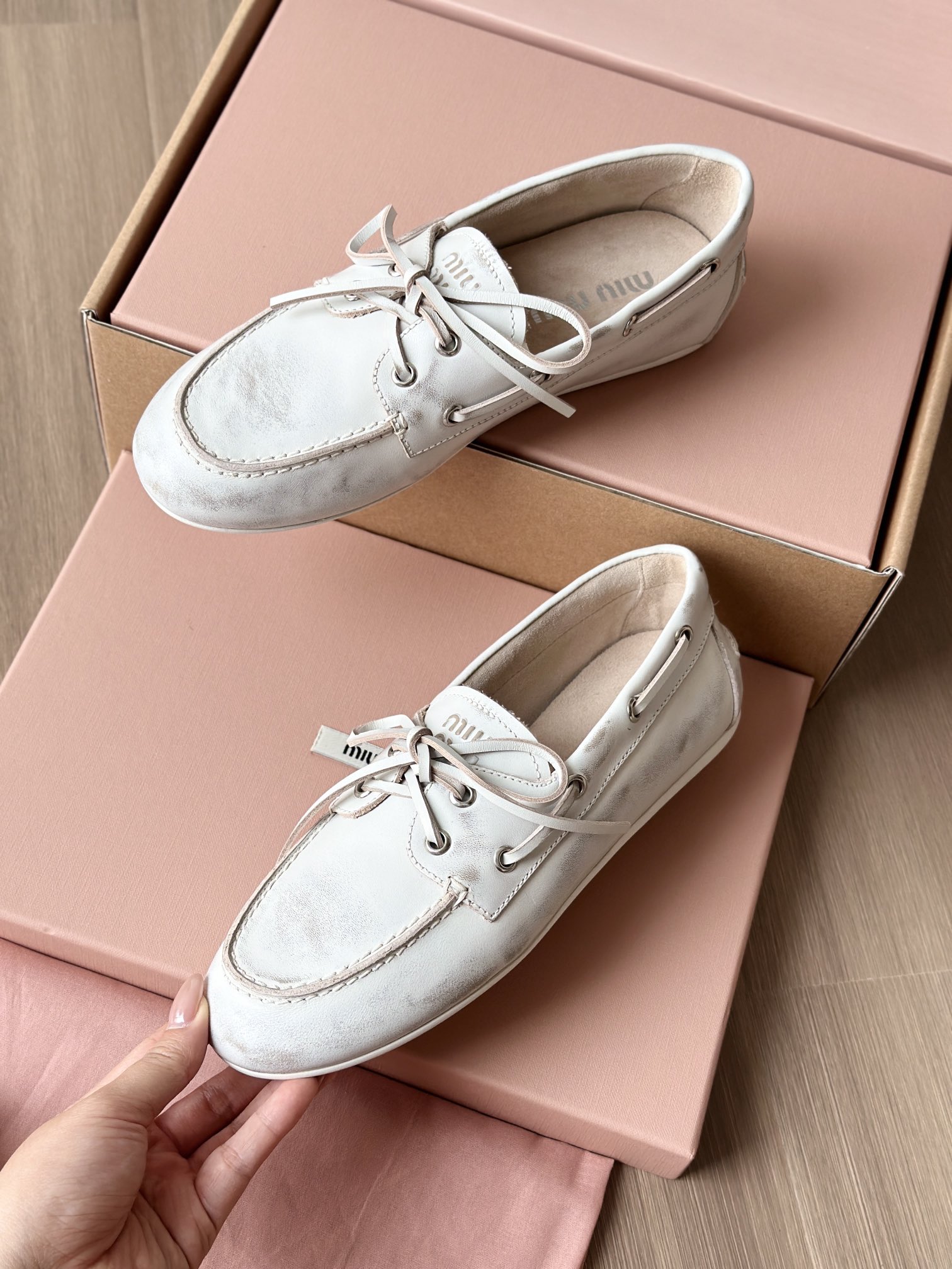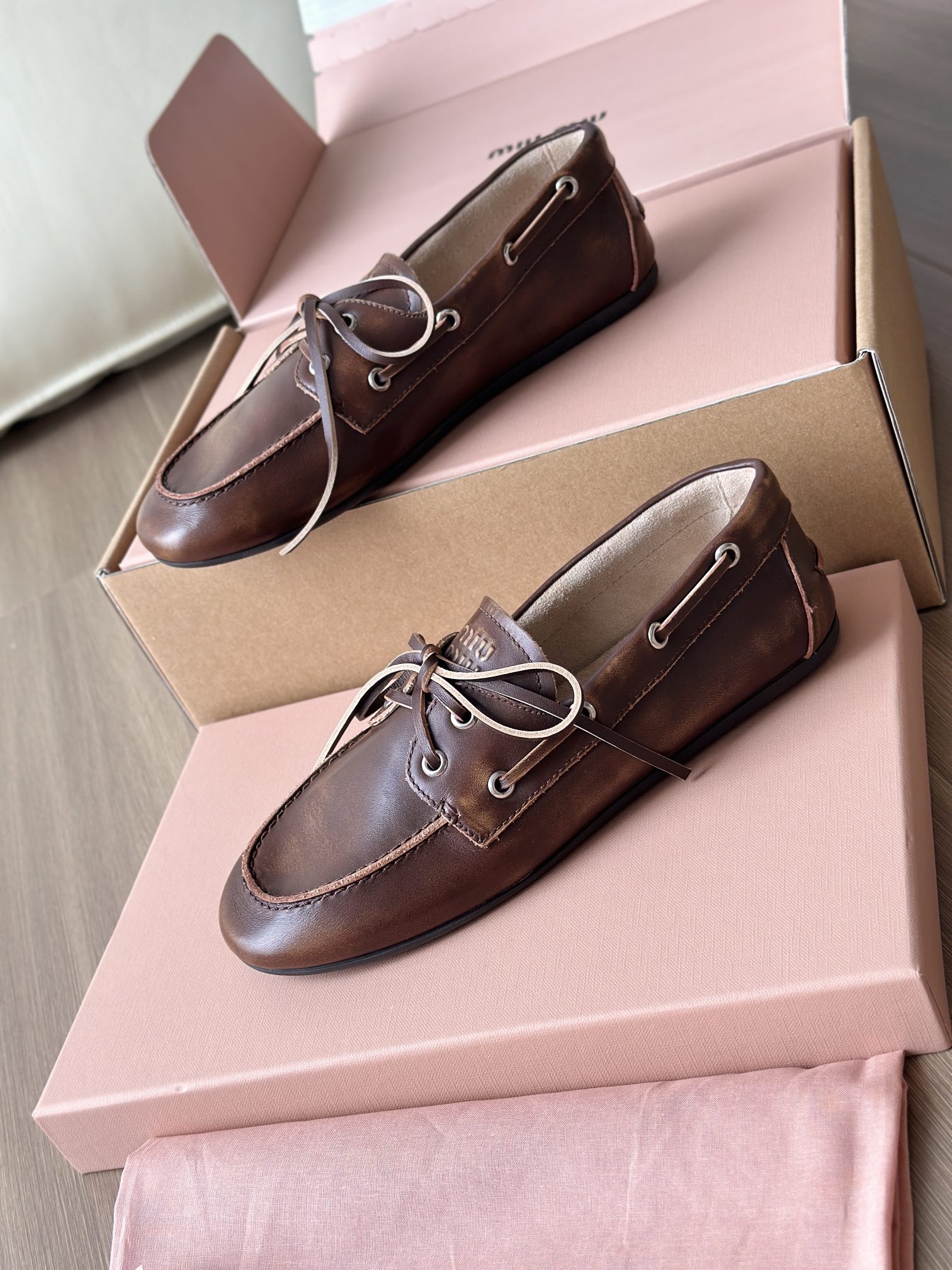 春夏这种复古范儿的小皮鞋少不了! 这不比个别硬邦邦的乐福鞋要舒服太多了呀! 依旧是复古擦色的工艺 在顶级胎牛皮上留下“岁月”的痕迹,miu拿捏复古范儿真是一把好手! 喜欢的朋友可以放心入!