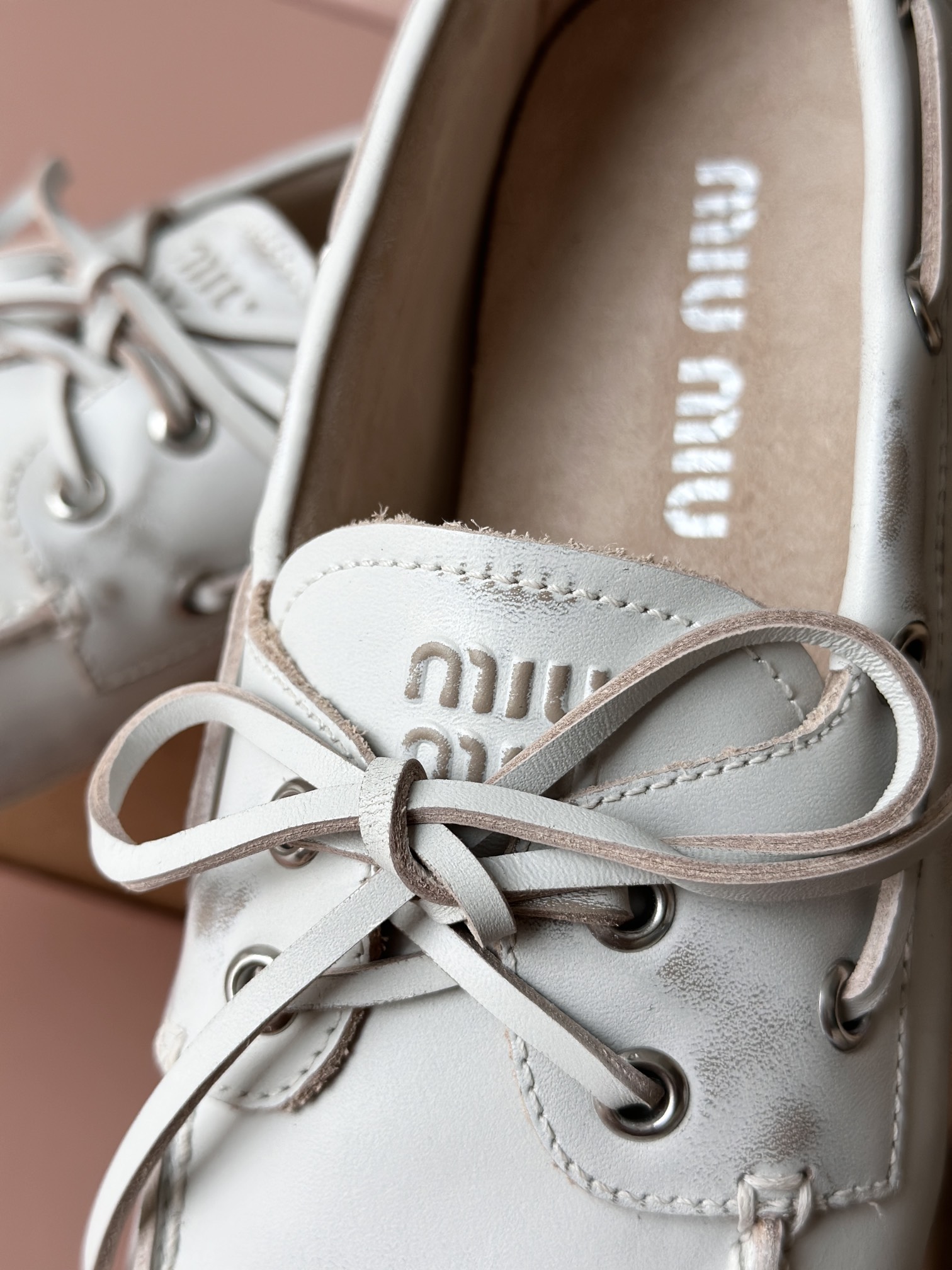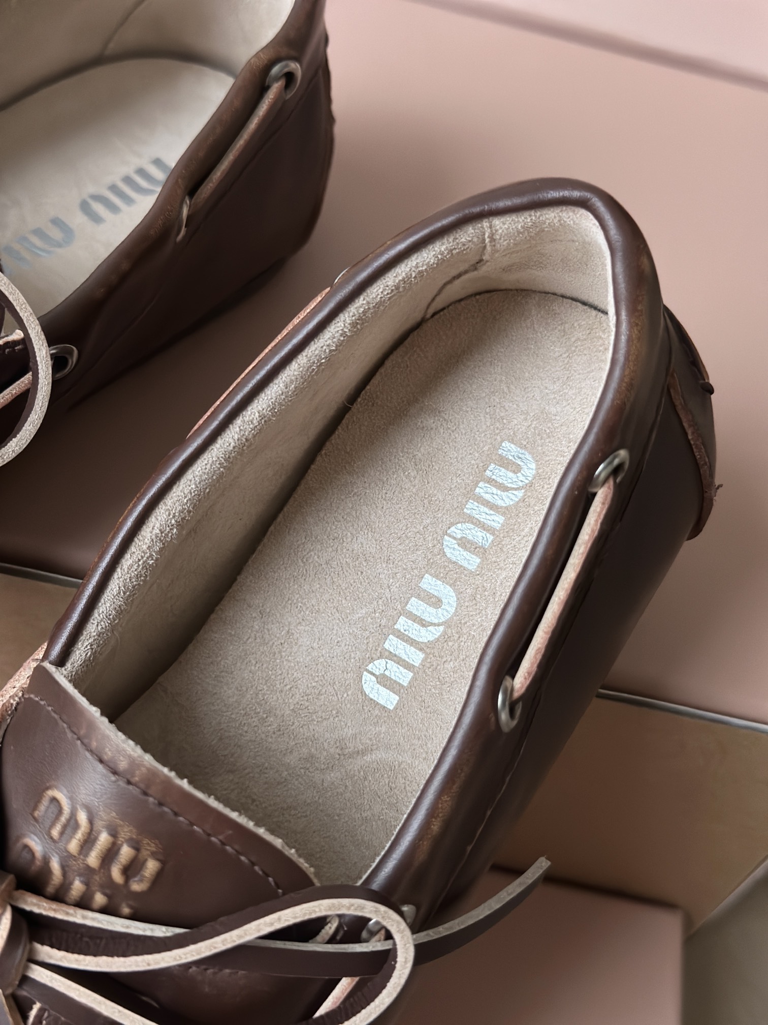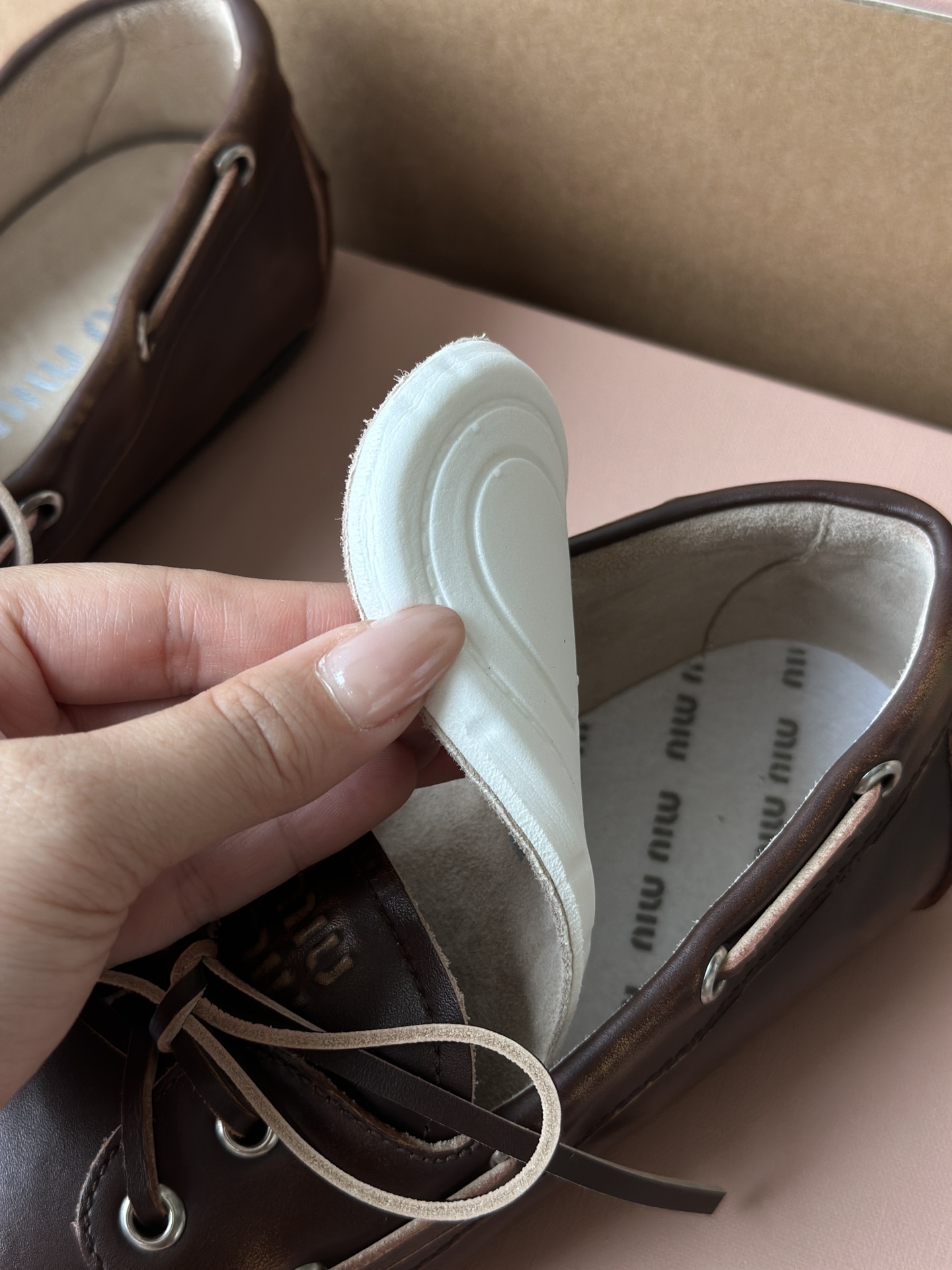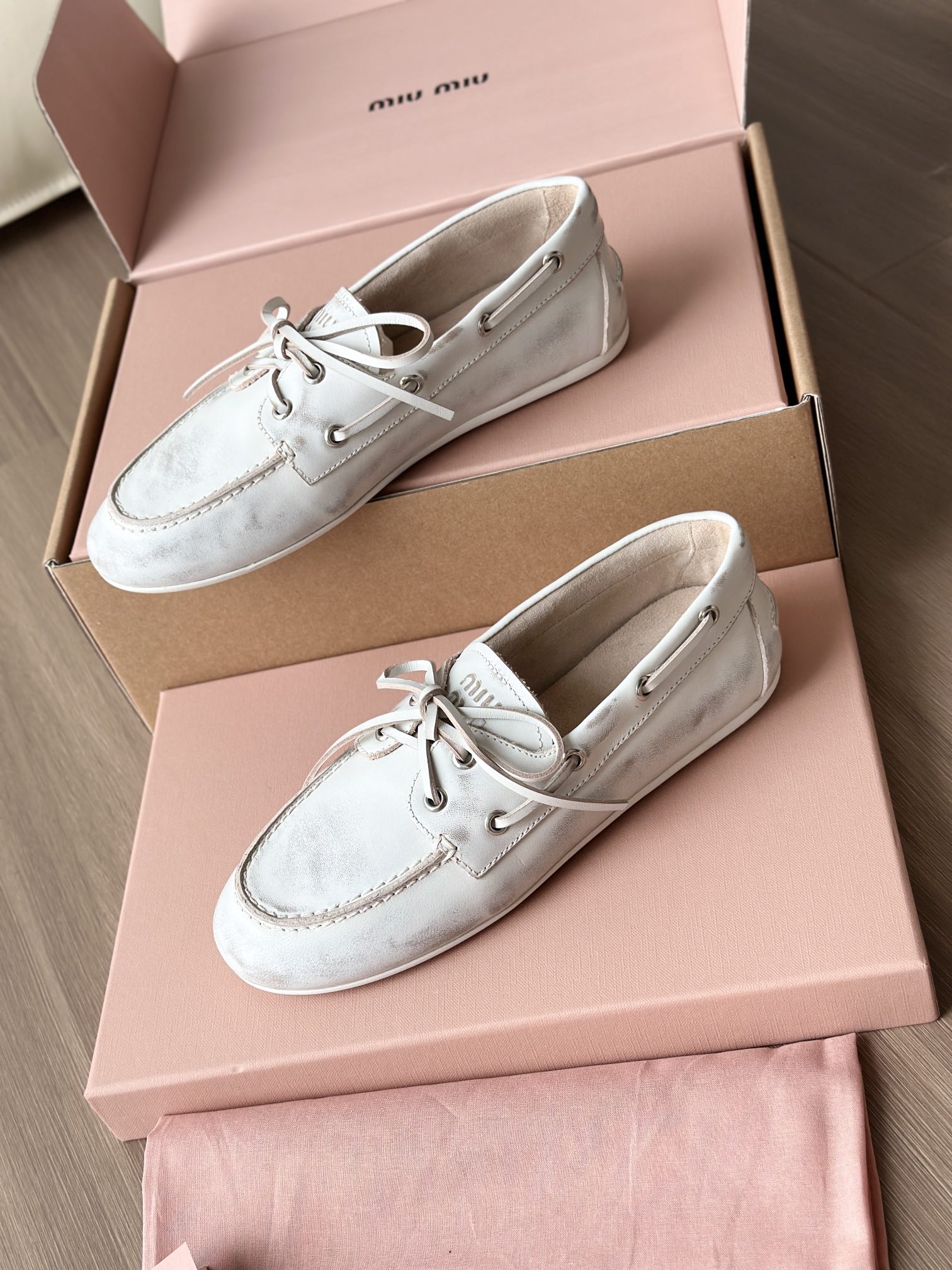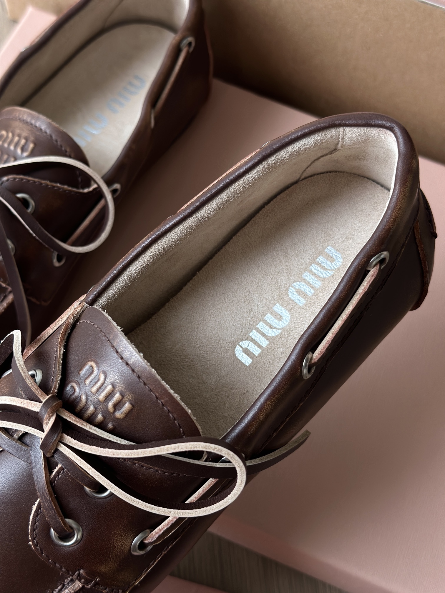 春夏这种复古范儿的小皮鞋少不了! 这不比个别硬邦邦的乐福鞋要舒服太多了呀! 依旧是复古擦色的工艺 在顶级胎牛皮上留下“岁月”的痕迹,miu拿捏复古范儿真是一把好手! 喜欢的朋友可以放心入!