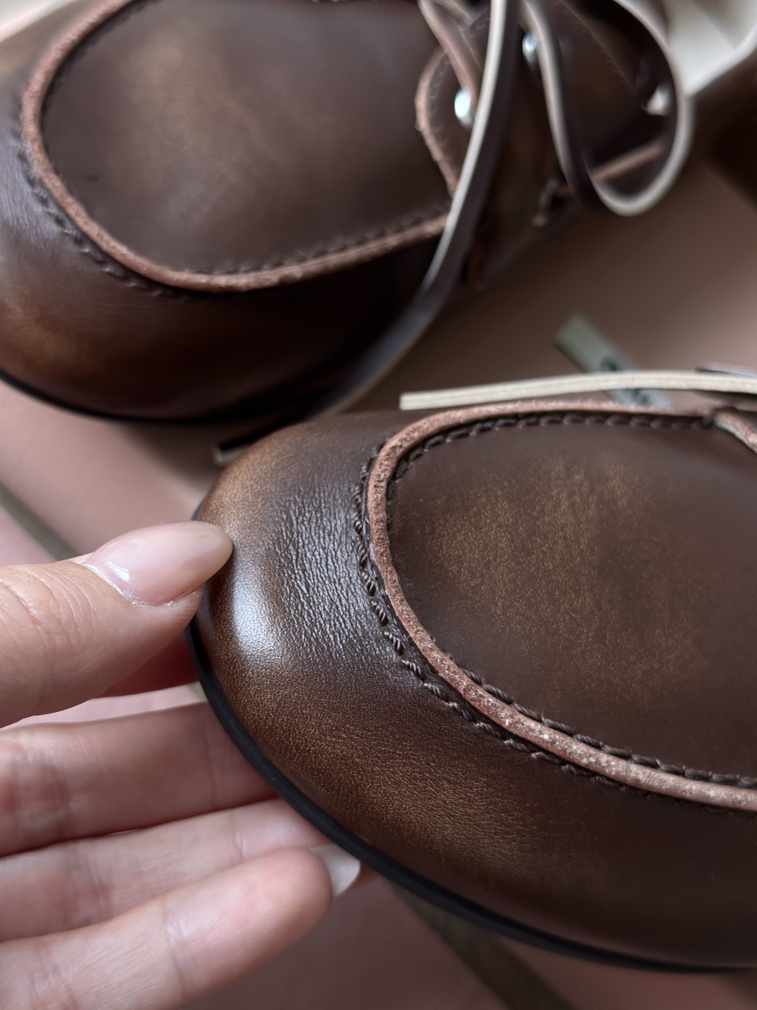 🇮🇹意大利胎牛皮鞋面,做旧擦色牛皮 纯手工擦色复古非常特别 每一双都是独一无二的花纹 柔软耐磨耐穿,而且越穿越有味道 穿个十年八年完全没有问题