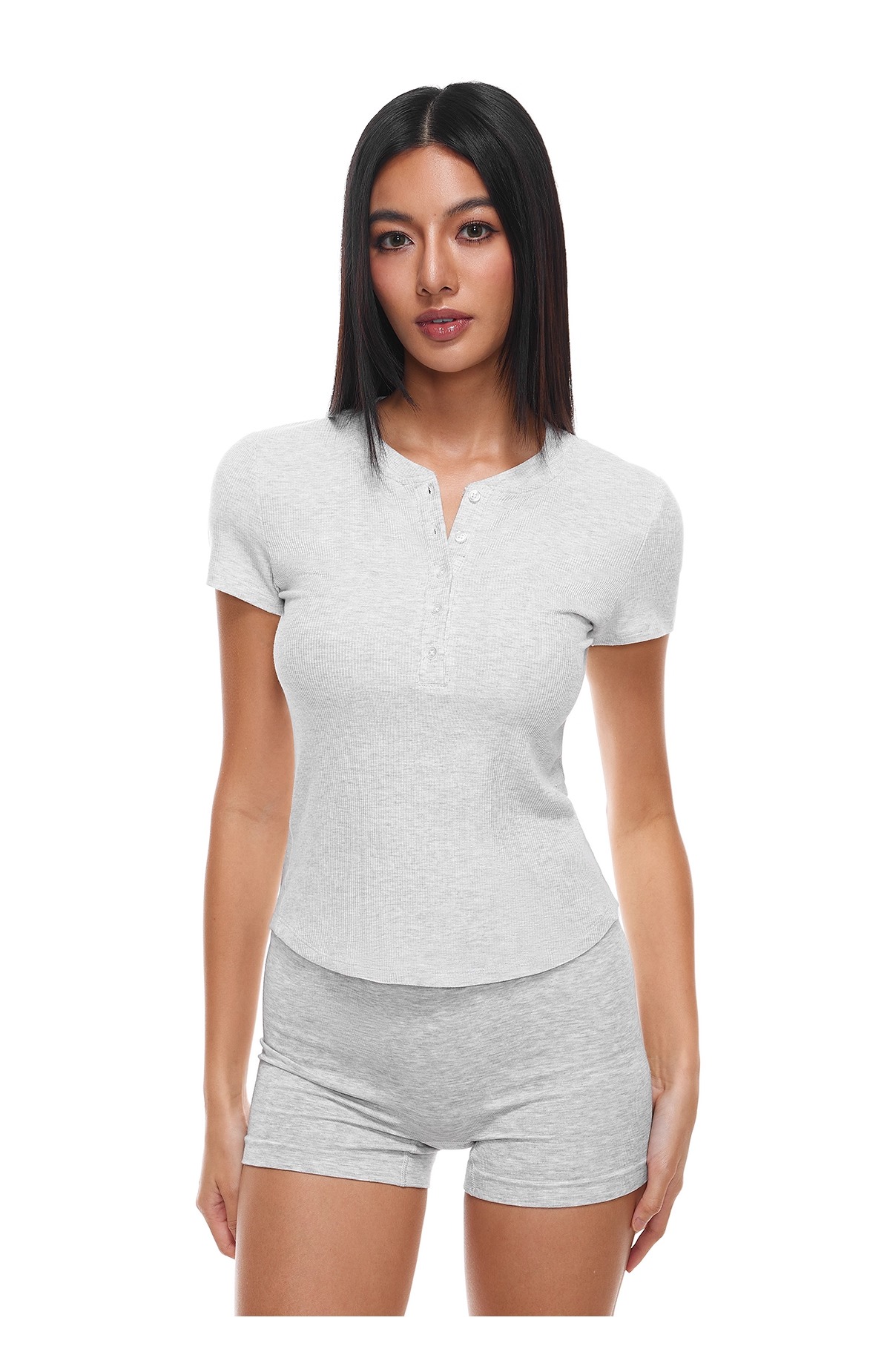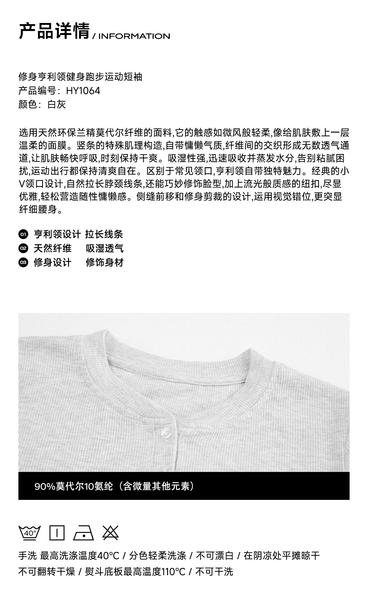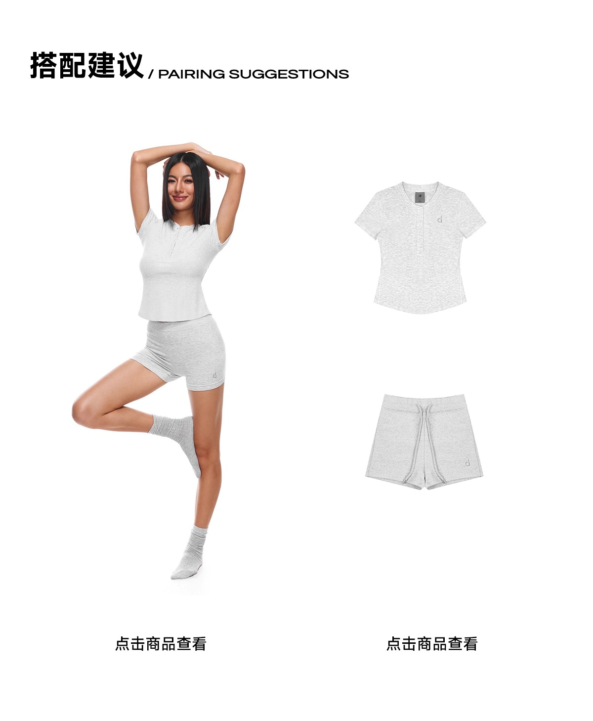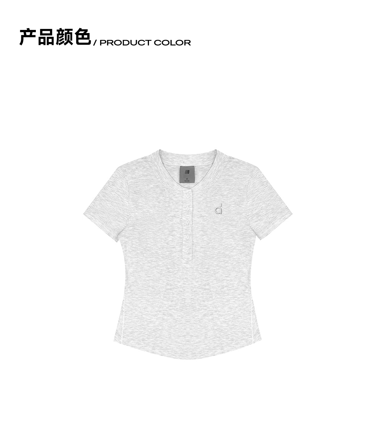 【积分超值购】FDR旗舰店 莫代尔吸湿透气亨利领短袖t恤女夏季修身显瘦运动上衣