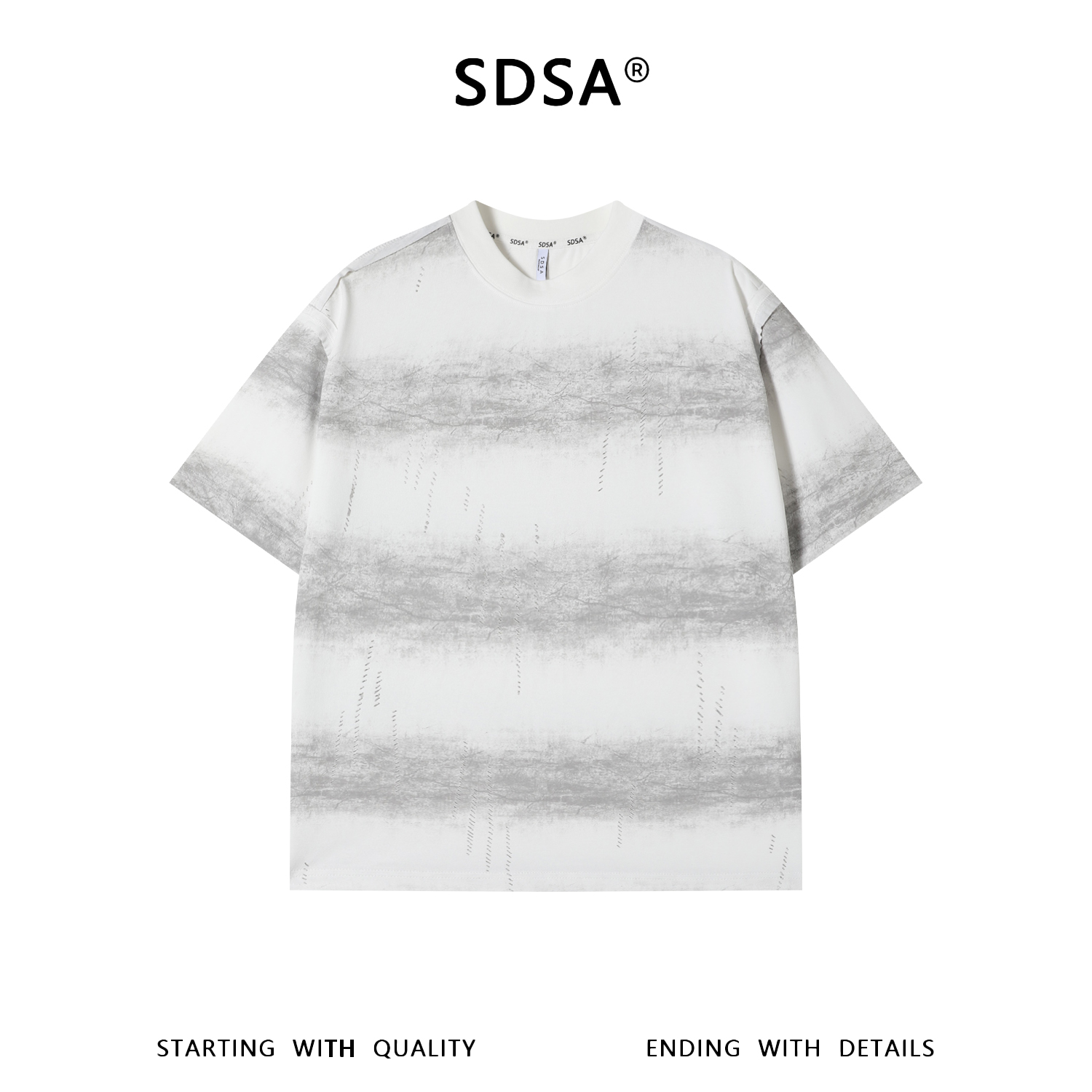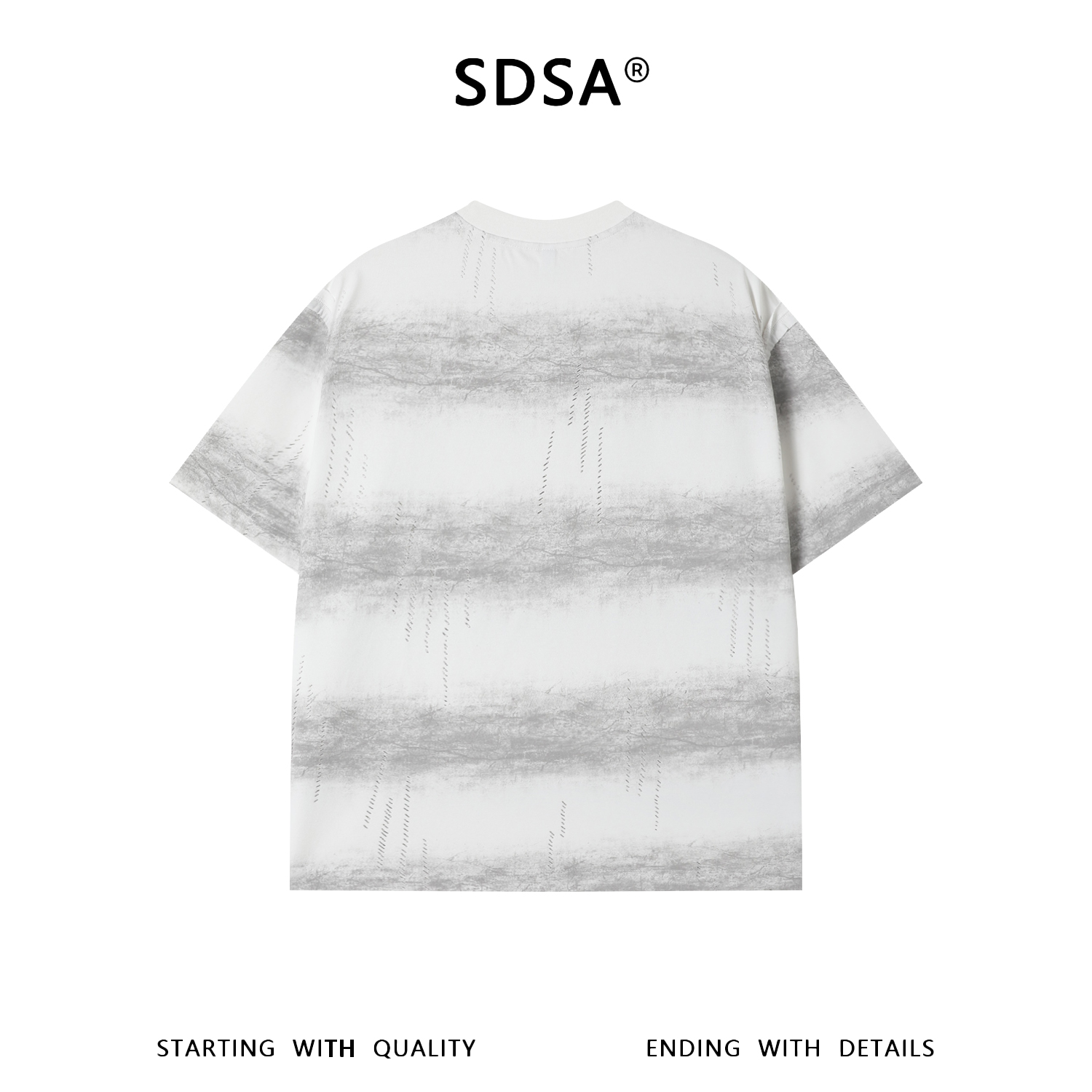 SDSA男装2026新款高贵轻奢韩系扎染条纹滴胶设计圆领短袖T恤百搭