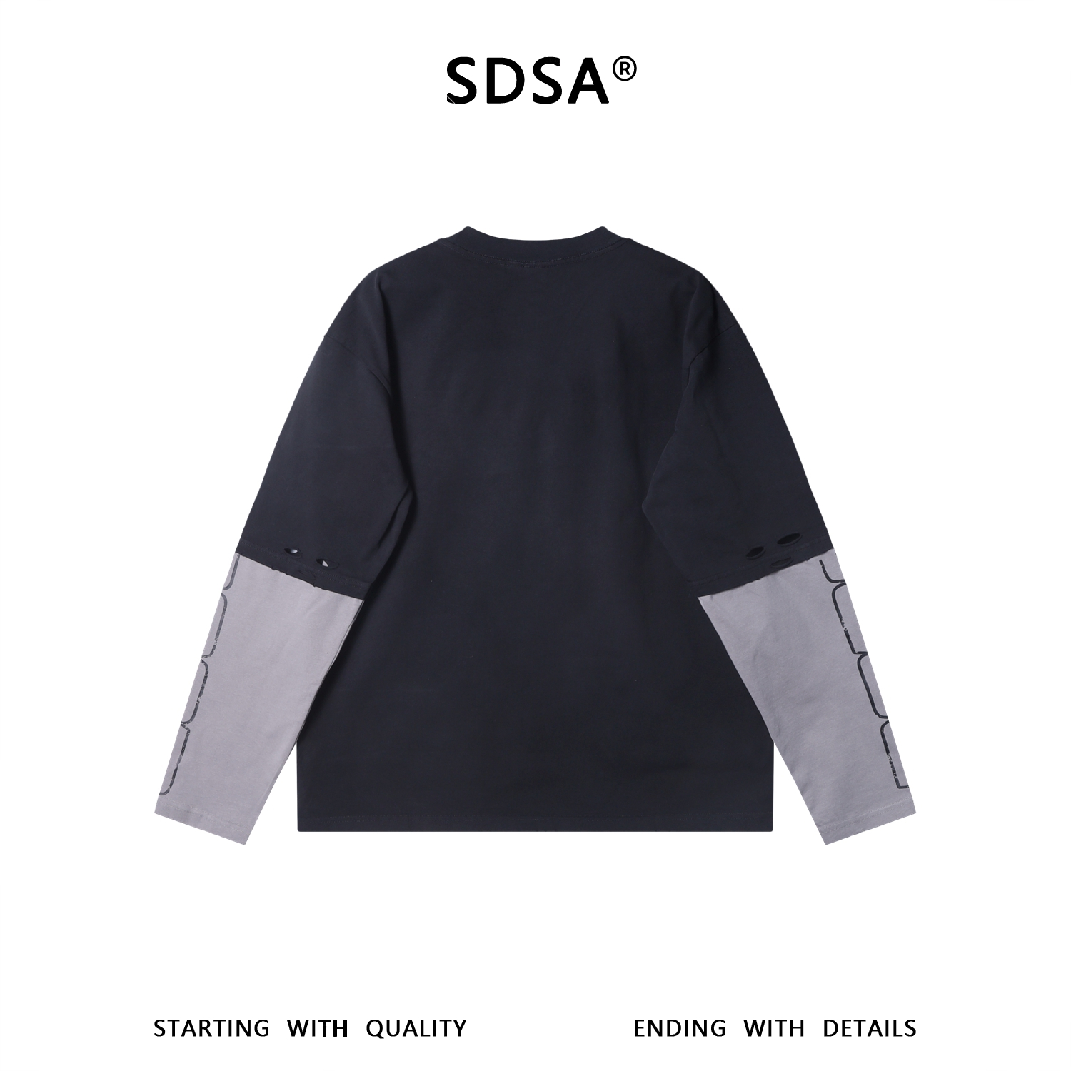 F7273SDSA男士秋冬新款痞帅男装美式破洞拼色圆领长袖T恤百搭时尚上衣