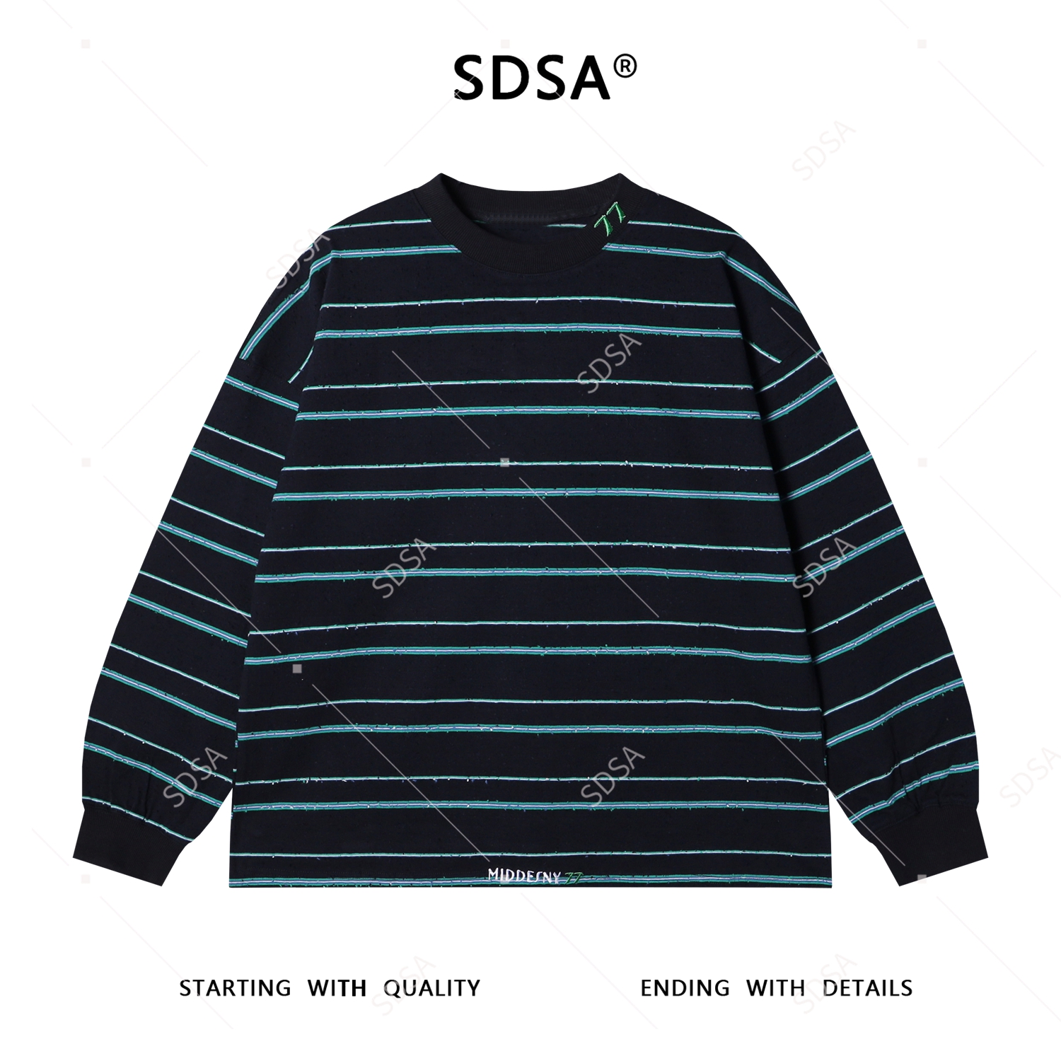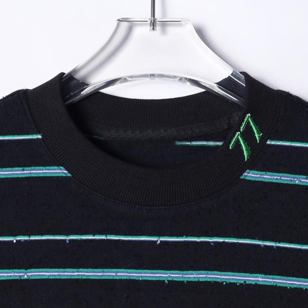 D920SDSA男士秋冬新款痞帅男装潮牌撞色条纹磨毛圆领T恤领口刺绣百搭