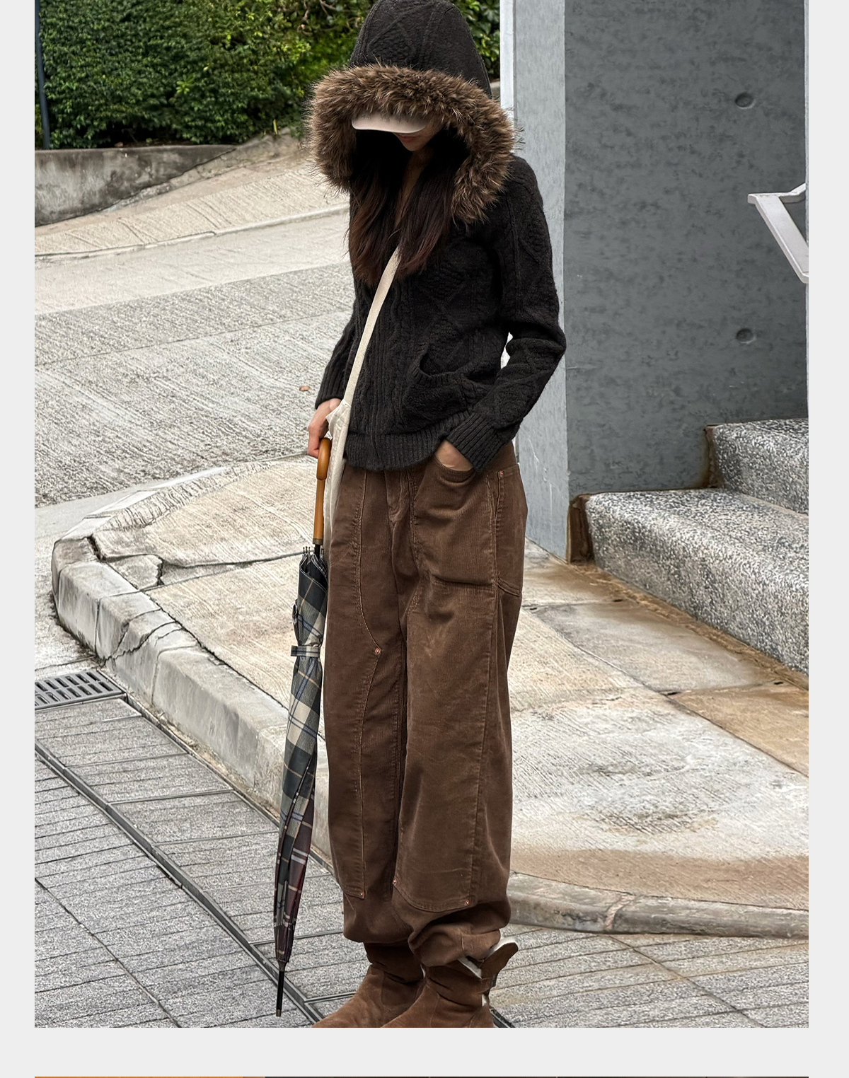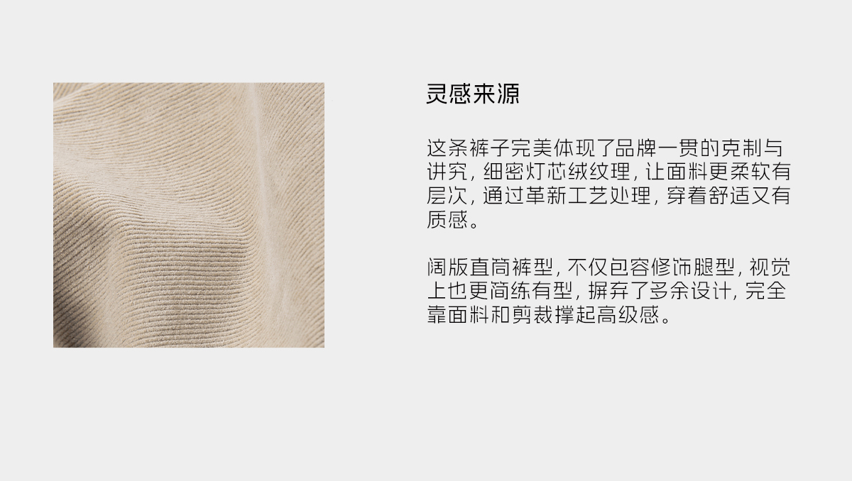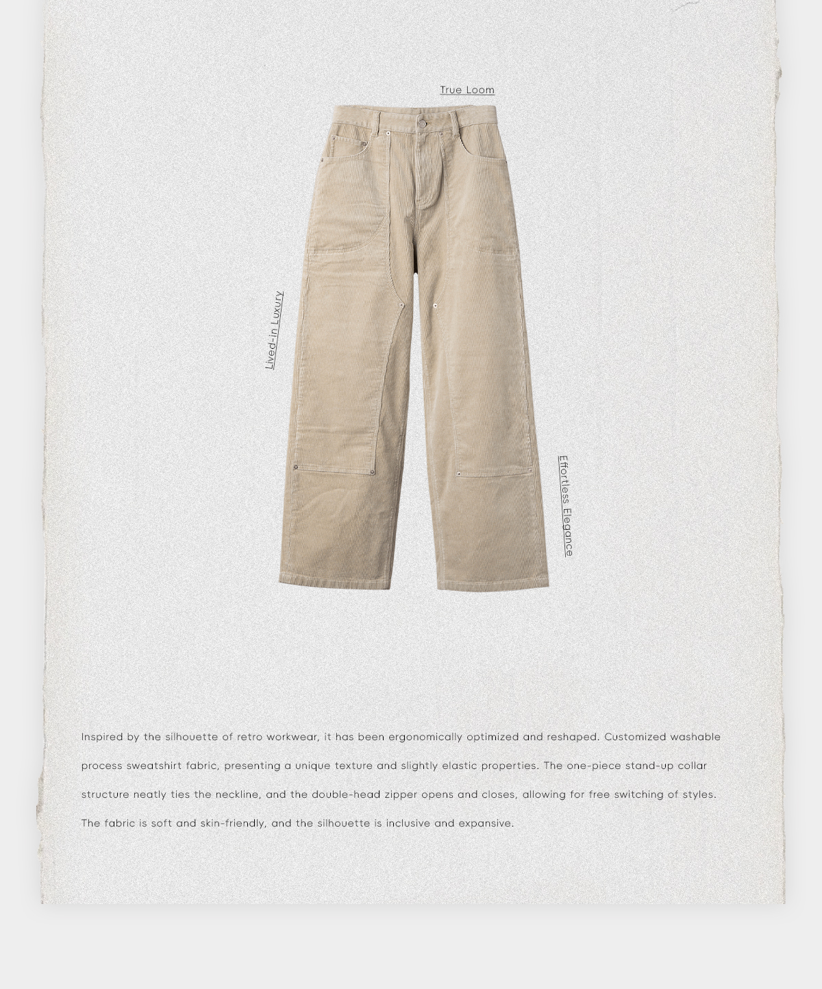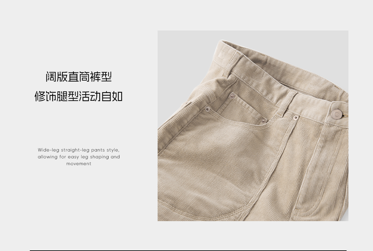 ROMI STUDIO"简练有型"细纹灯芯绒拼缝扣襻阔版直筒裤 RWCAX06154