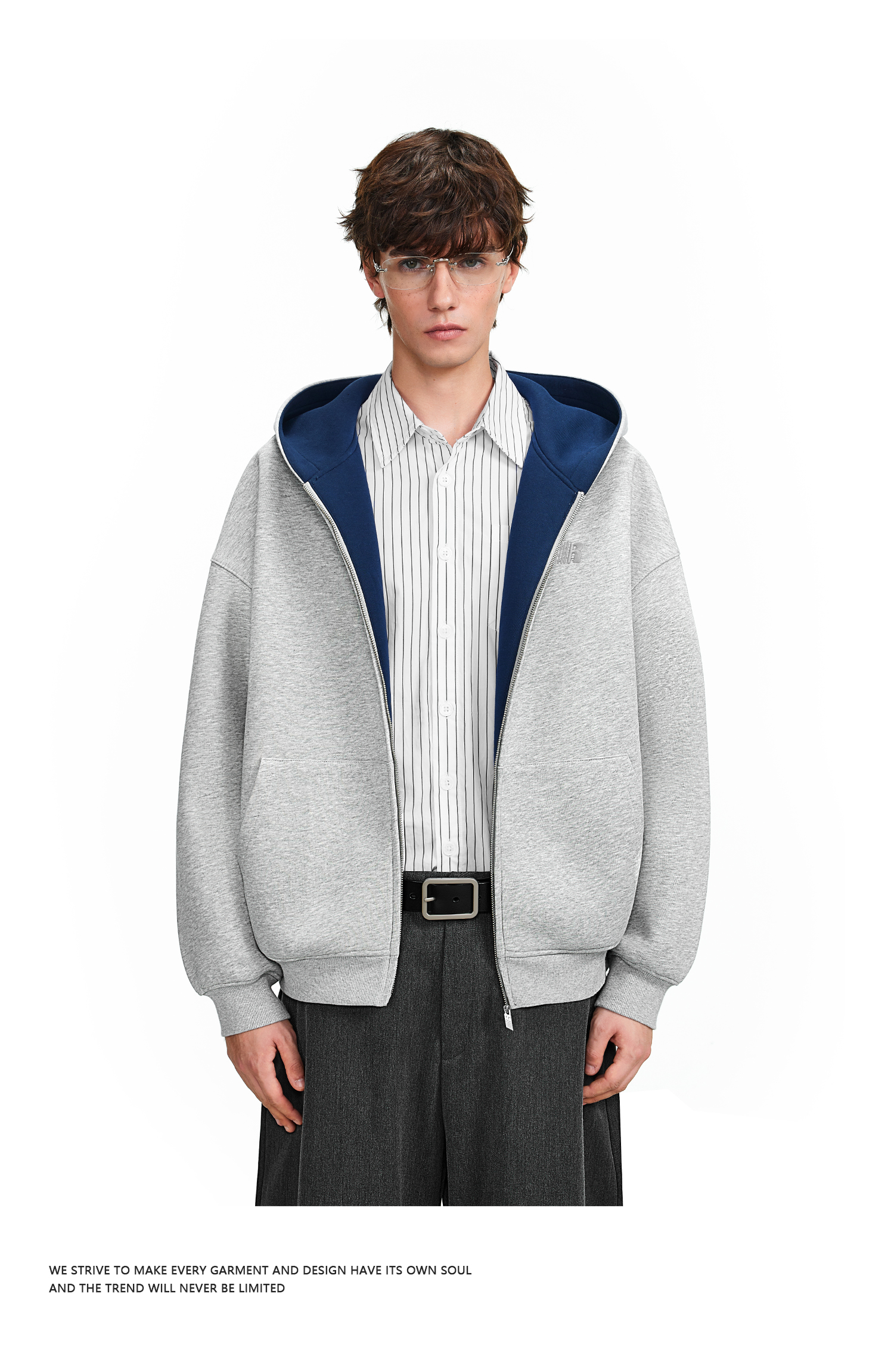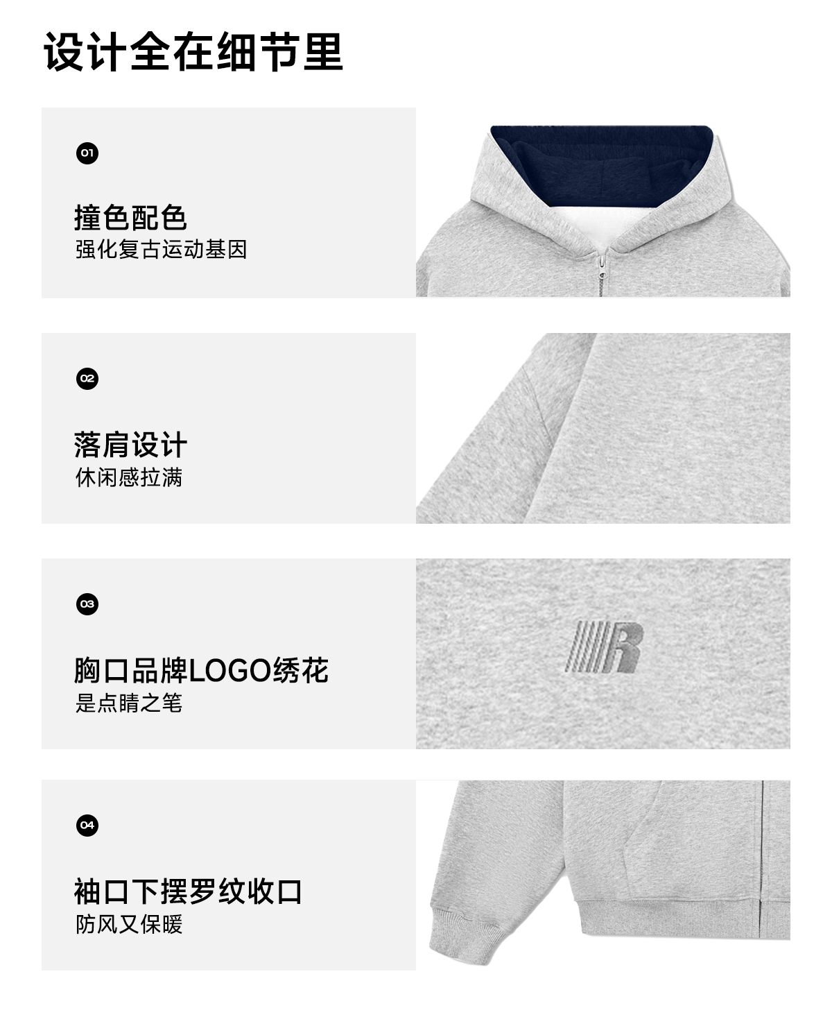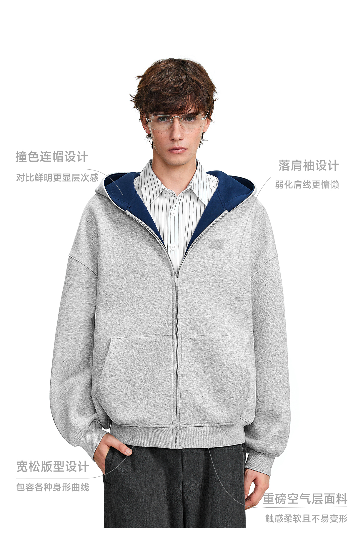 FDR官方店 情侣重磅拉链外套男秋拼色空气层连帽卫衣女款2025新款