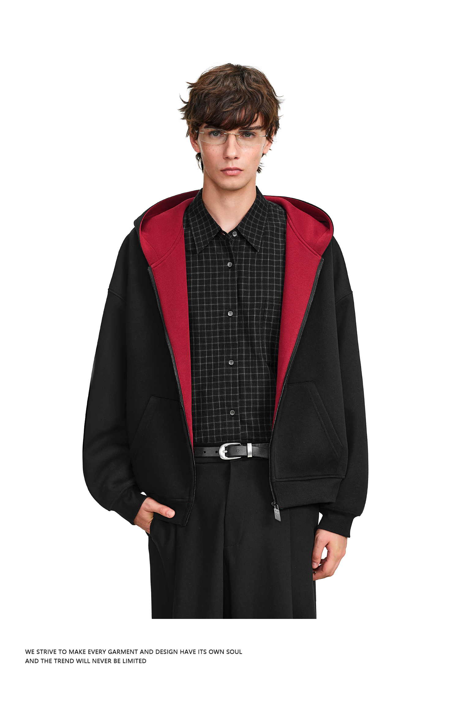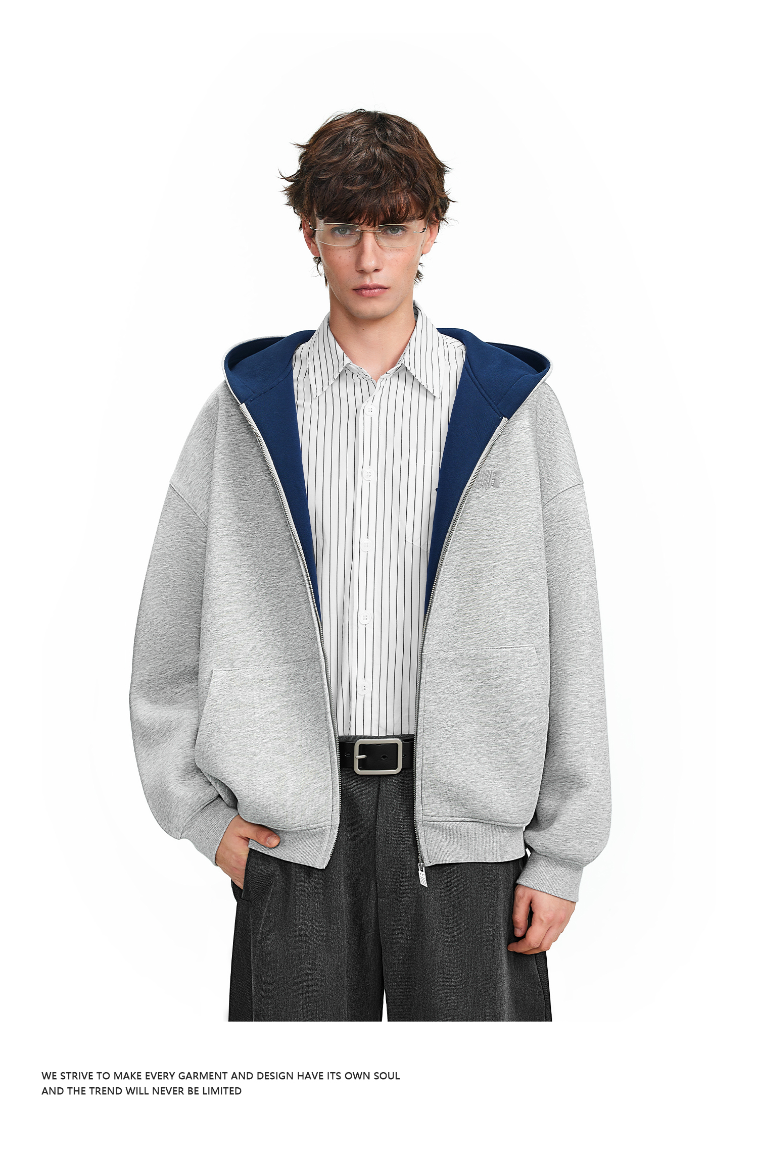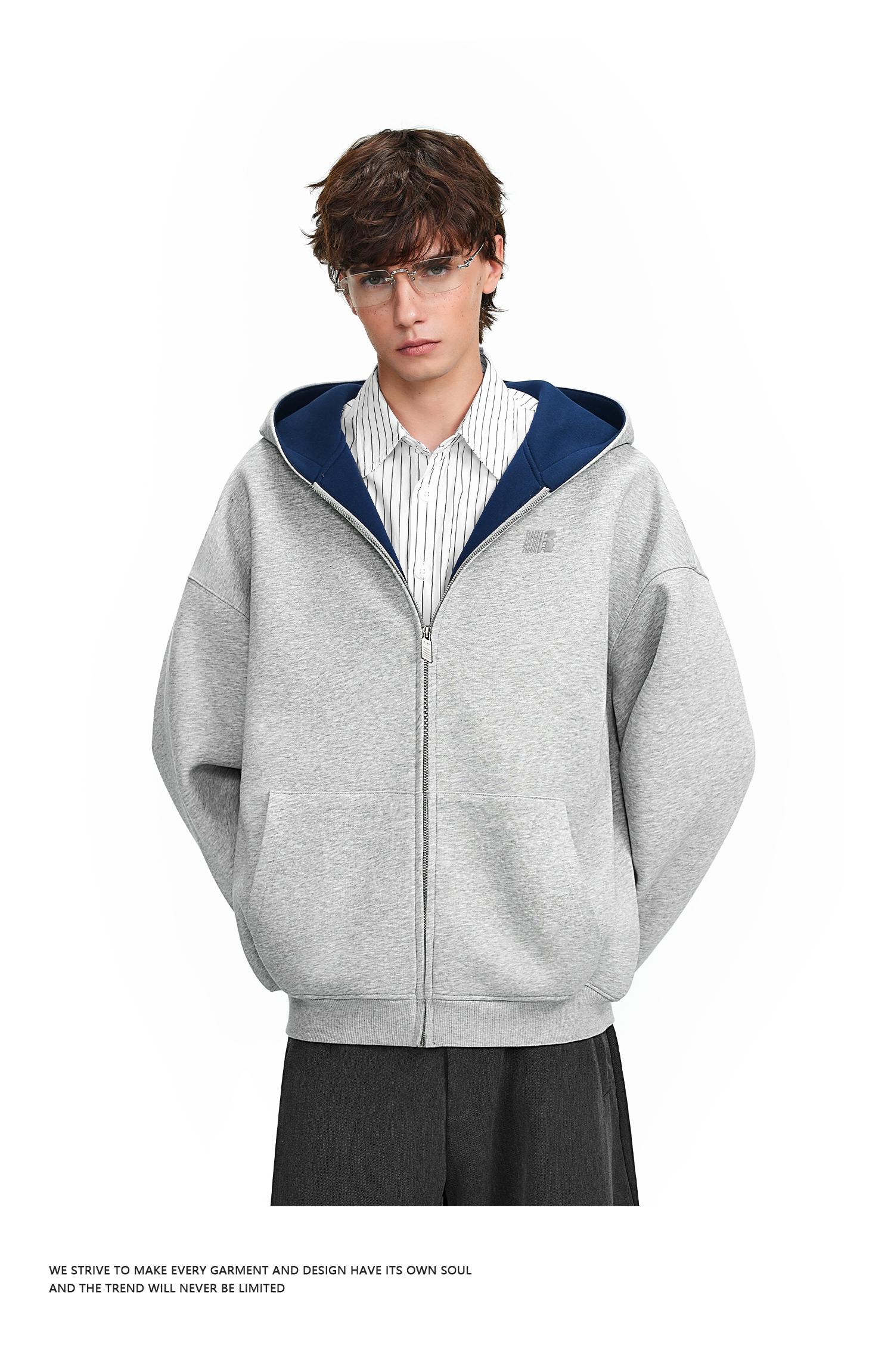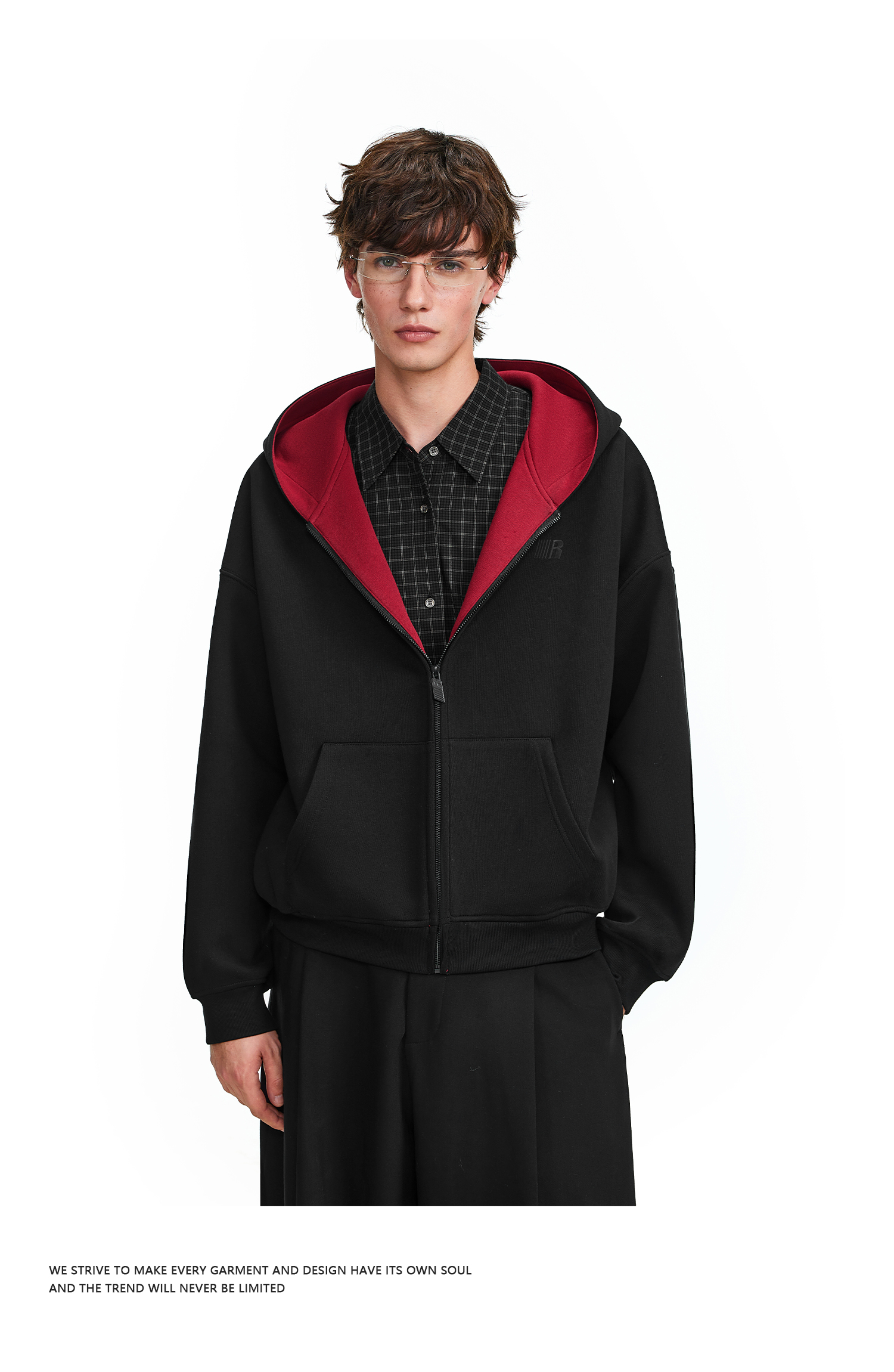 FDR官方店 情侣重磅拉链外套男秋拼色空气层连帽卫衣女款2025新款