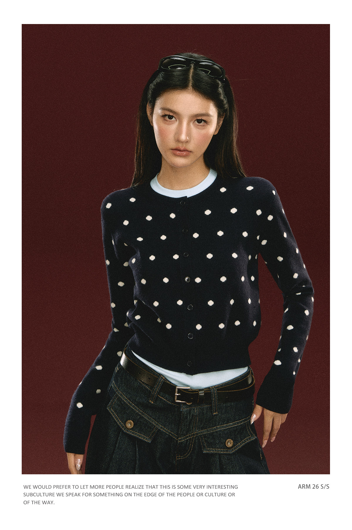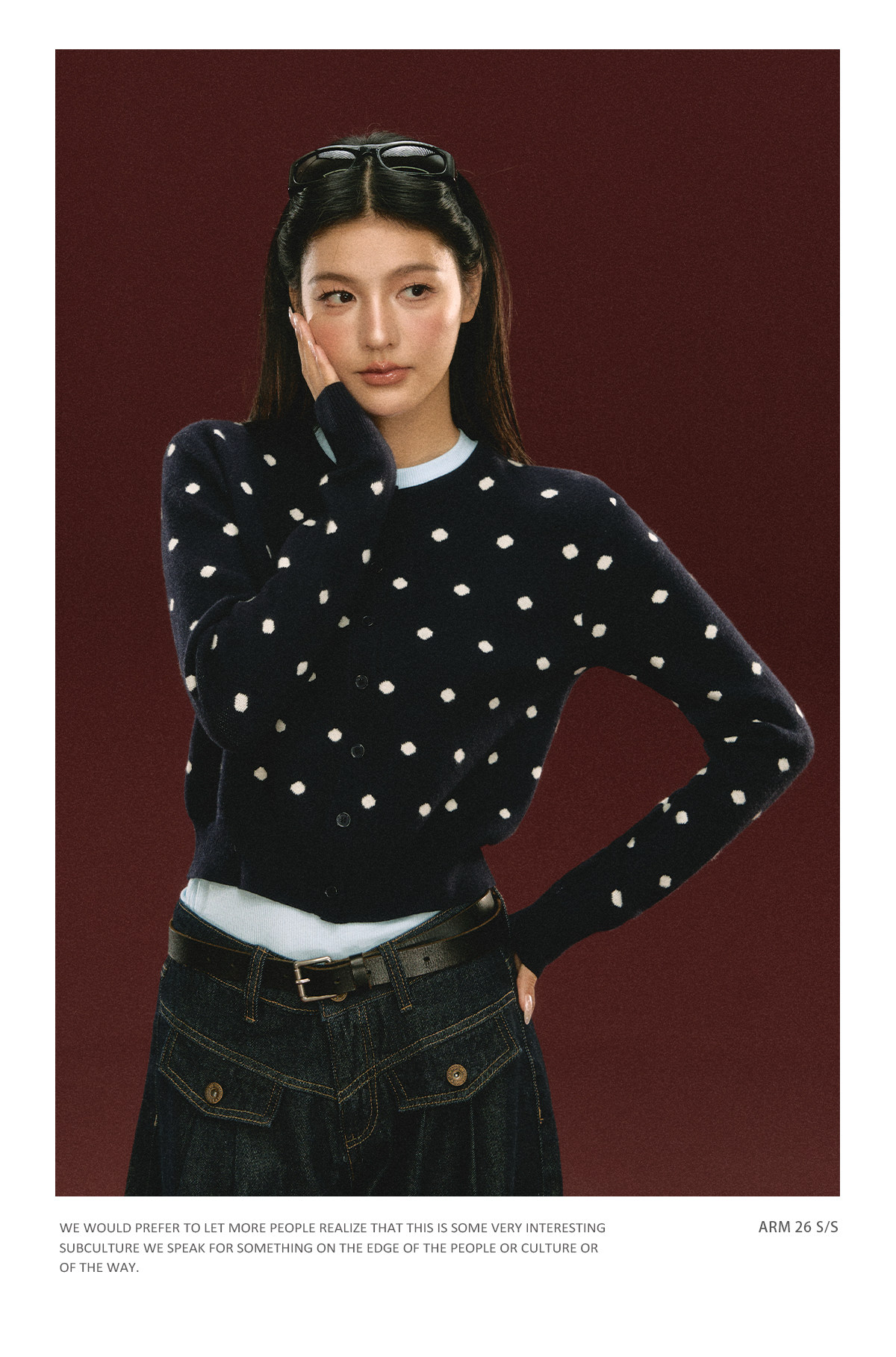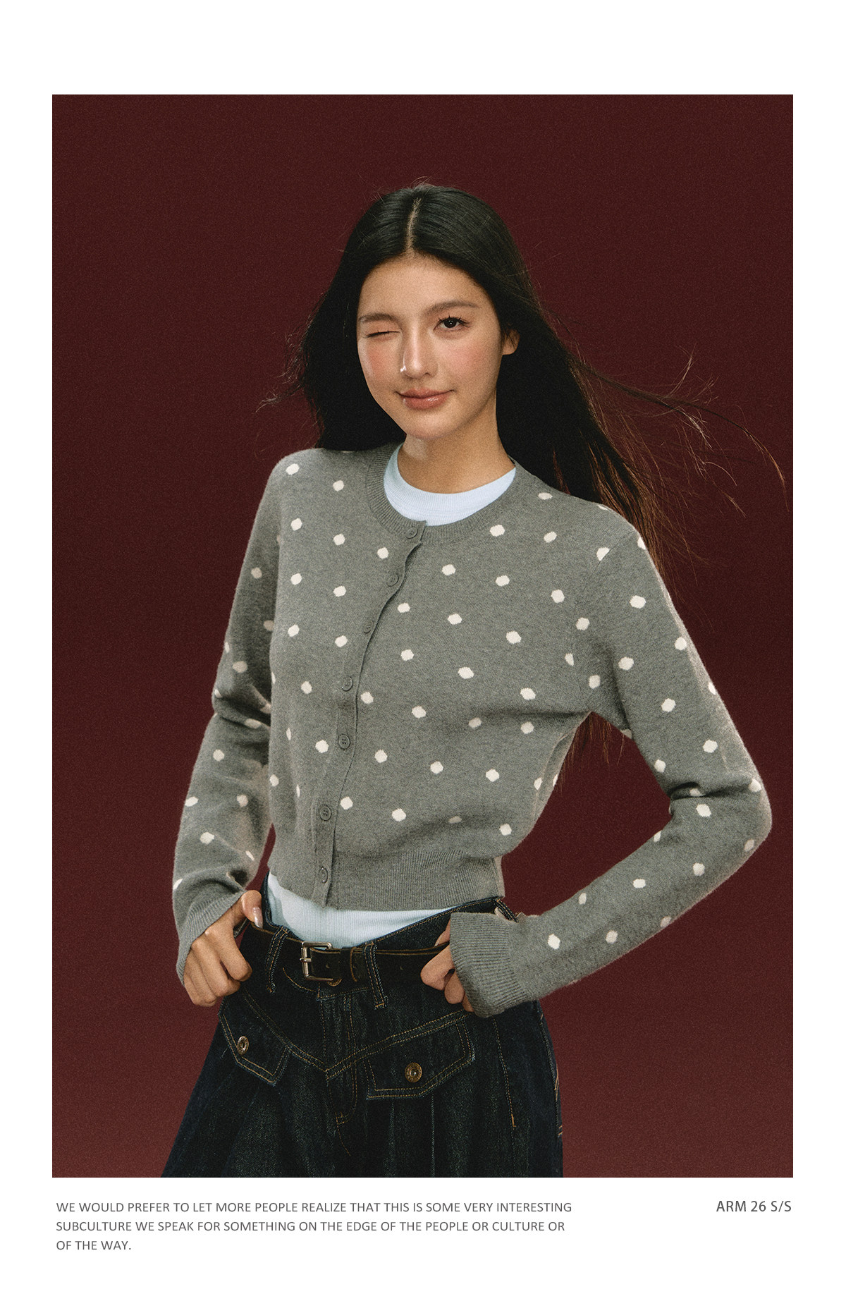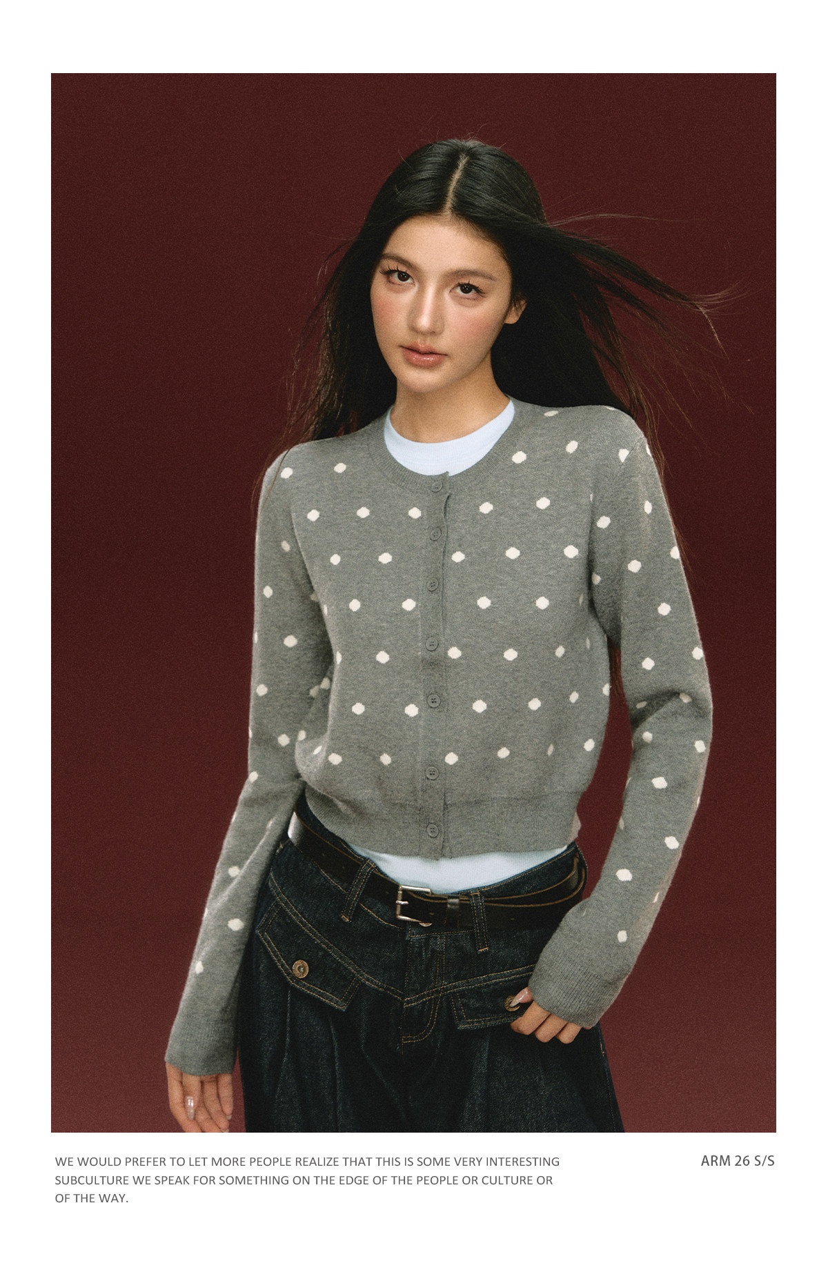 Ariseism 美式复古圆点针织开衫毛衣女春季新款修身上衣