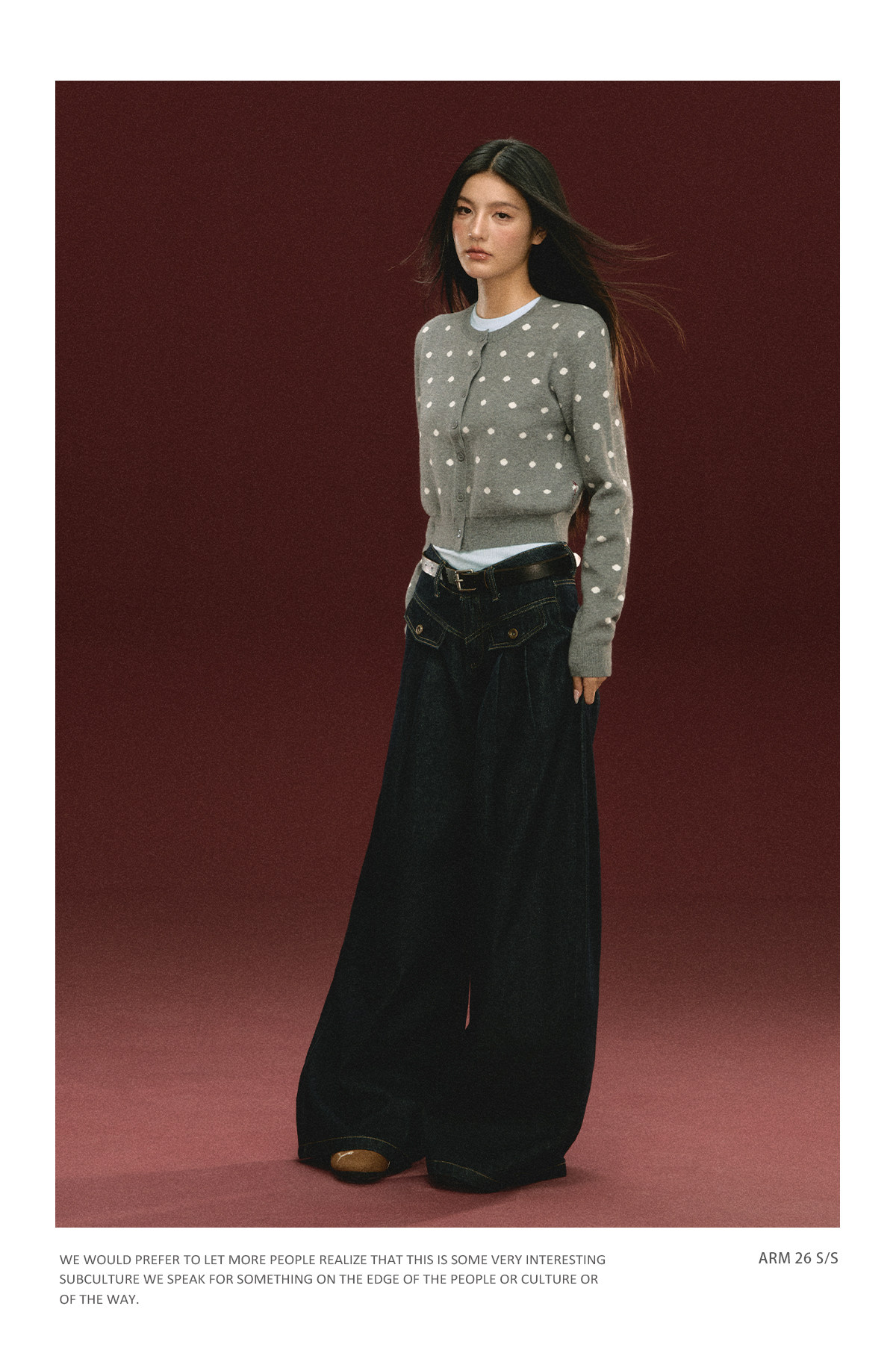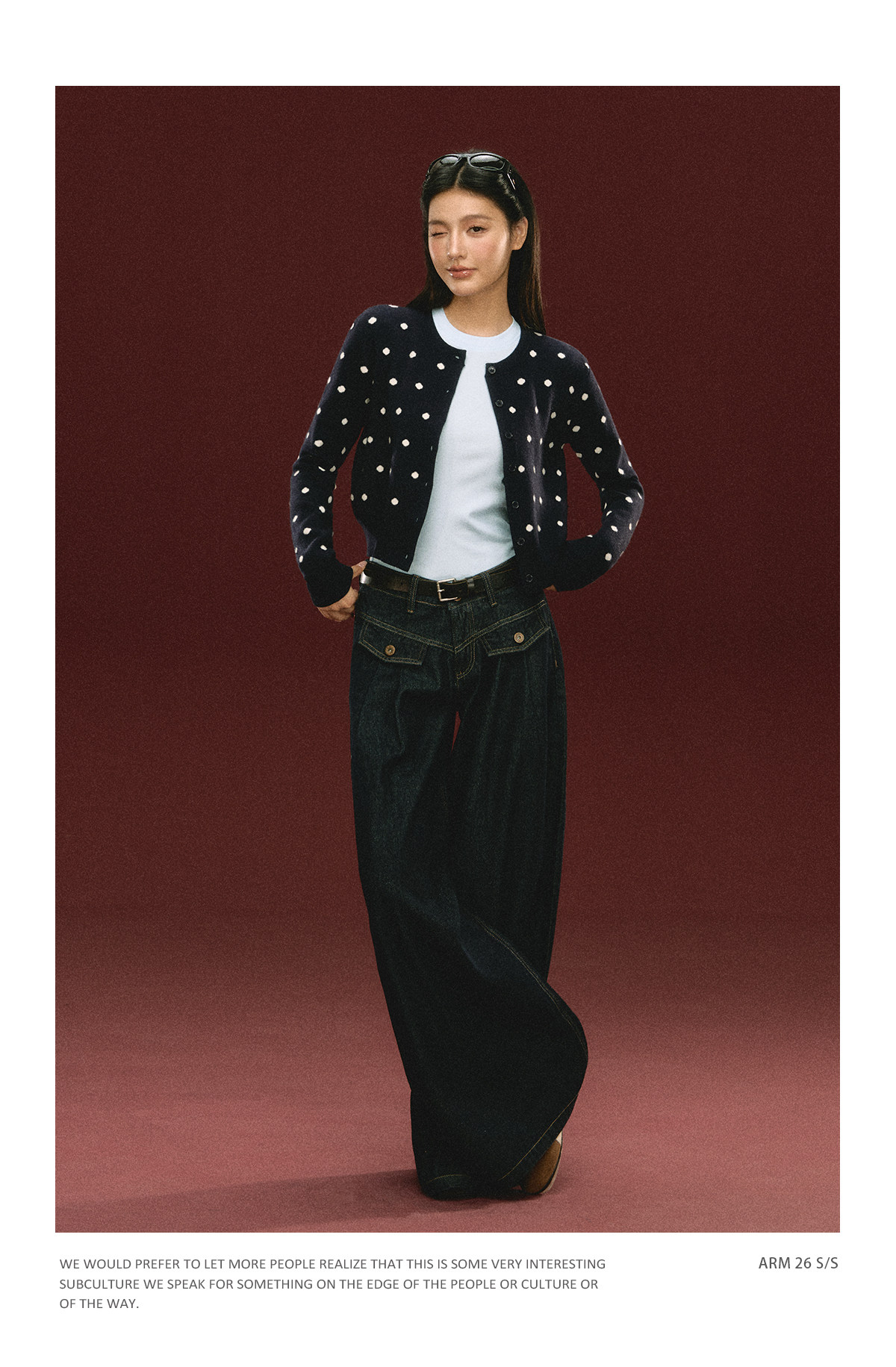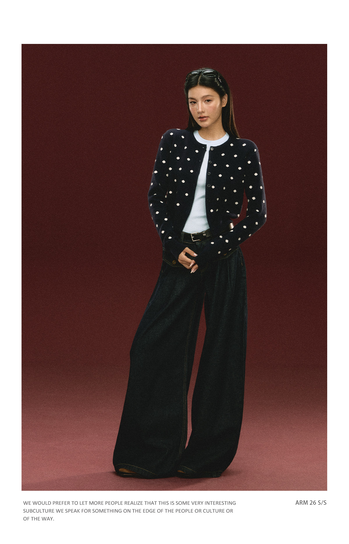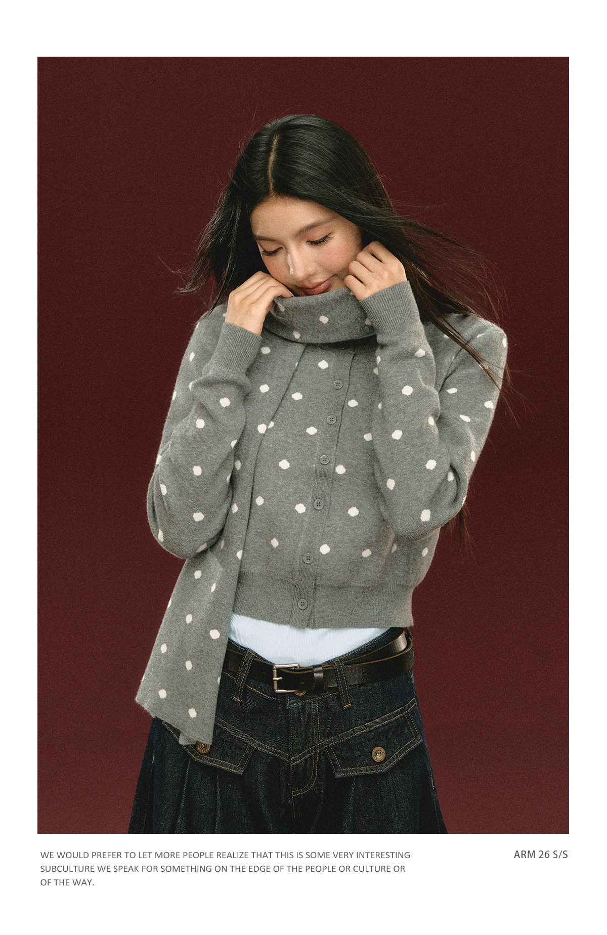 Ariseism 美式复古圆点针织开衫毛衣女春季新款修身上衣