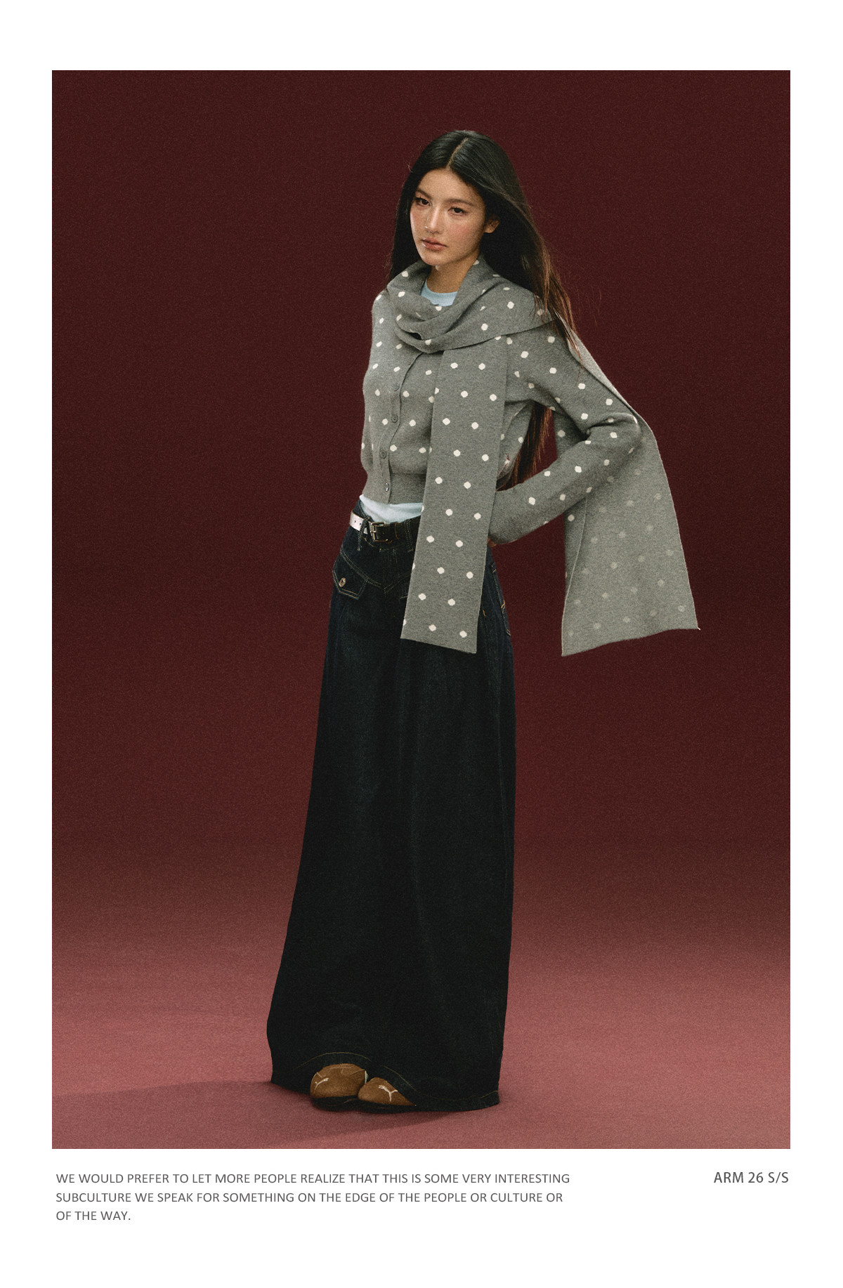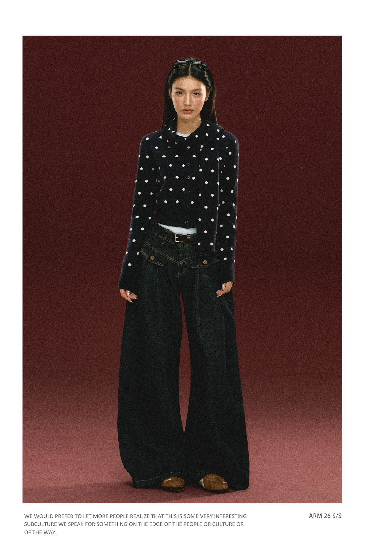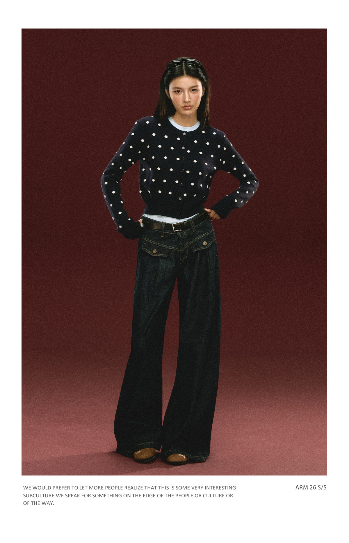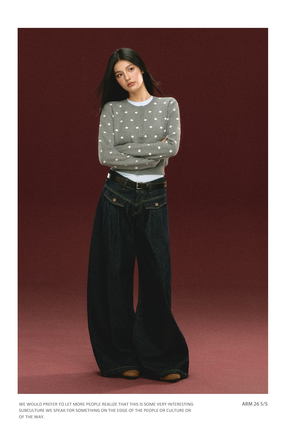 Ariseism 美式复古圆点针织开衫毛衣女春季新款修身上衣