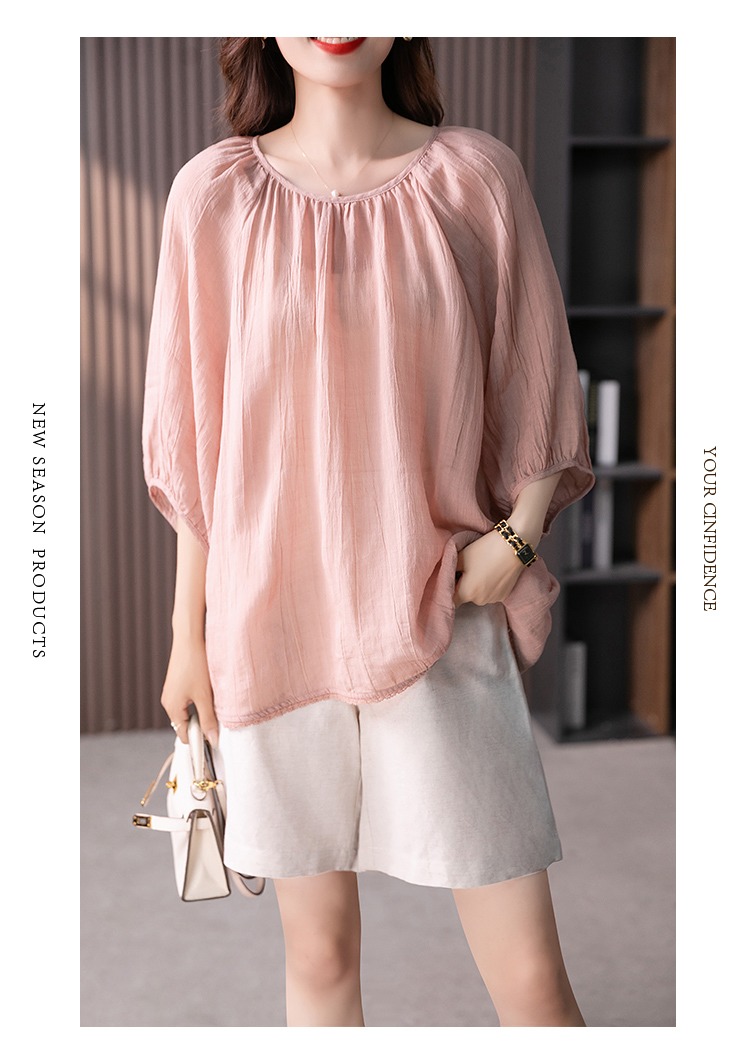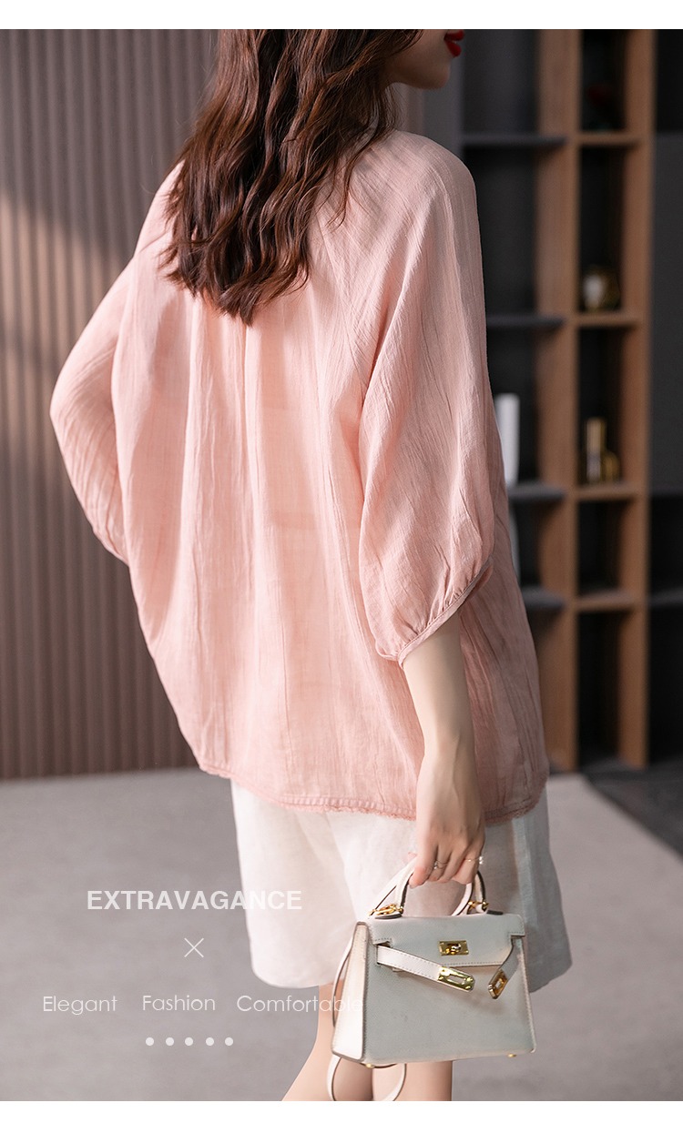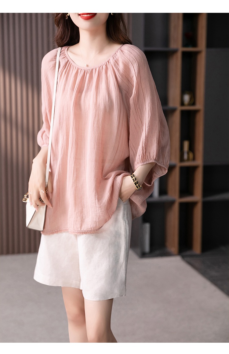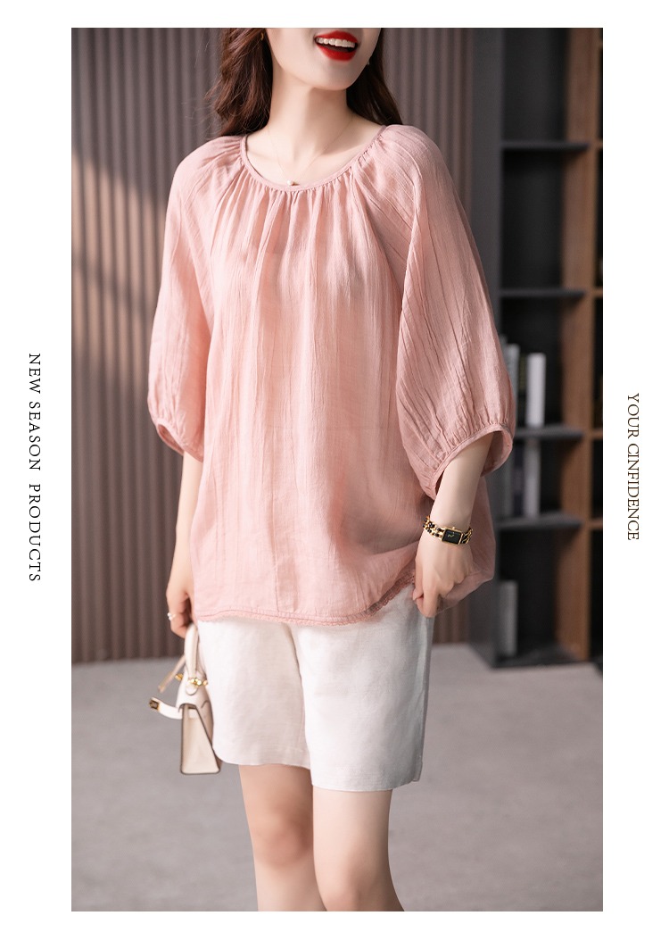 【现货7天】复古苎麻衬衫女休闲2023夏季新款法式灯笼袖宽松显瘦纯色上衣