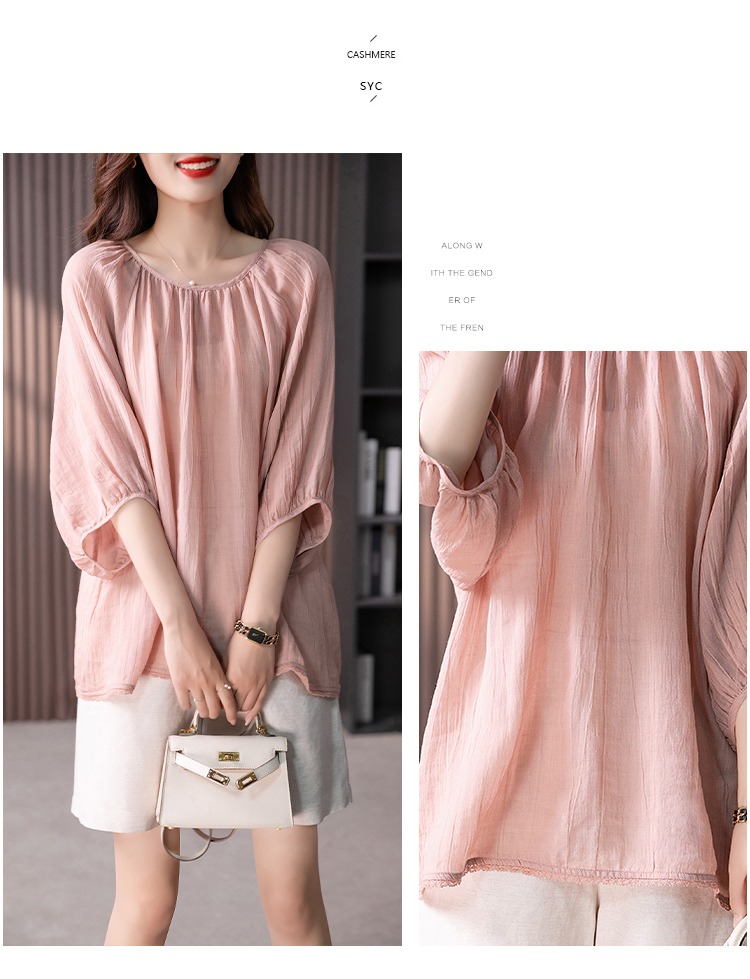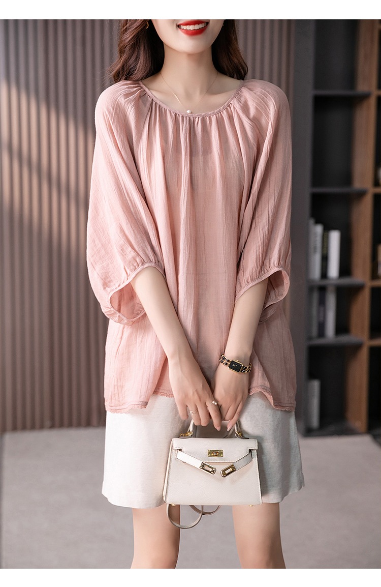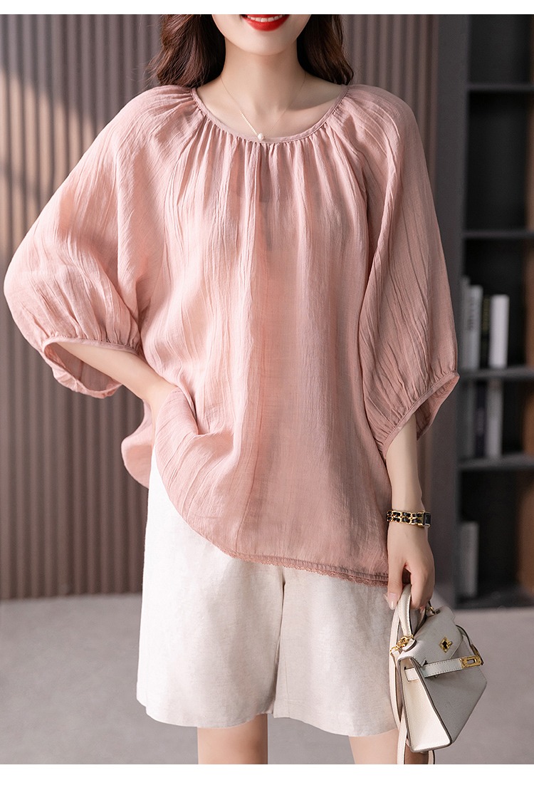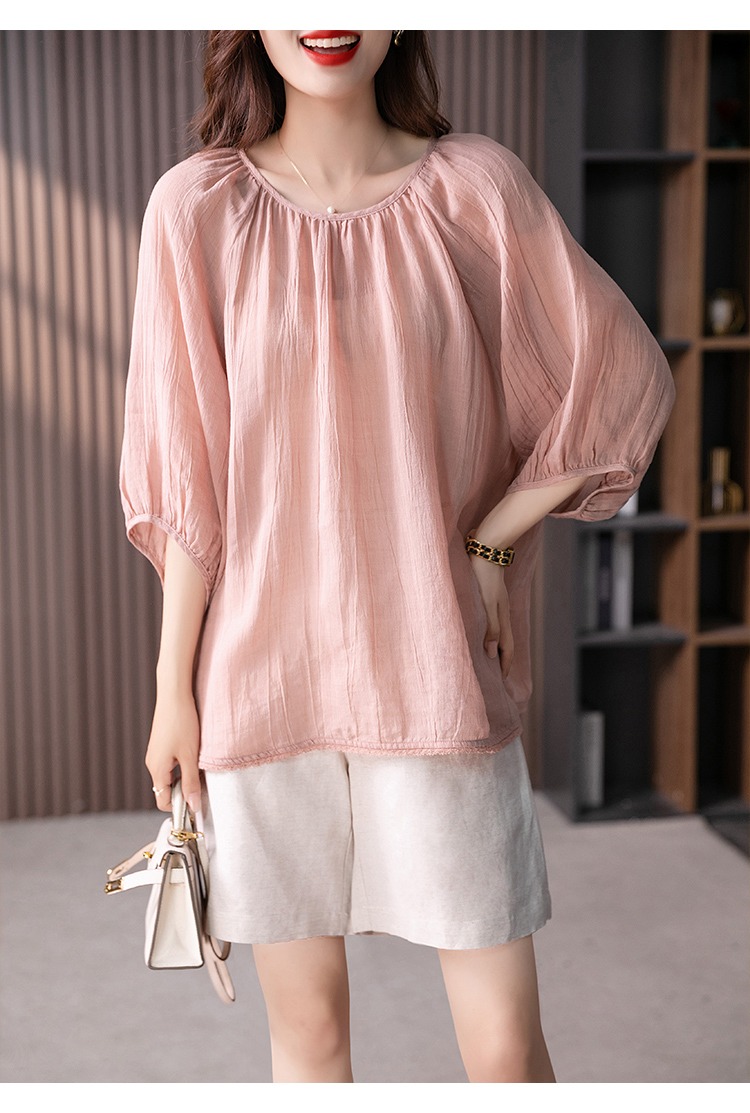 【现货7天】复古苎麻衬衫女休闲2023夏季新款法式灯笼袖宽松显瘦纯色上衣