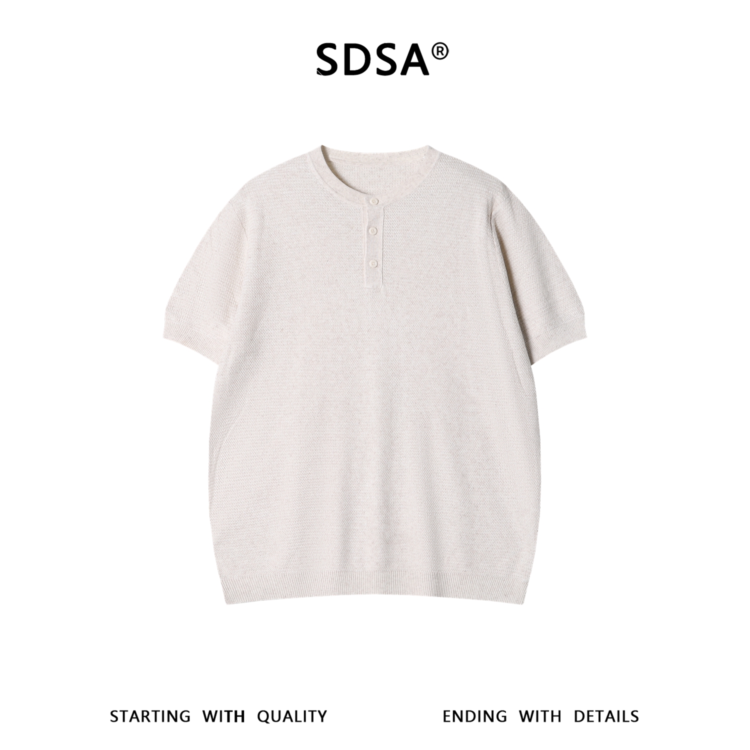 SDSA男装2026新款高贵轻奢简纯色半纽扣亨利领肌理针织短袖T恤