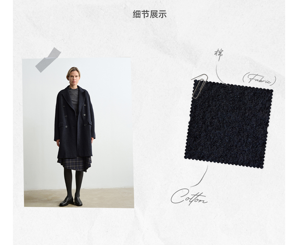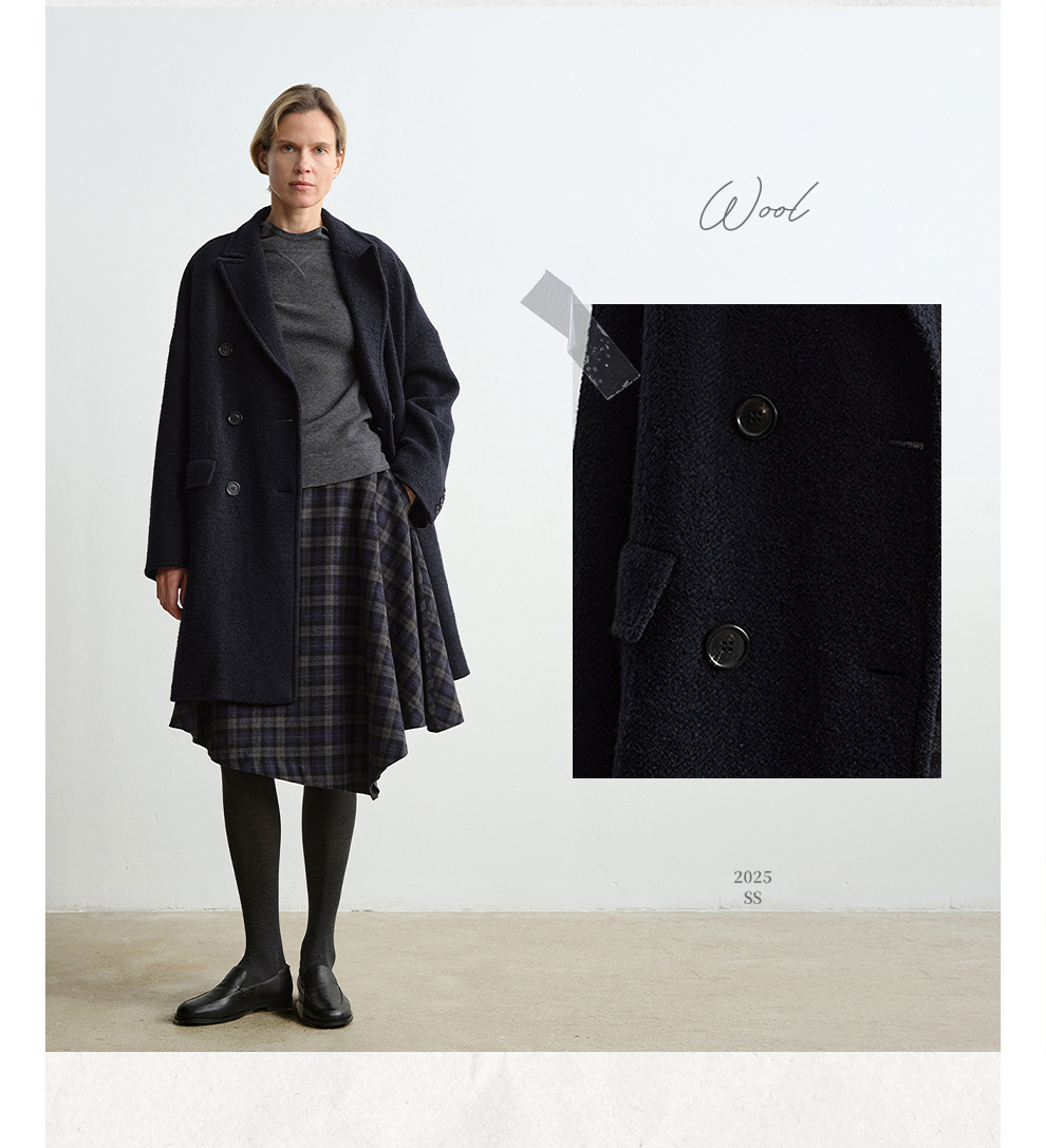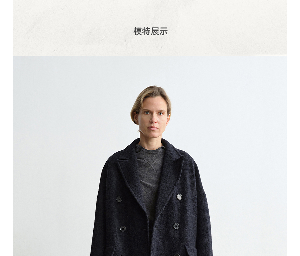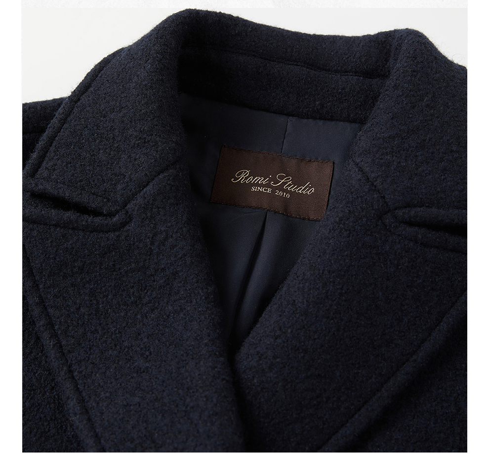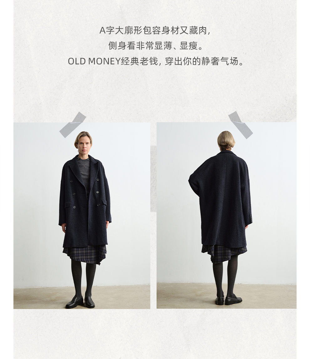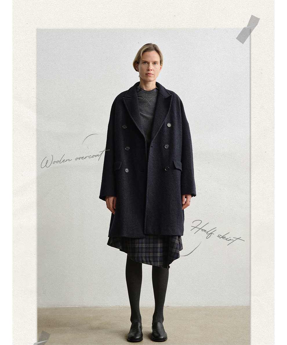 ROMI STUDIO“棕标甄选”100%绵羊毛双排扣宽松大衣外套RW24WWG0011【现货】