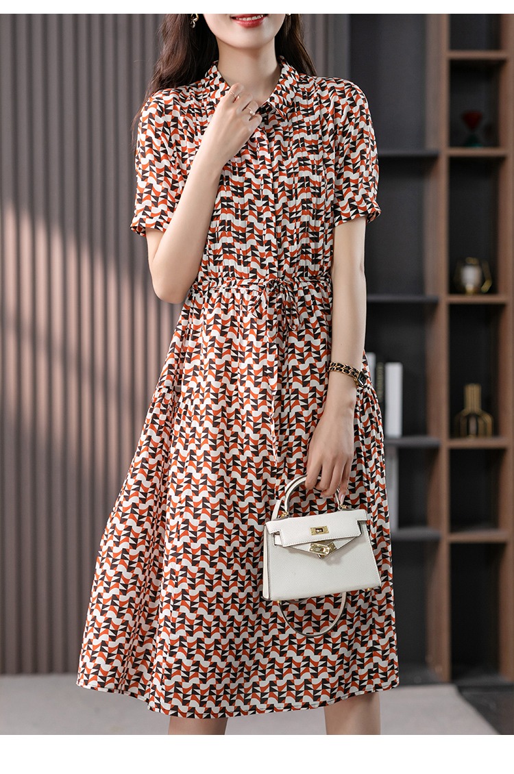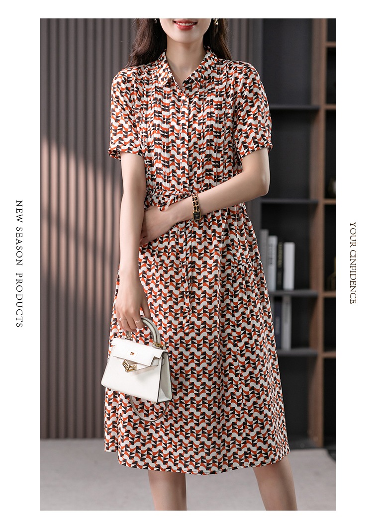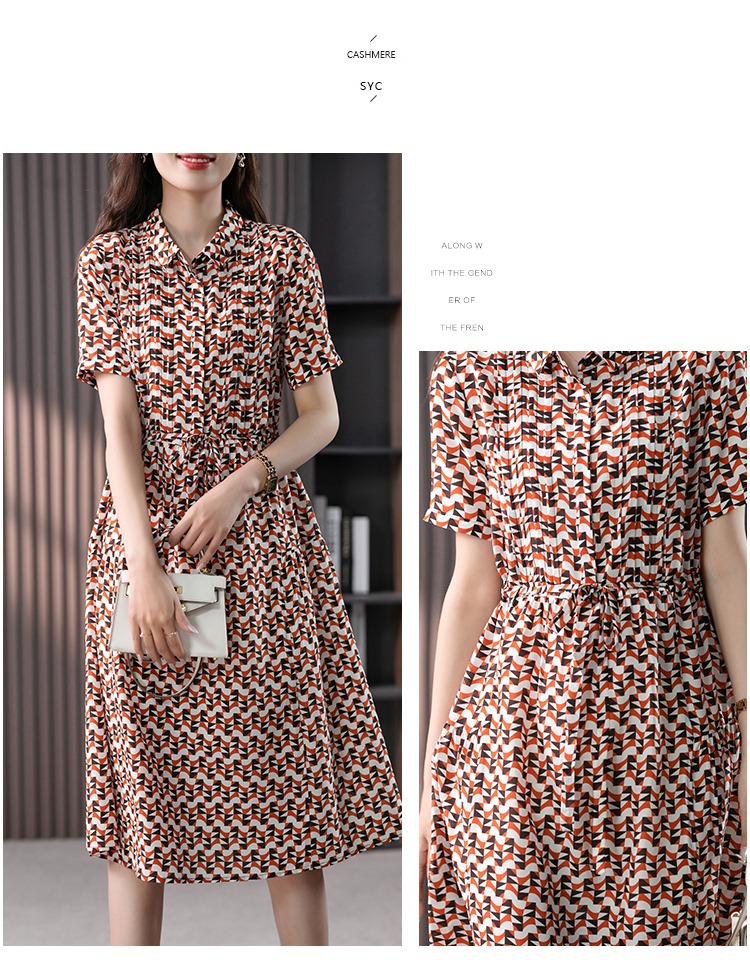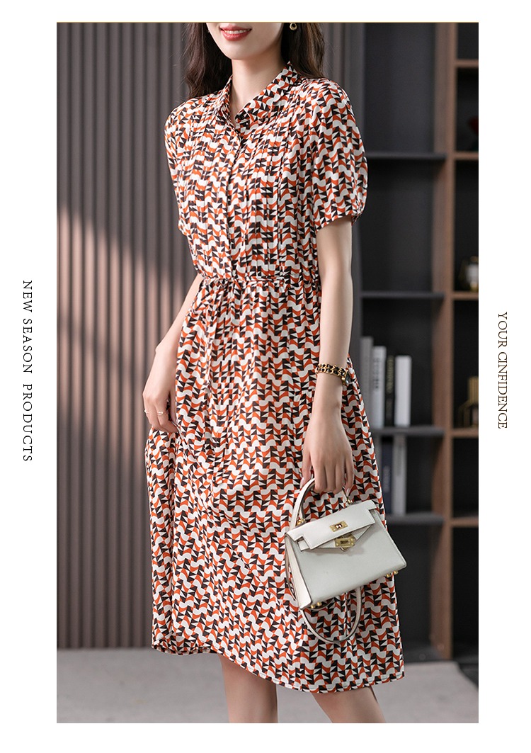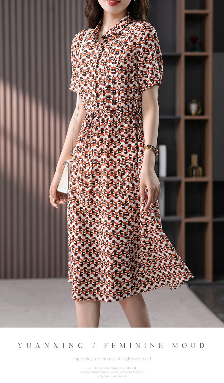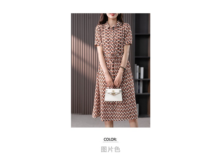YX【定制15天】印花真丝连衣裙女2024夏季新款韩版收腰显瘦桑蚕丝衬衫中长裙