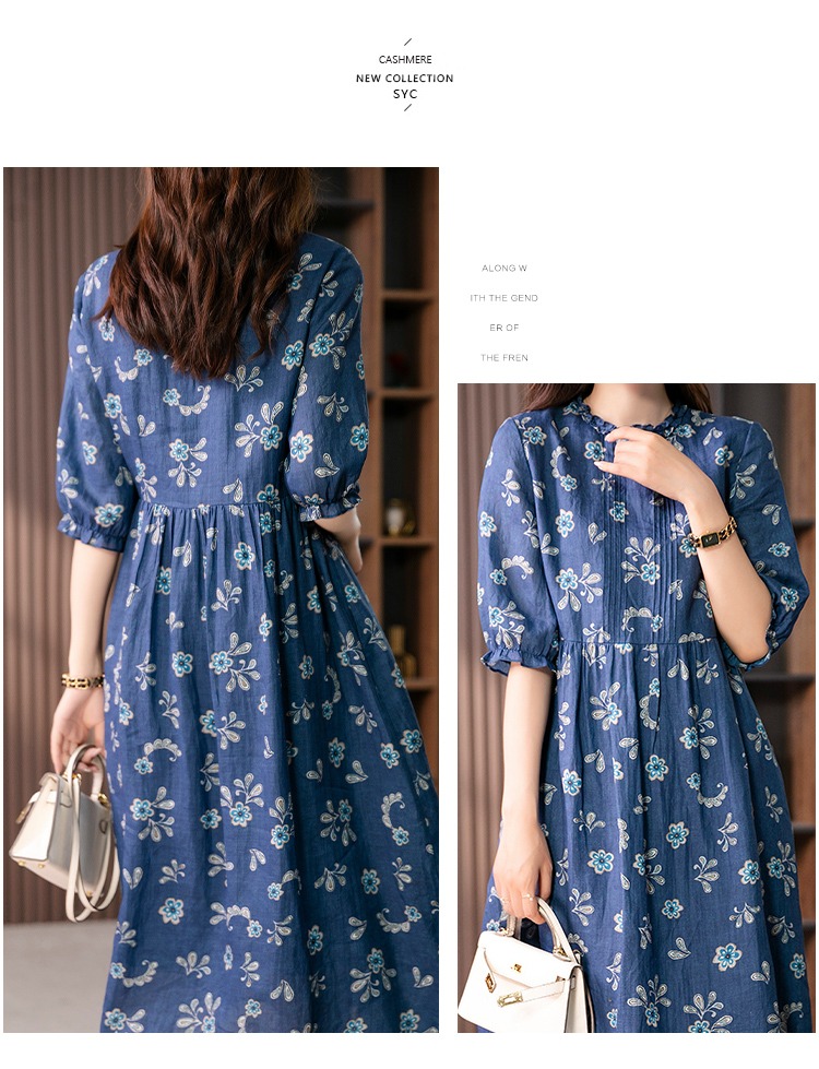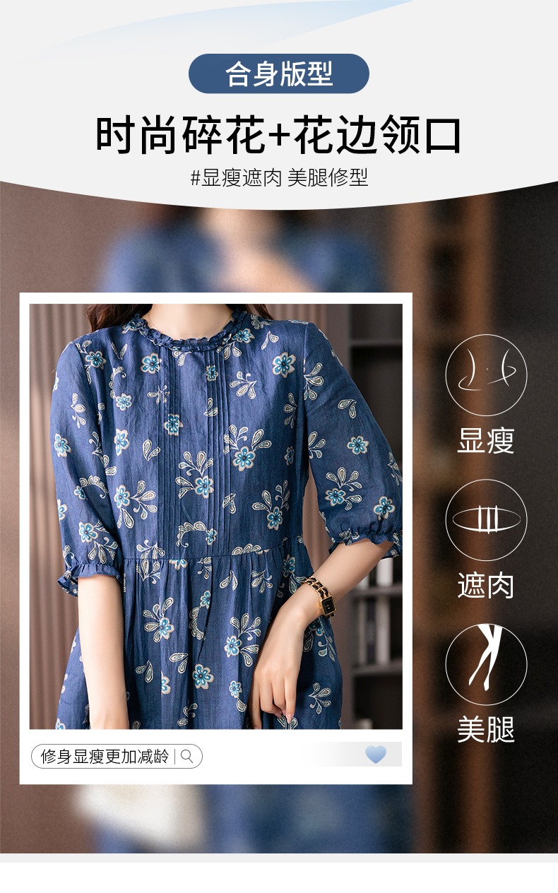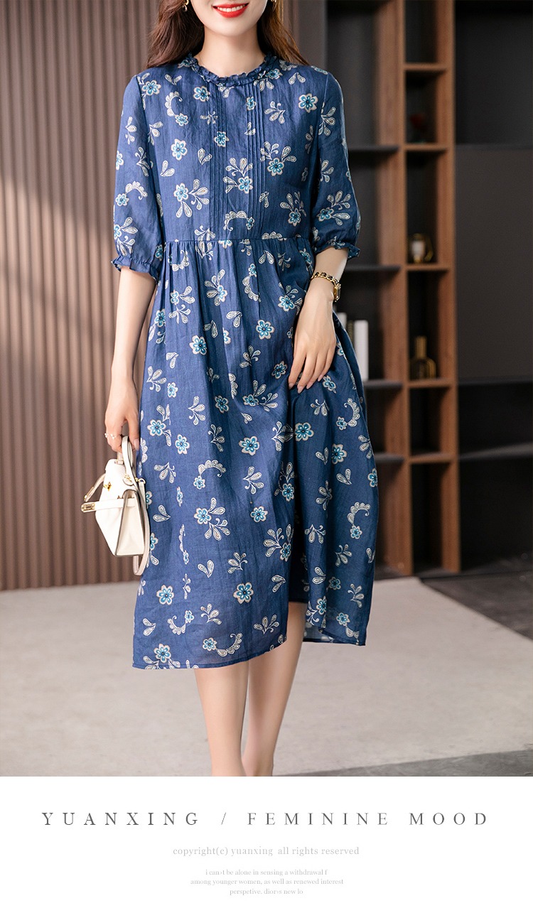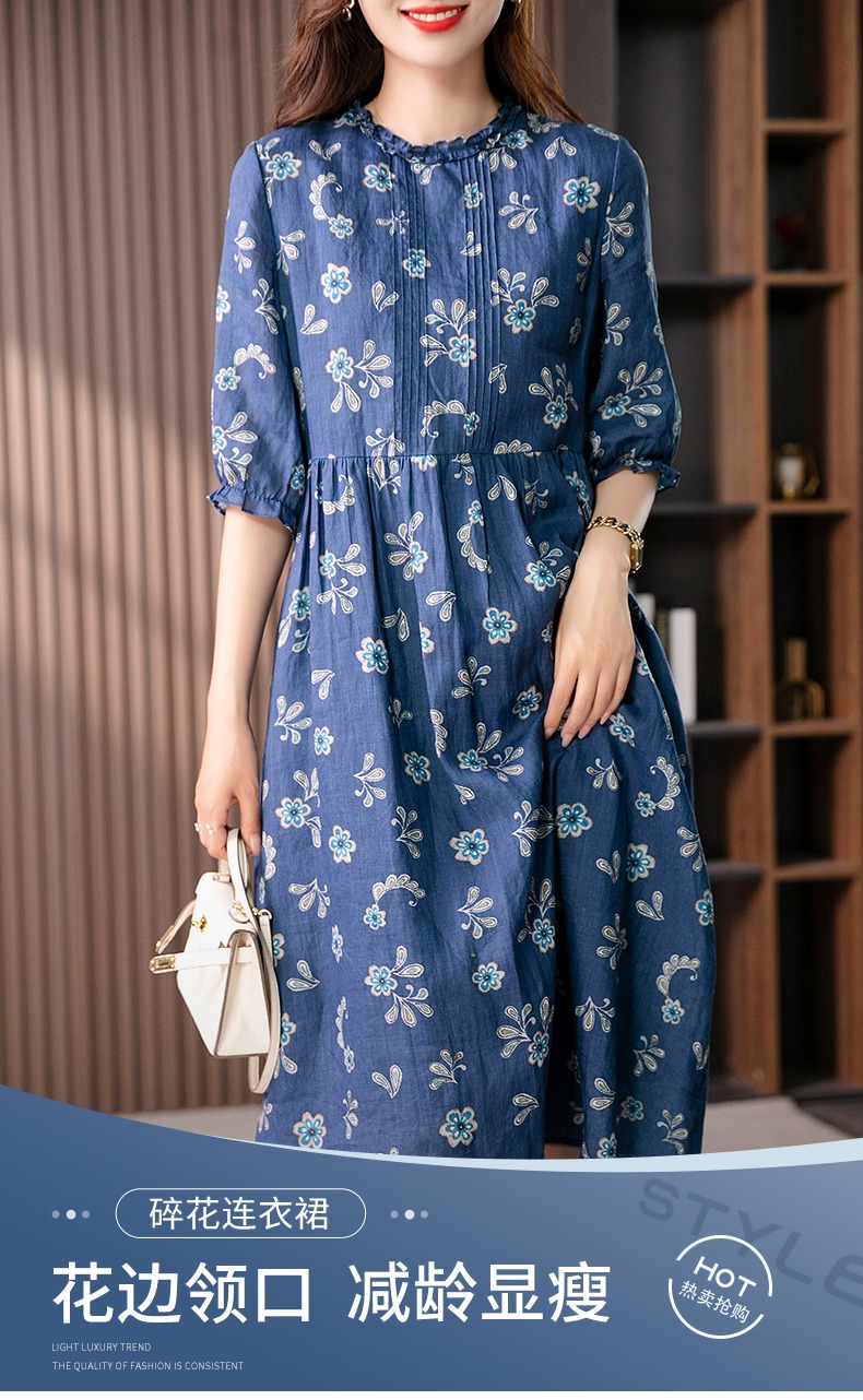 【现货7天】设计感时尚印花连衣裙女2023夏季新款休闲减龄显瘦碎花长裙子