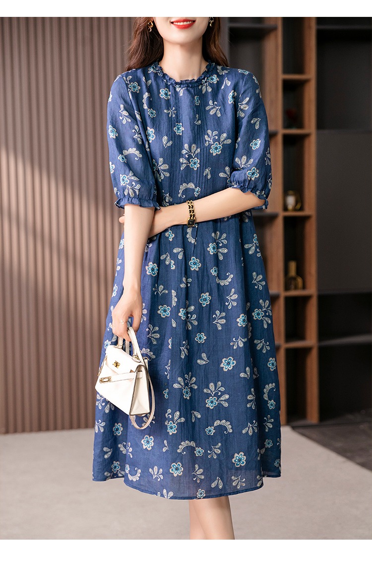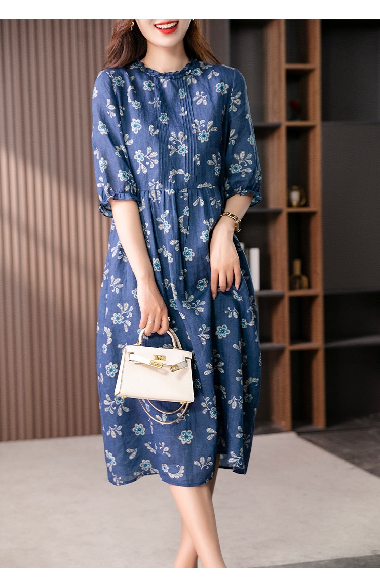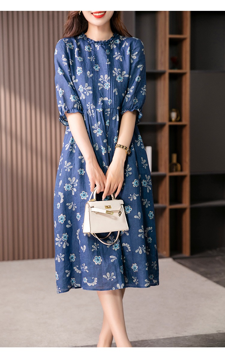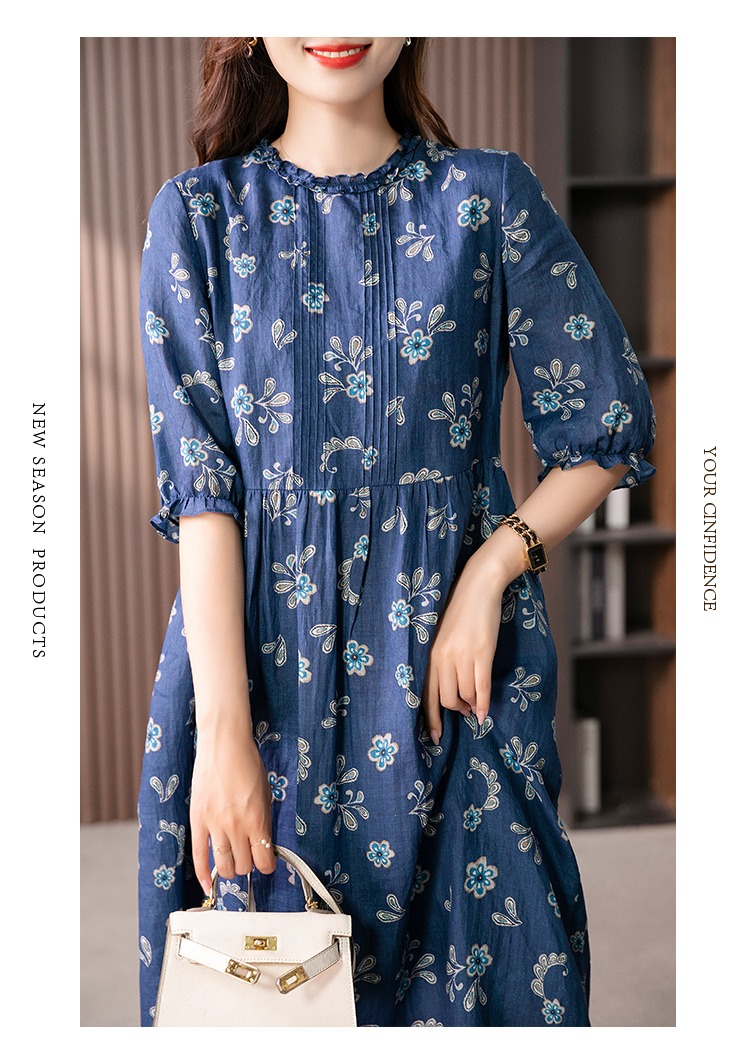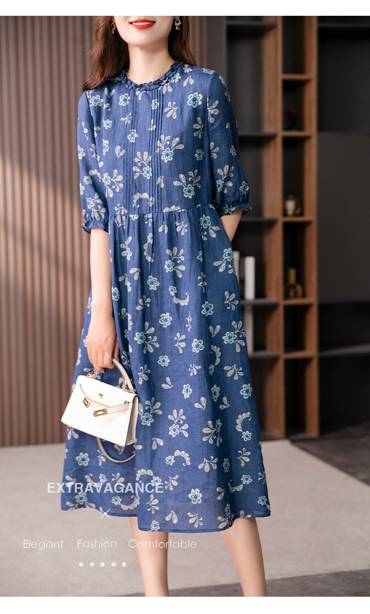 【现货7天】设计感时尚印花连衣裙女2023夏季新款休闲减龄显瘦碎花长裙子