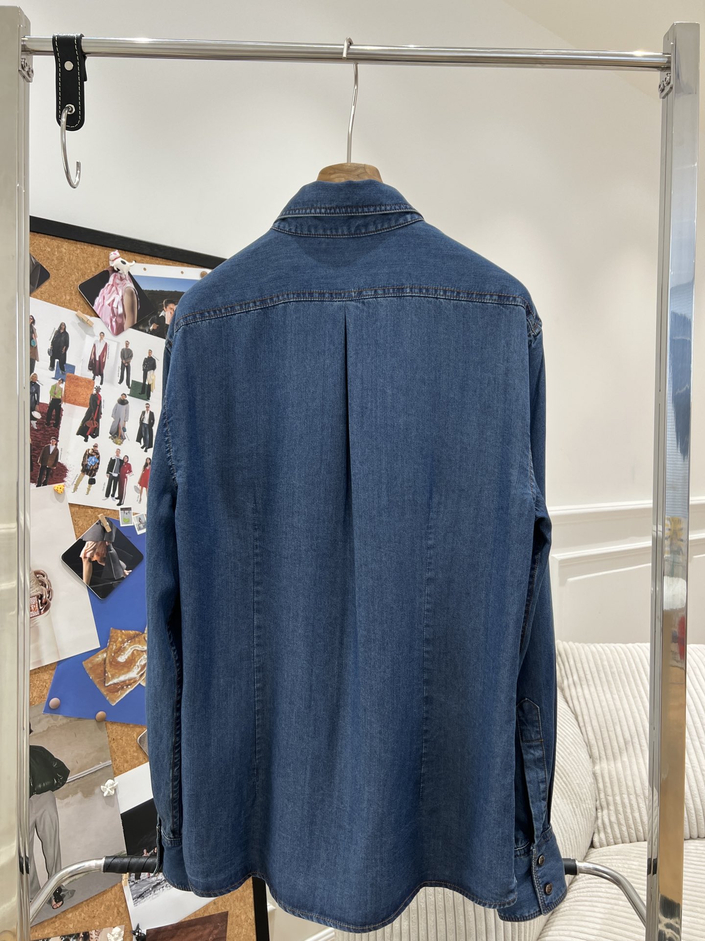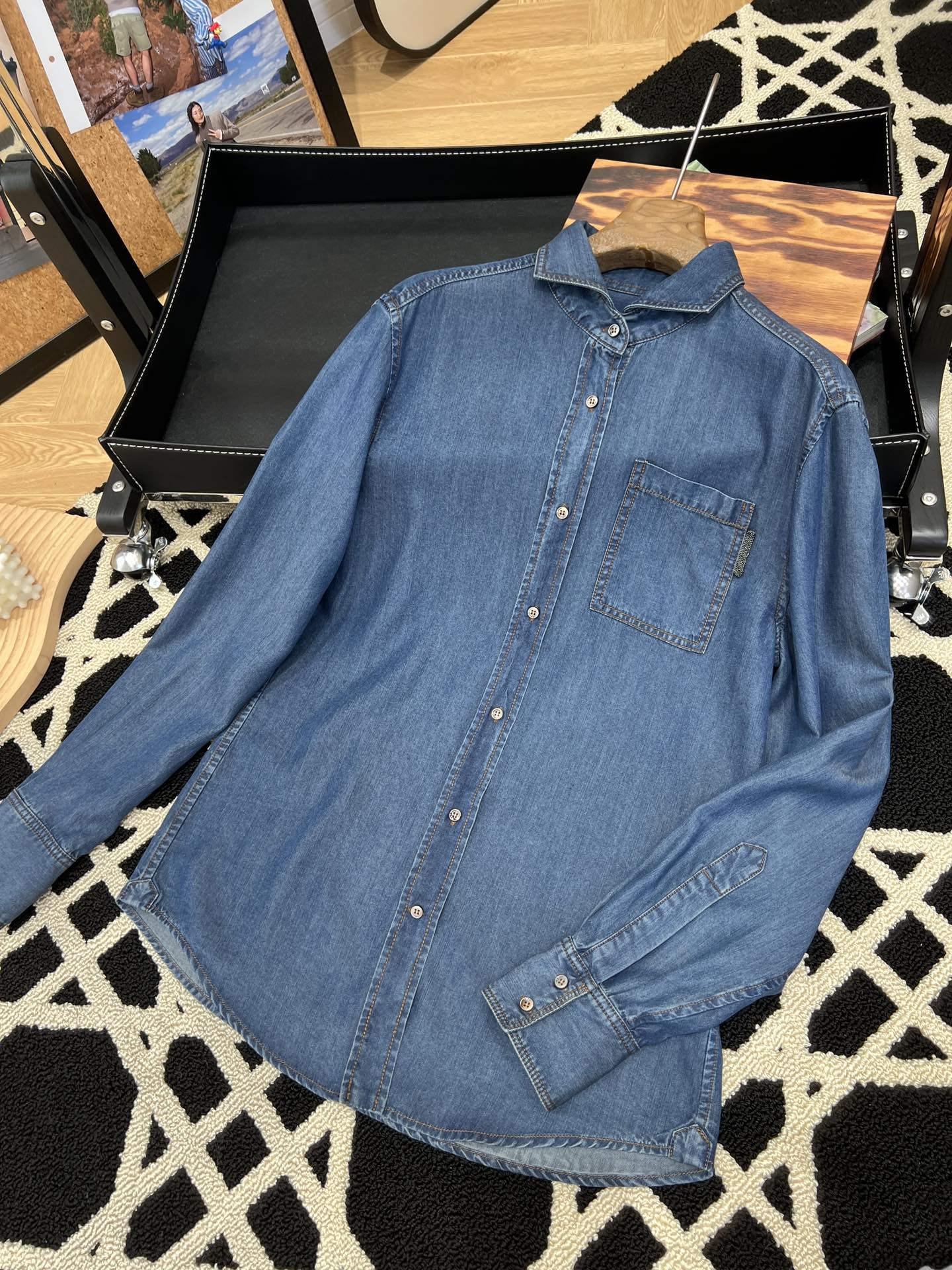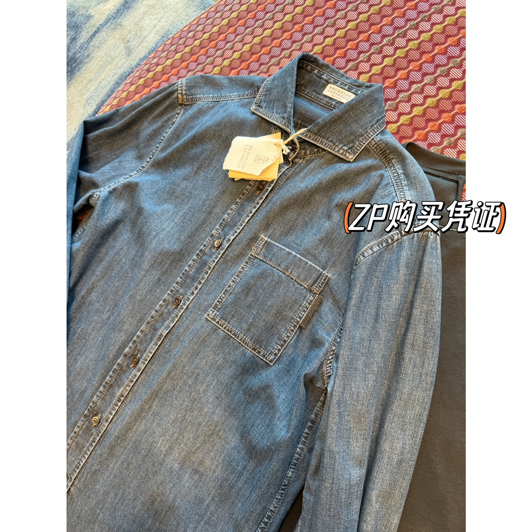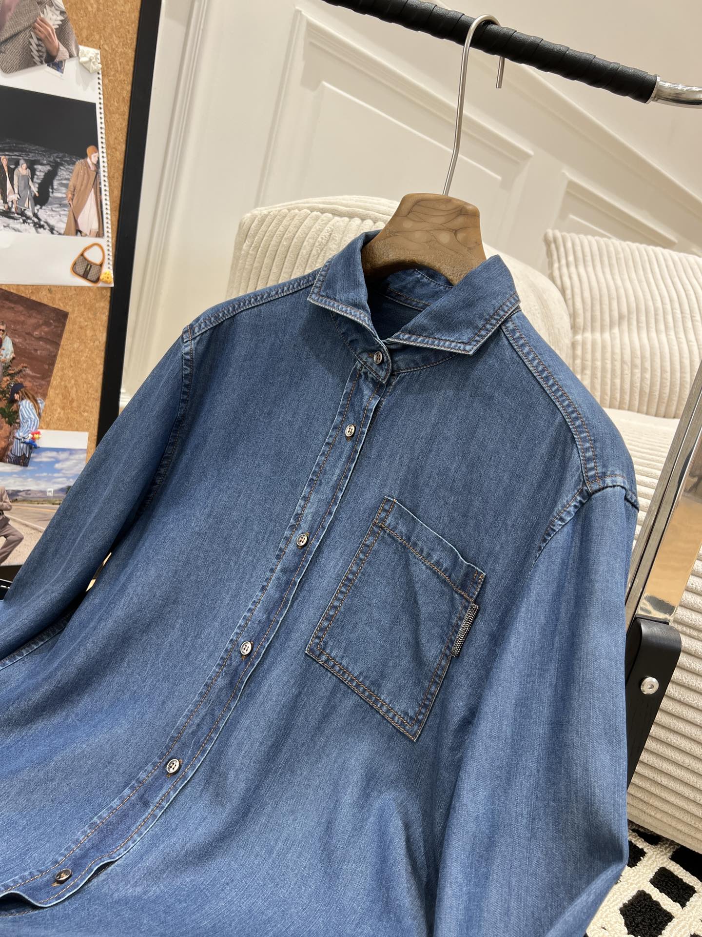 BC 家 2024秋冬新款牛仔衬衫 在胸前口袋处点缀了钉珠装饰,为衬衫引入一缕光彩 B高级感十足