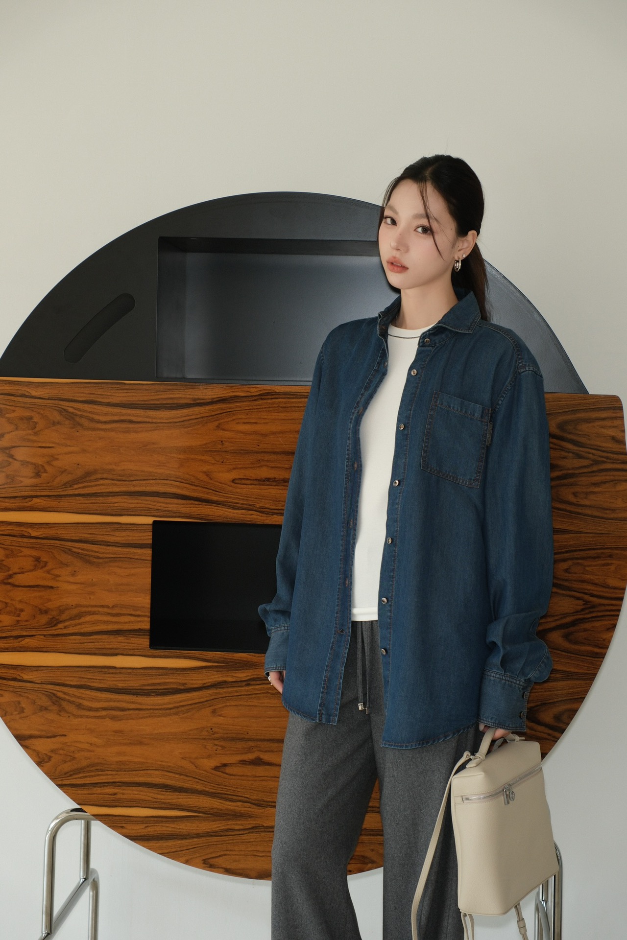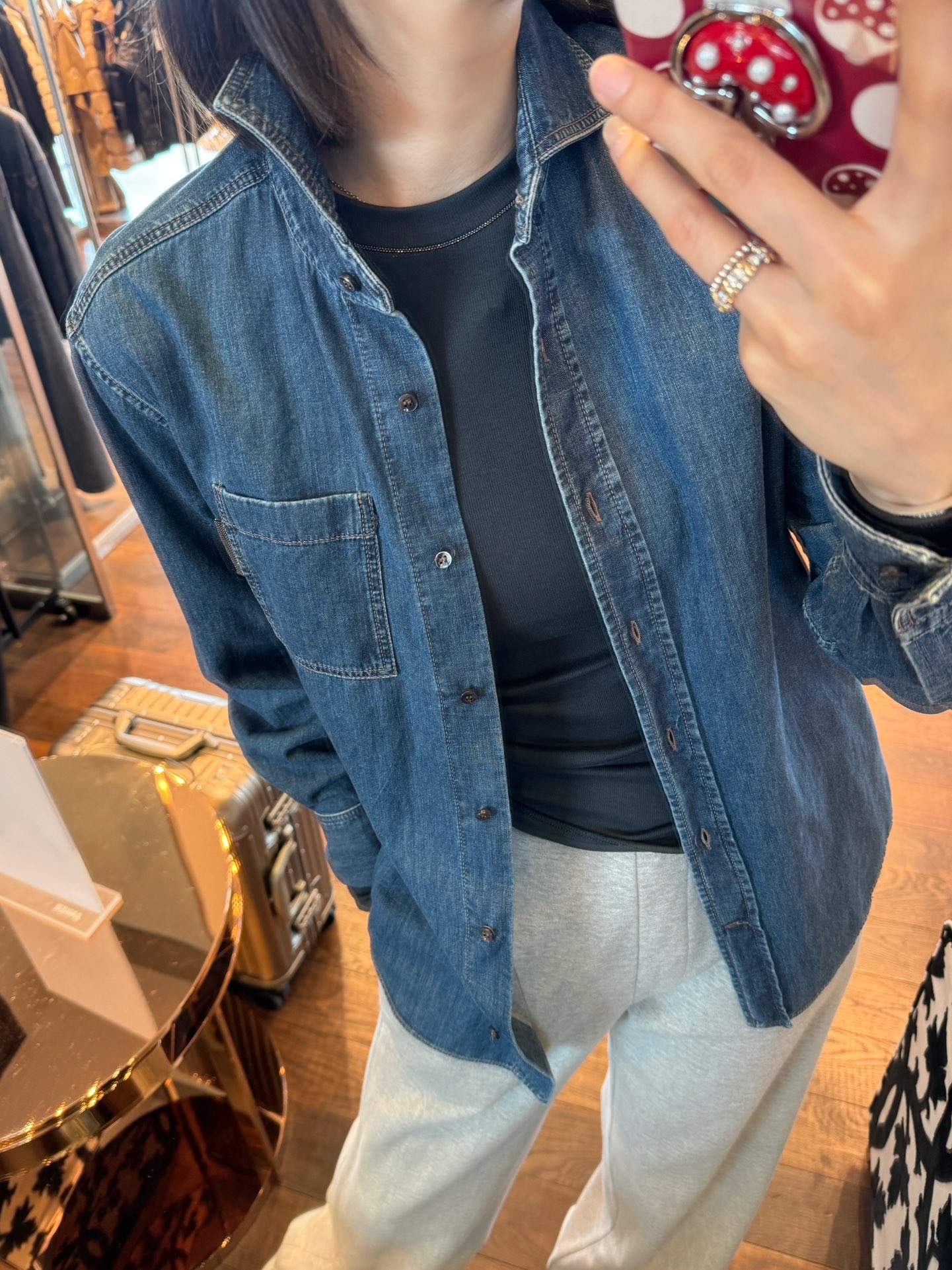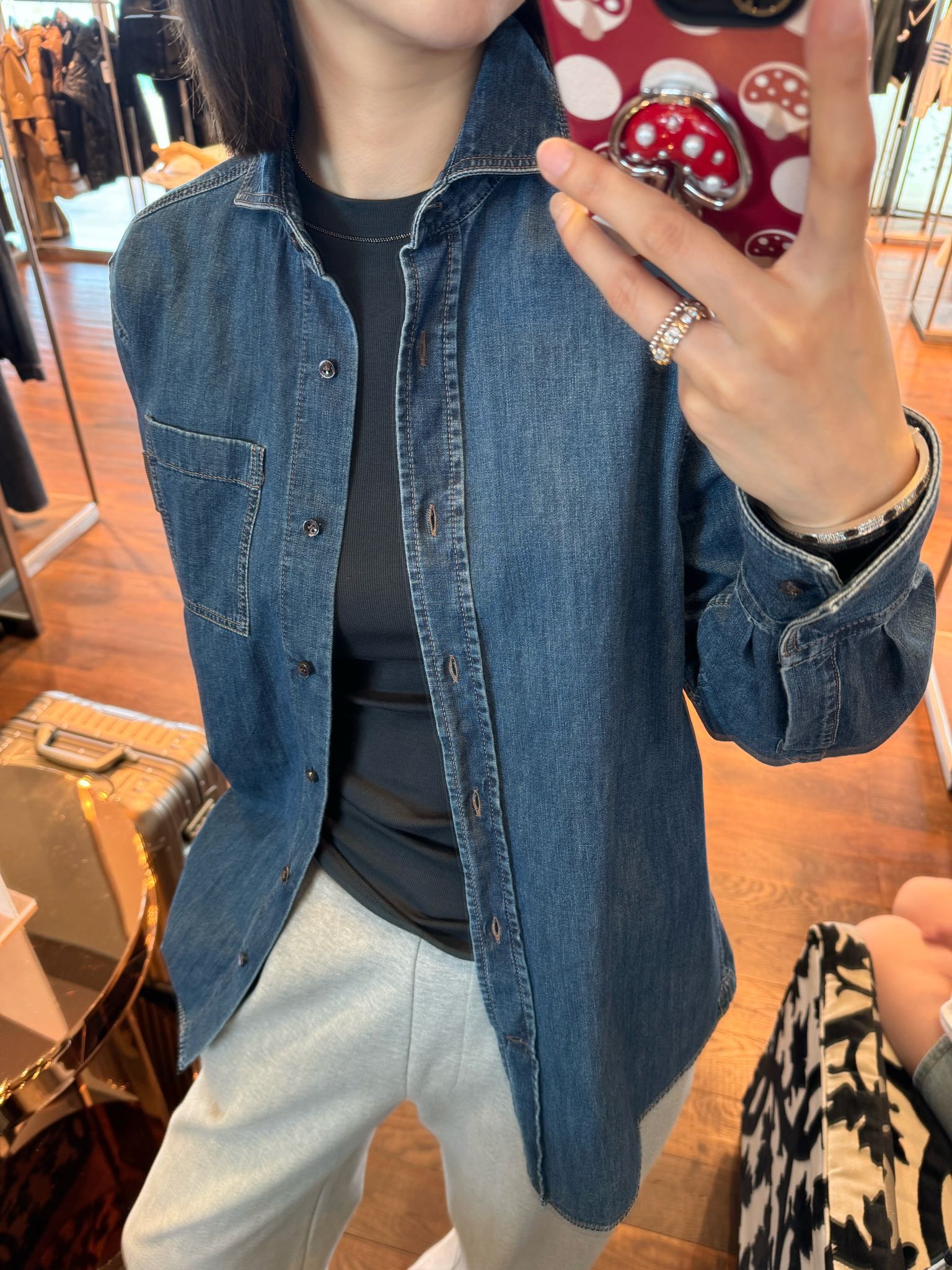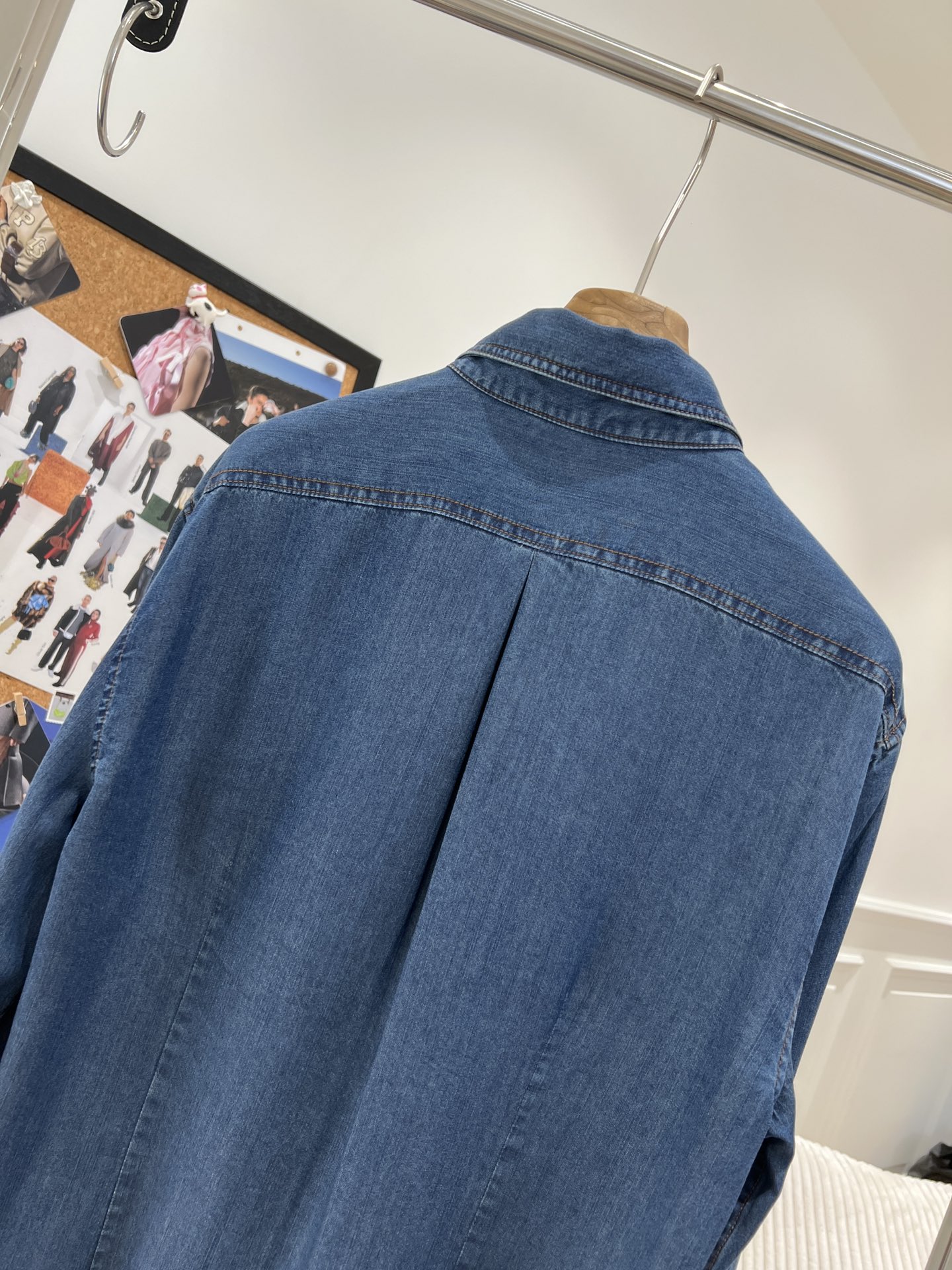 BC 家 2024秋冬新款牛仔衬衫 在胸前口袋处点缀了钉珠装饰,为衬衫引入一缕光彩 B高级感十足