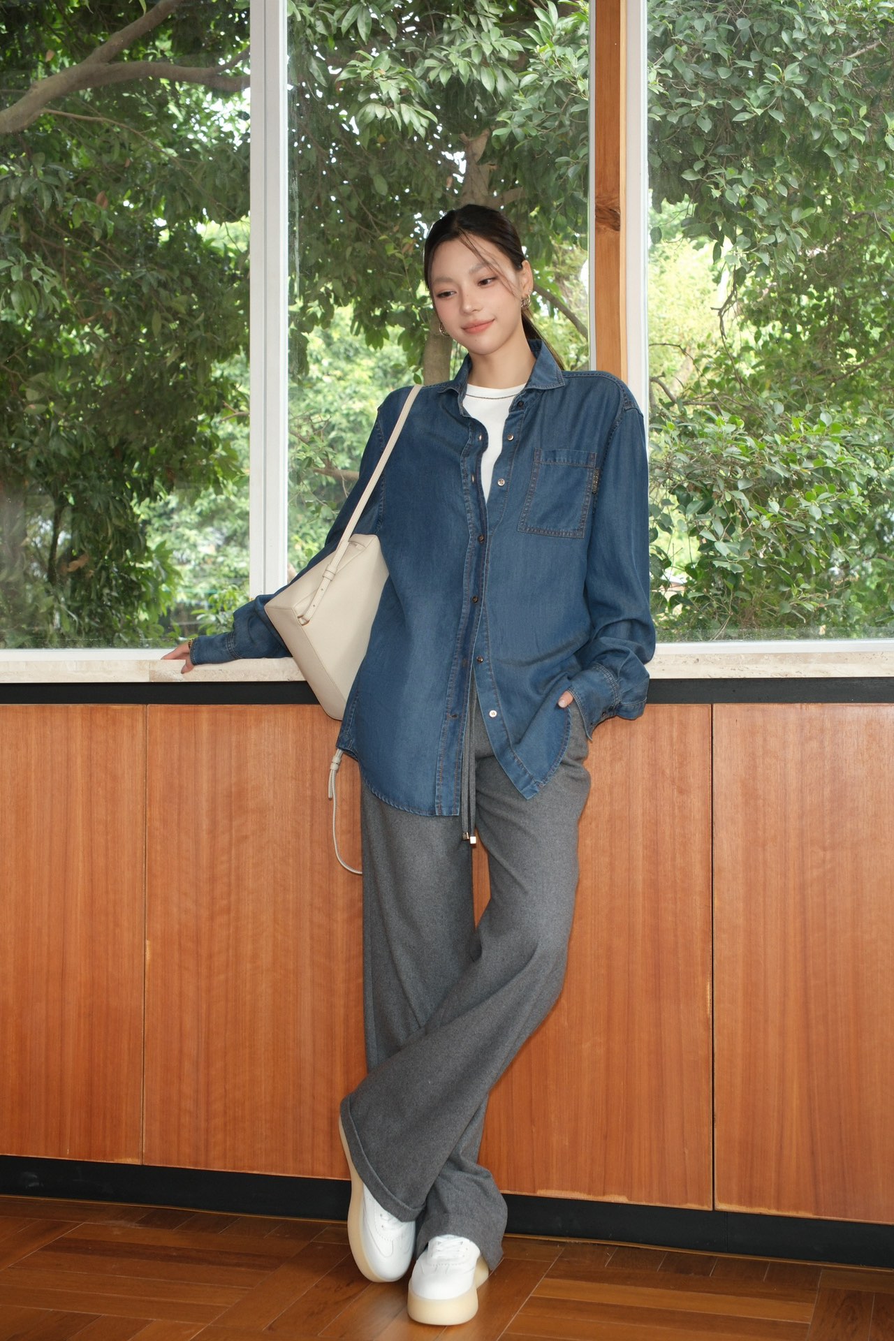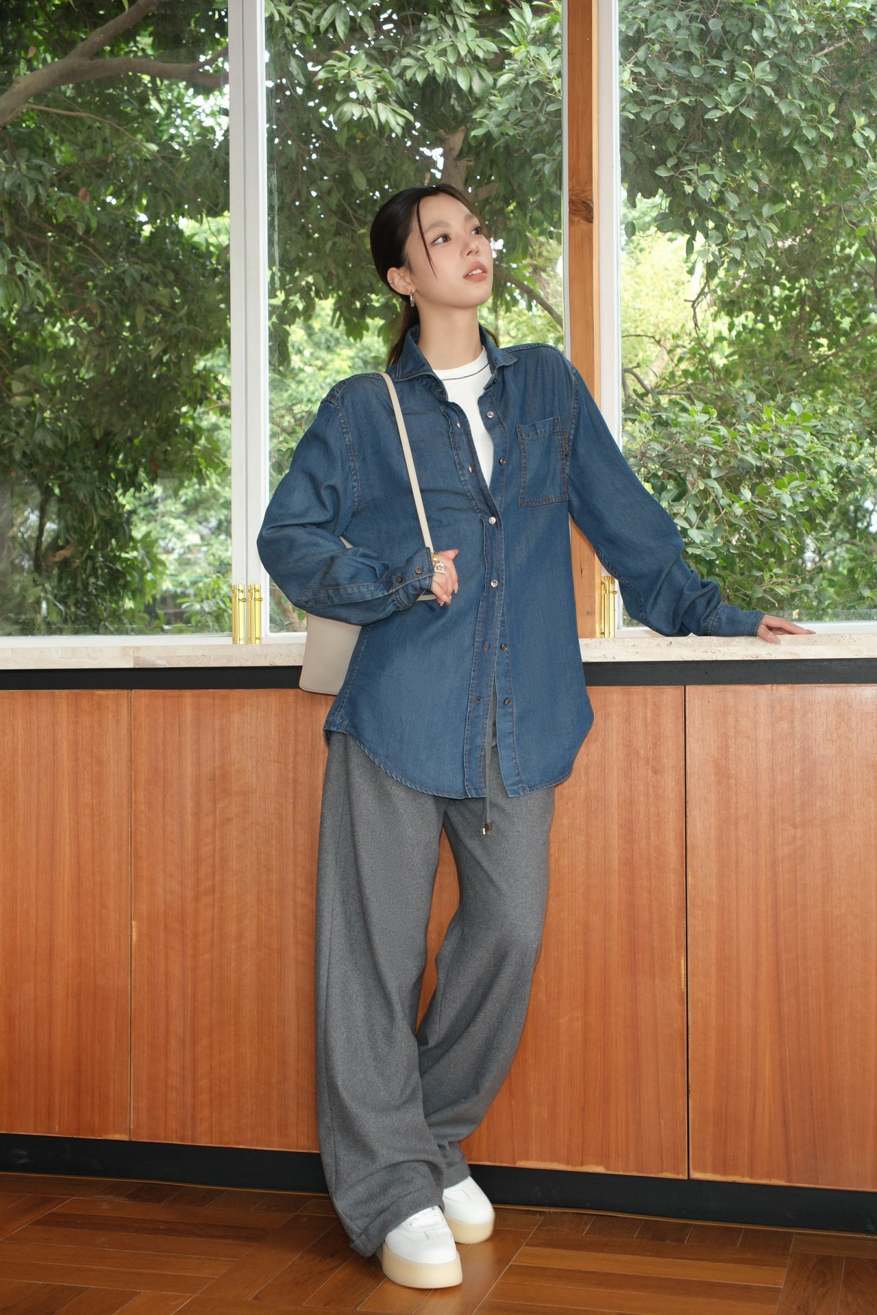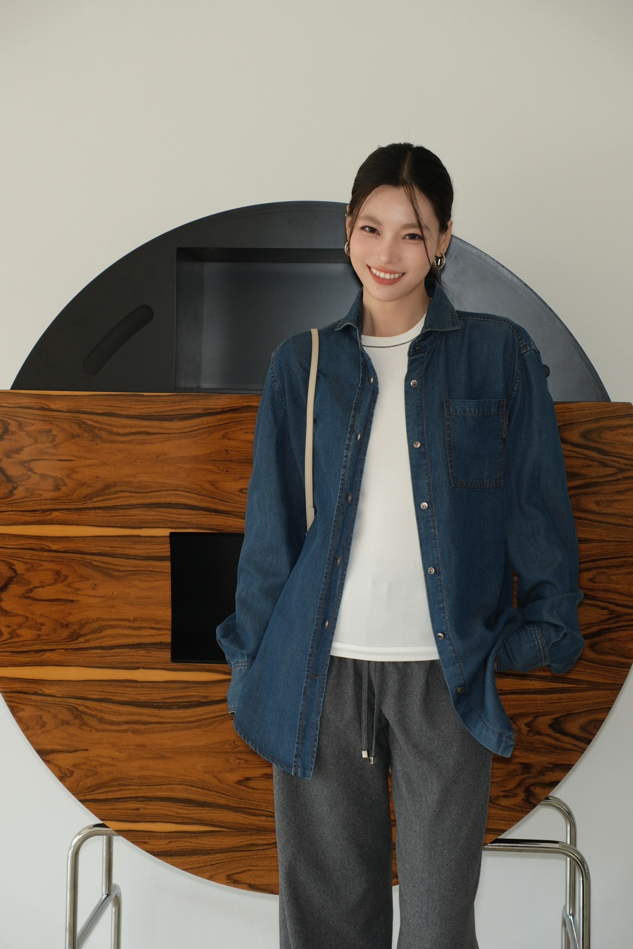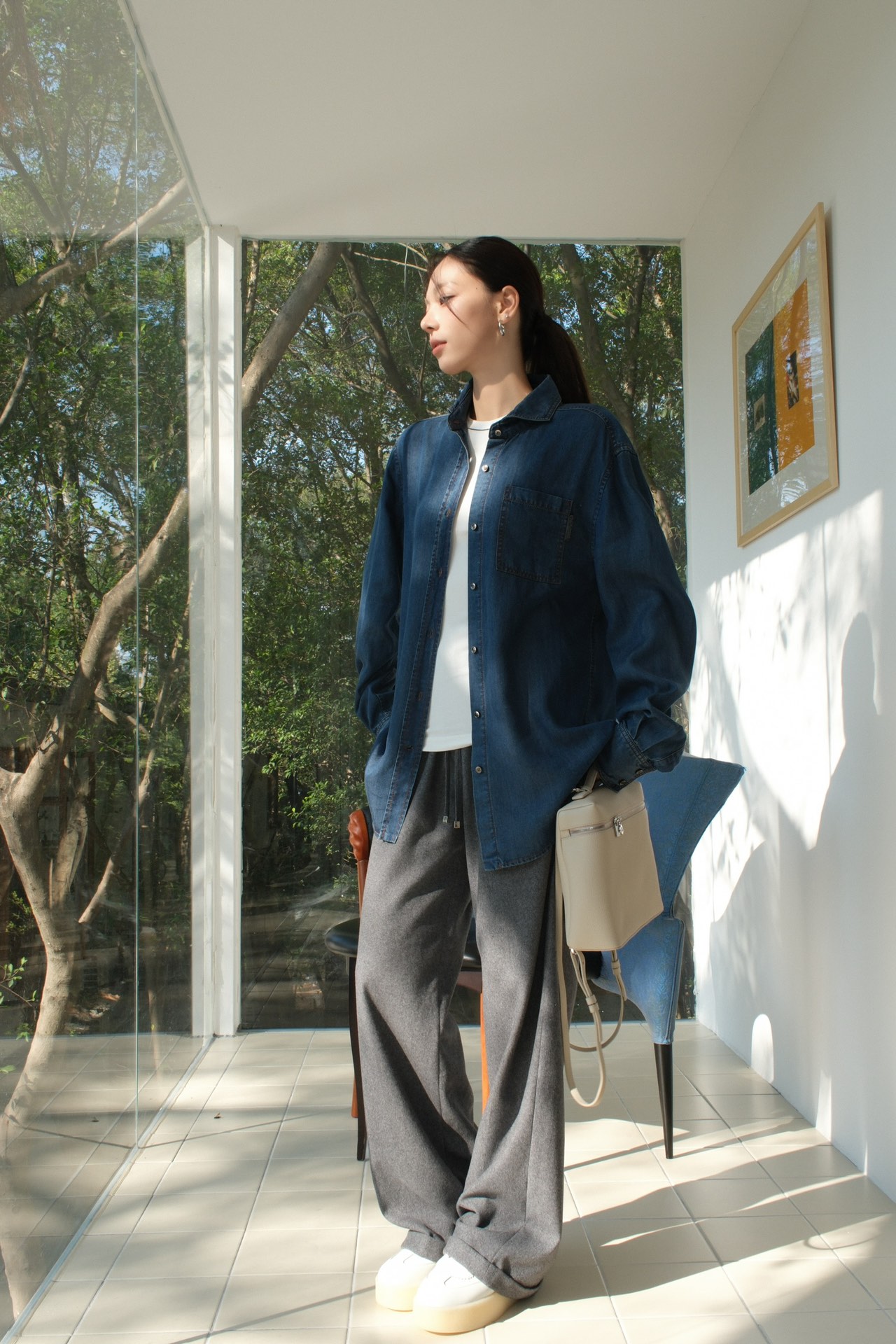 BC 家 2024秋冬新款牛仔衬衫 在胸前口袋处点缀了钉珠装饰,为衬衫引入一缕光彩 B高级感十足