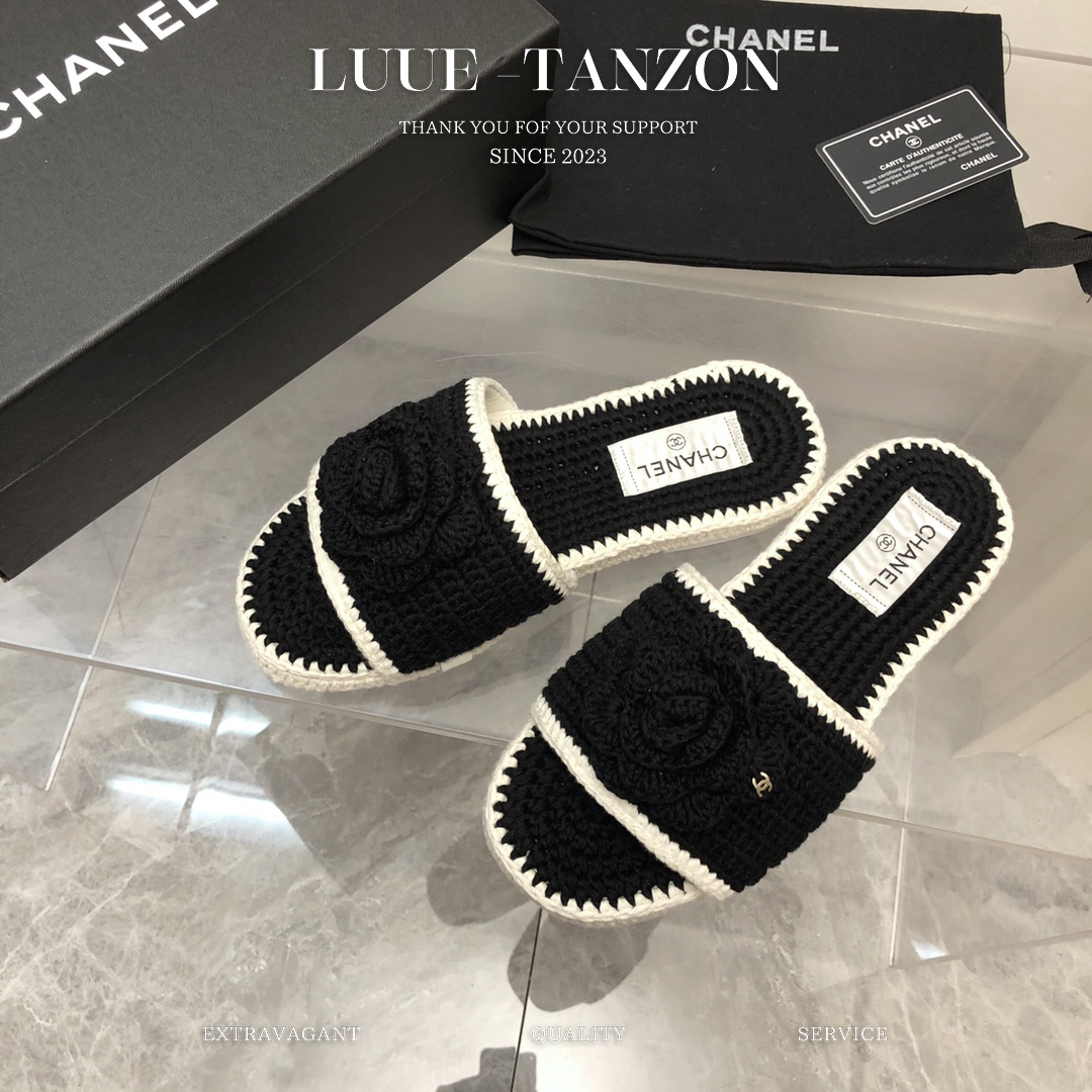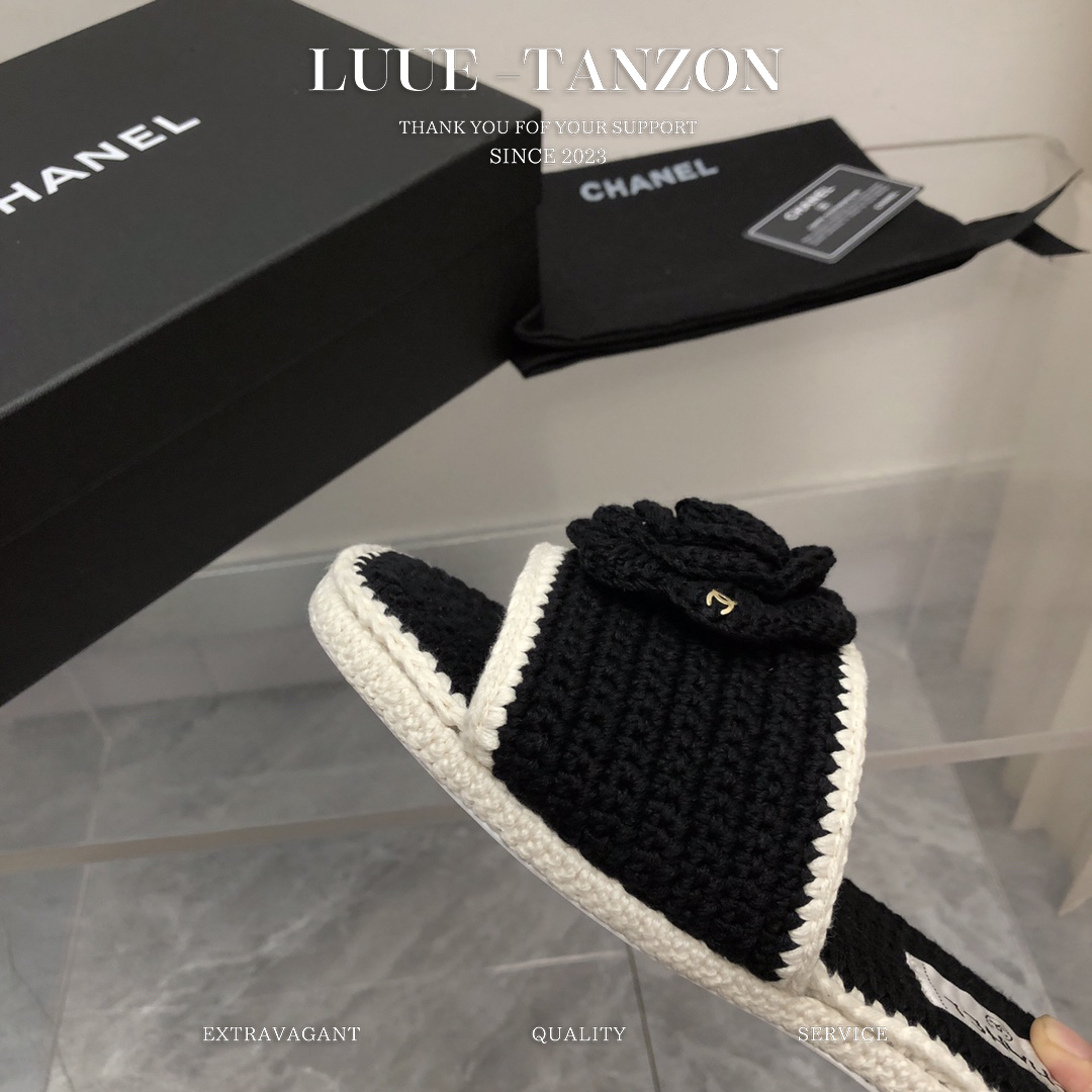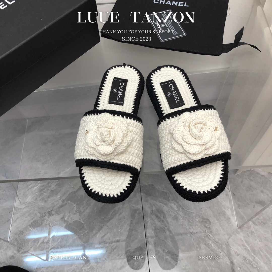 鞋面进口羊毛线编织混编 与原版一致 内里垫脚进口 混种羊皮 双C的logo搭配钩花纯手工编工艺相当细腻 原版水台底 搭配进口意大利真皮大底 码数35-41