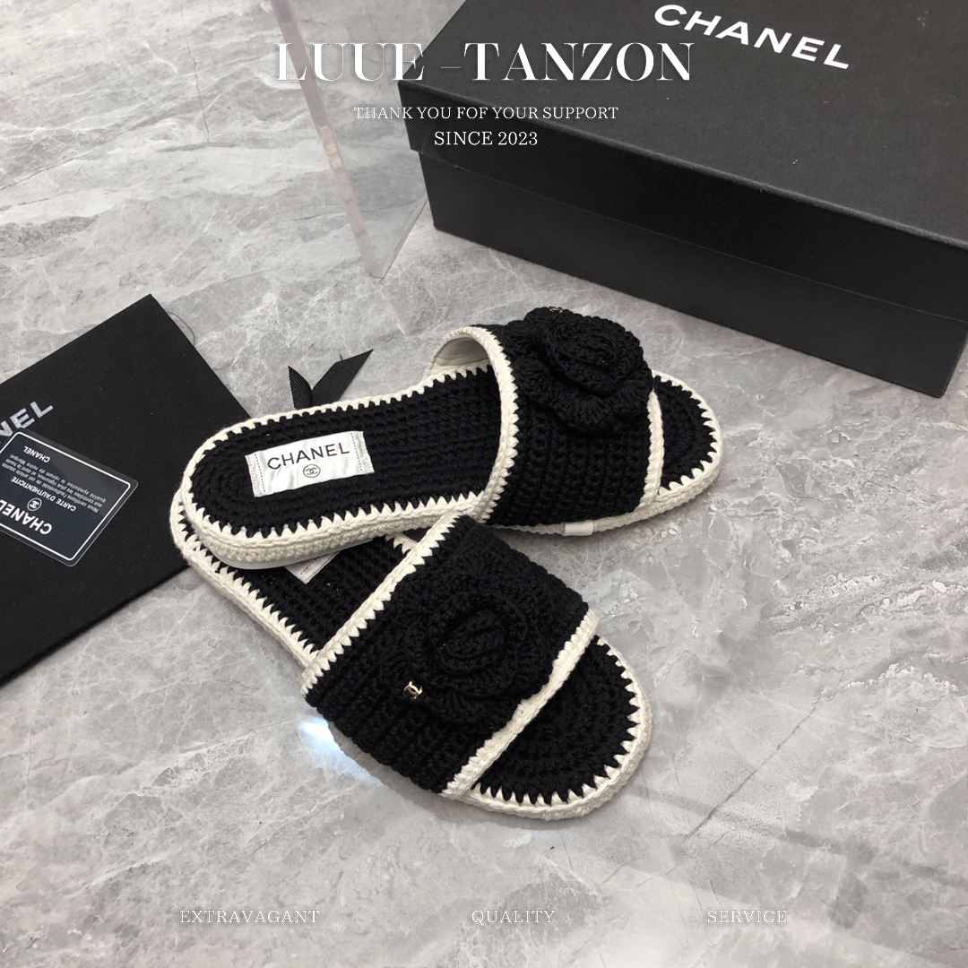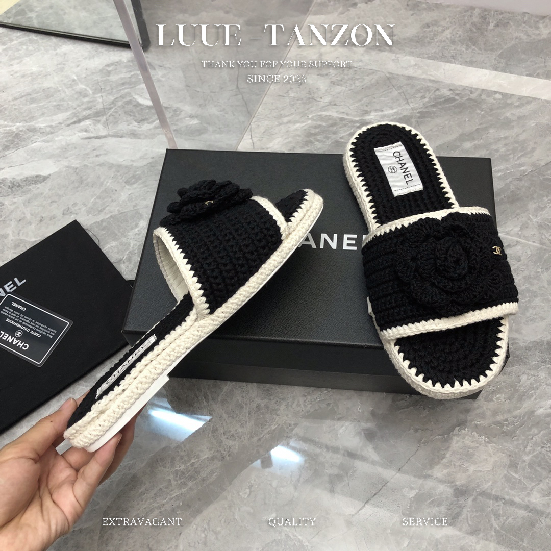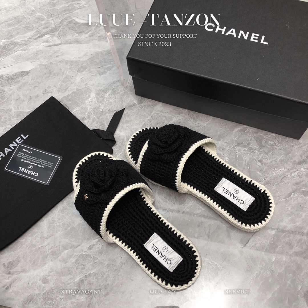 鞋面进口羊毛线编织混编 与原版一致 内里垫脚进口 混种羊皮 双C的logo搭配钩花纯手工编工艺相当细腻 原版水台底 搭配进口意大利真皮大底 码数35-41
