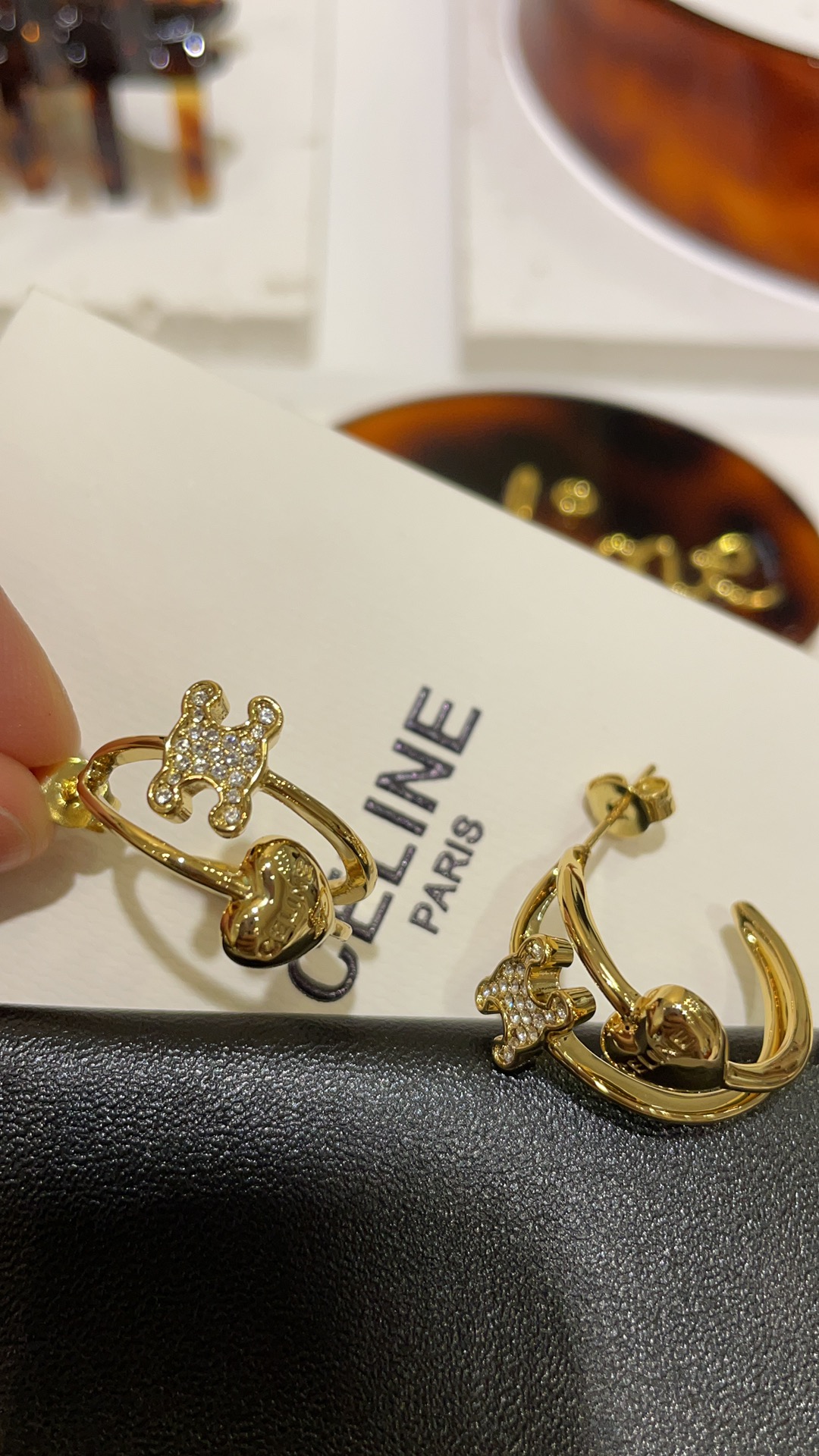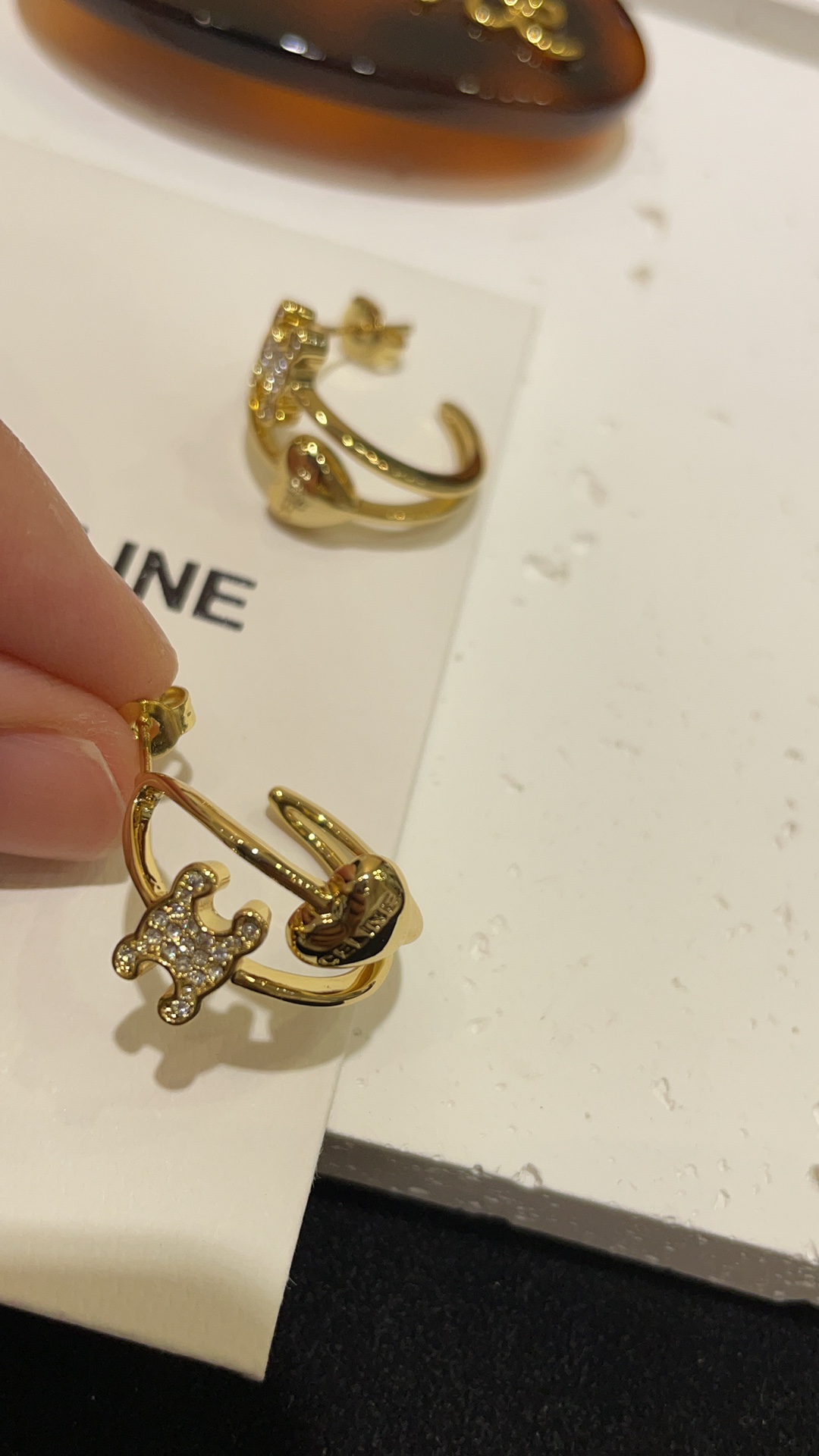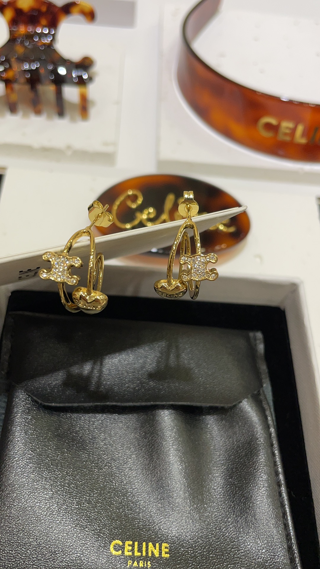 赛家 新款金色满钻凯旋门爱心耳环