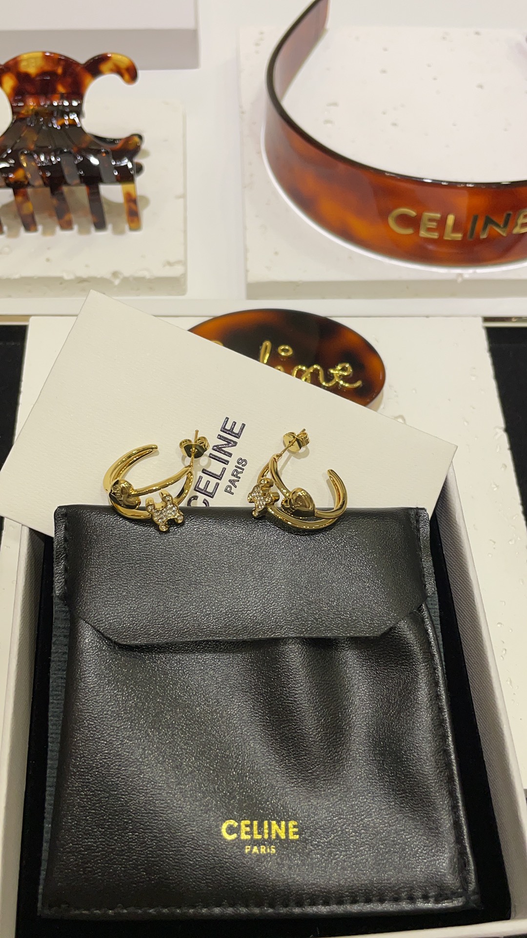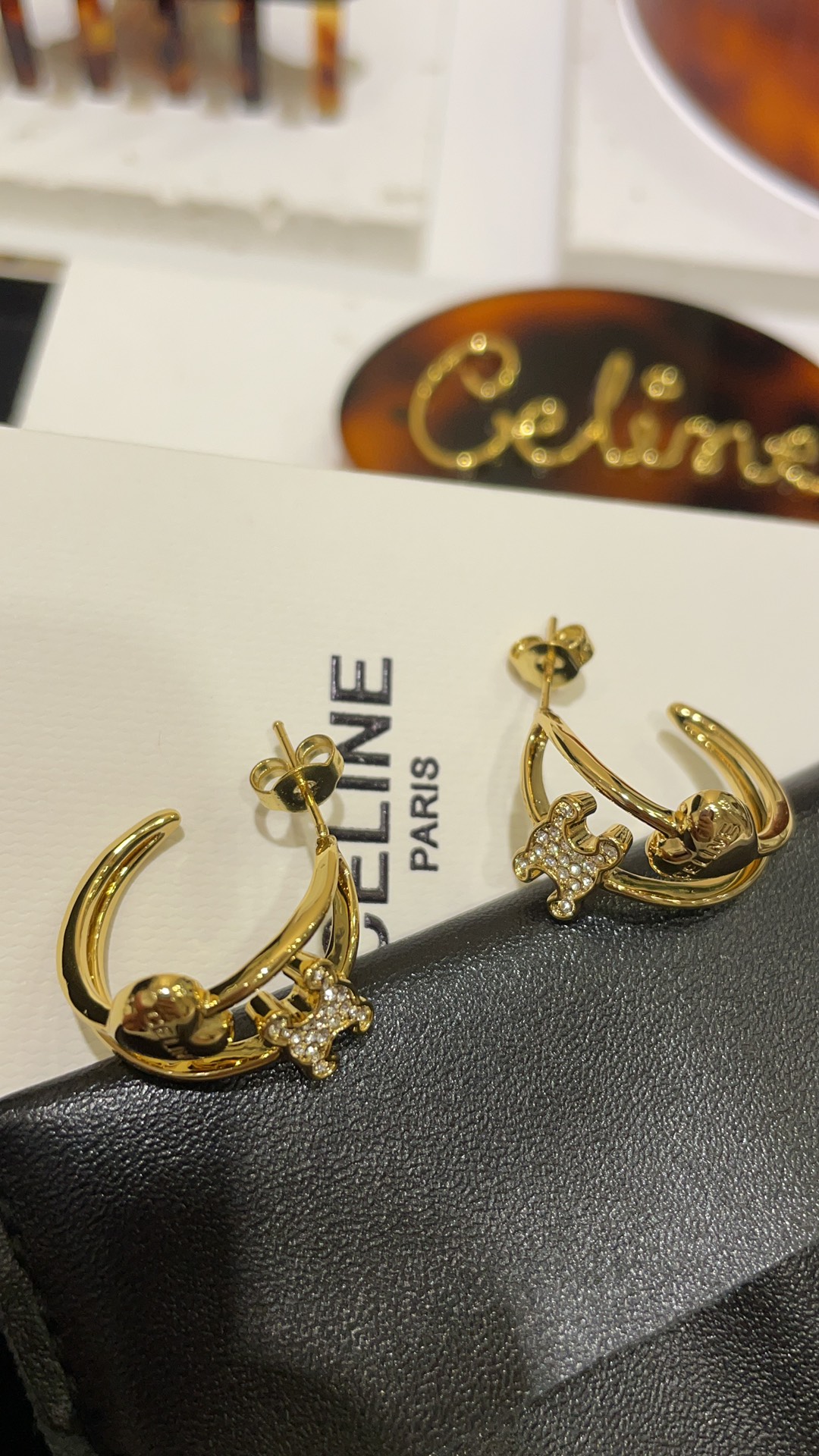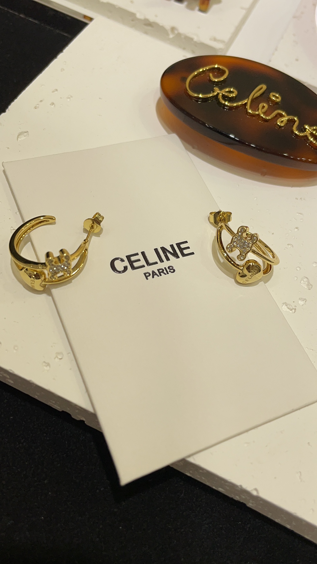 赛家 新款金色满钻凯旋门爱心耳环