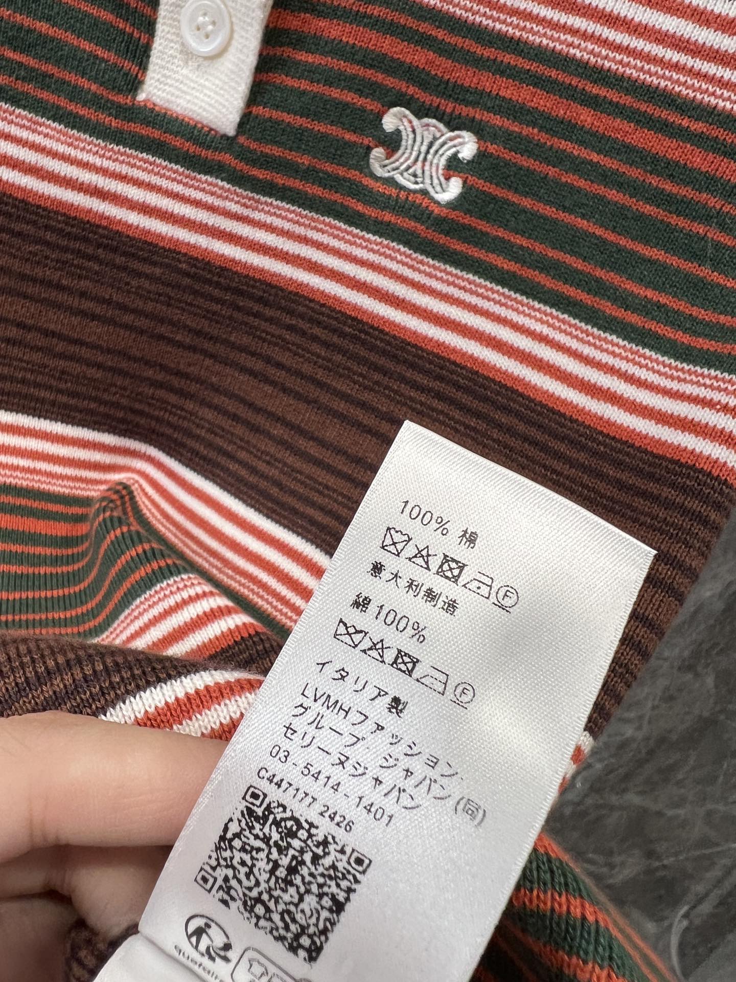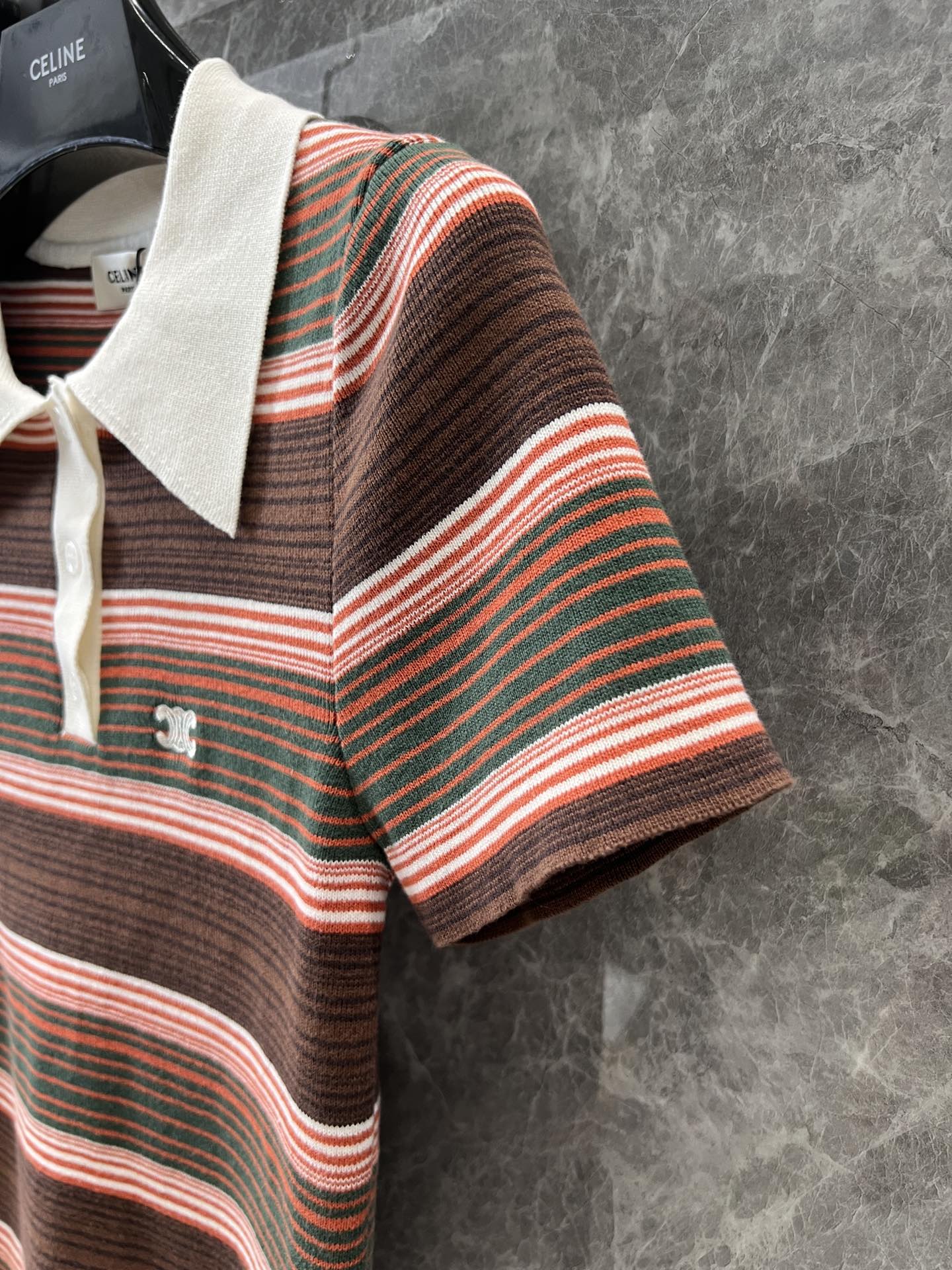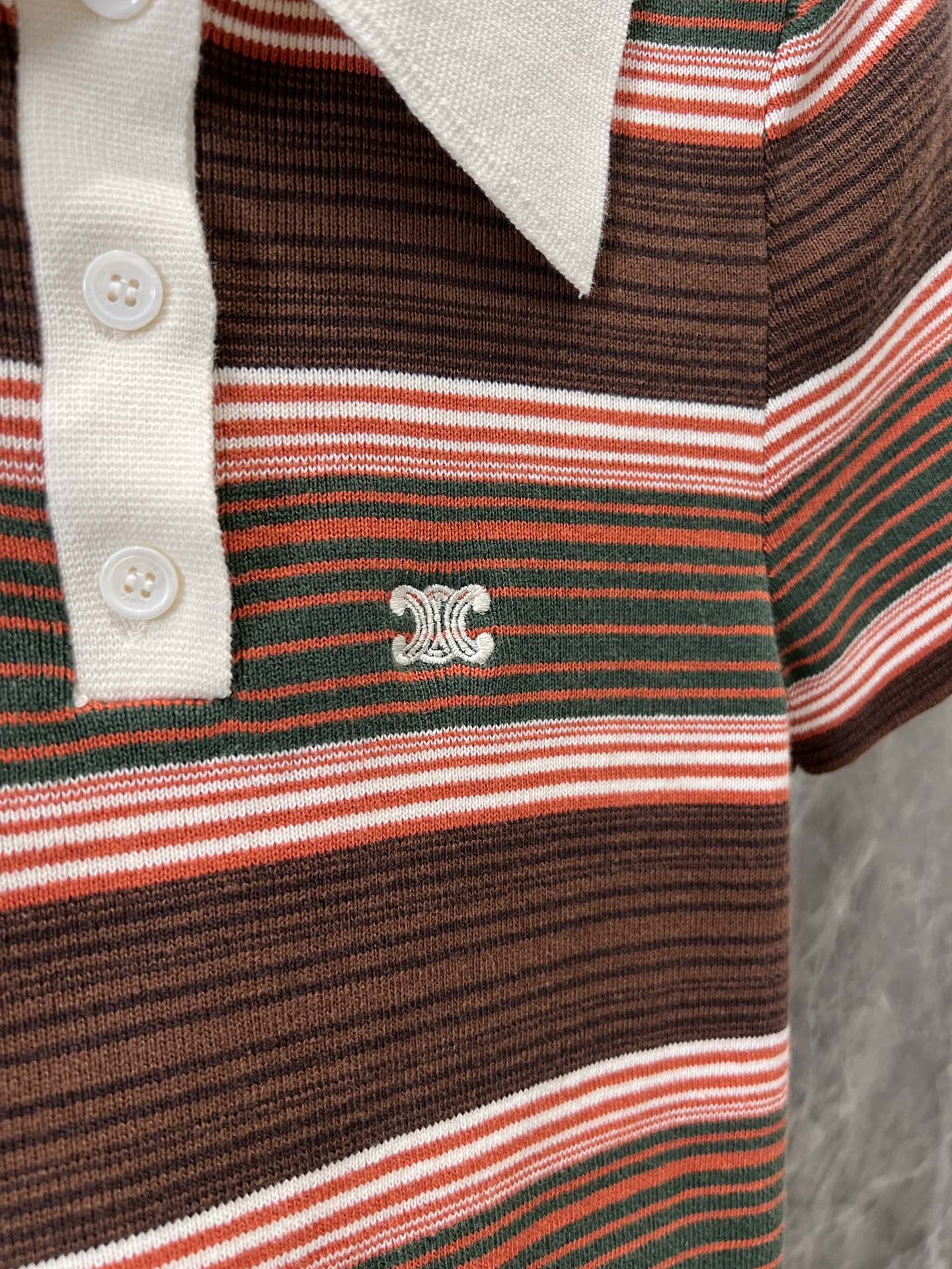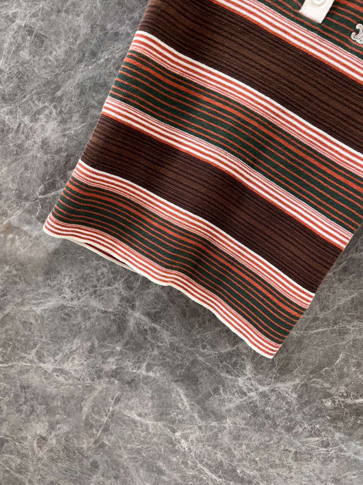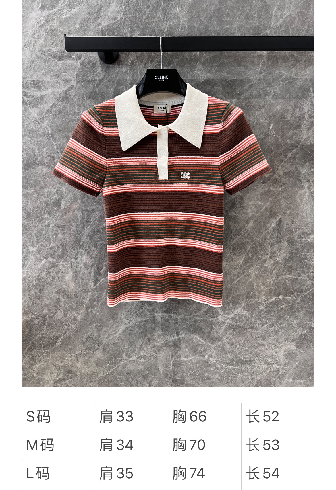 Celin* 25Ss早春新款 撞色条纹针织短袖Polo上衣丨⚠独家高版出品!经典的条纹设计 简约而不失格调 简直是百搭神器 搭配方面 更是不用愁啦 搭配牛仔裤 半身裙还是短裤 都能轻松驾驭 穿出不同的风格!现货发售S/M/L
