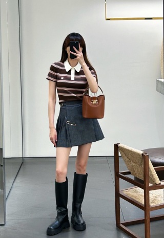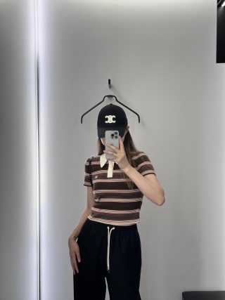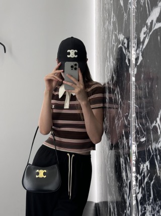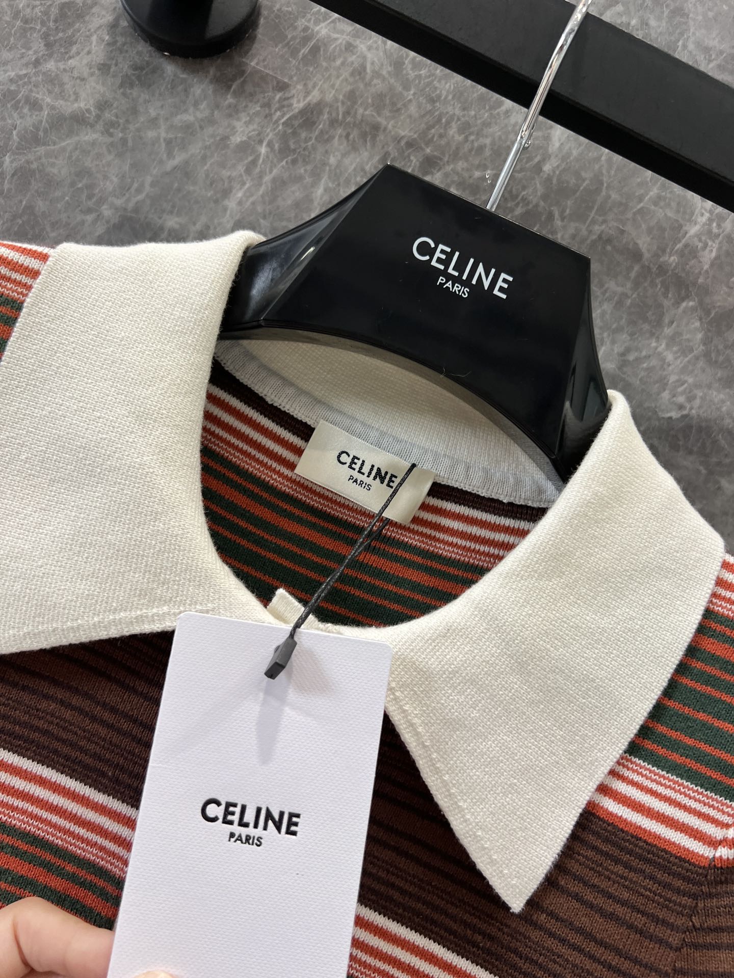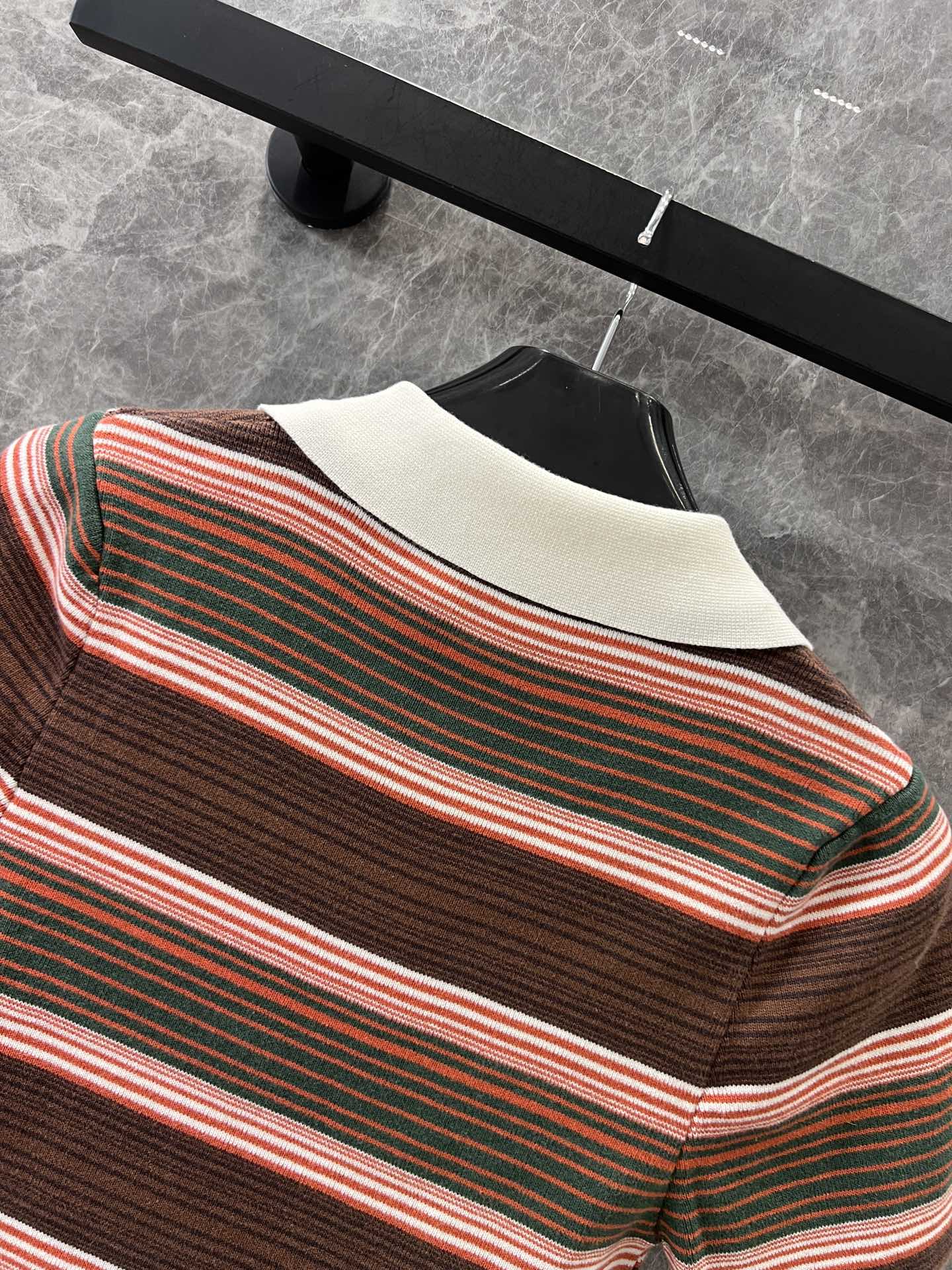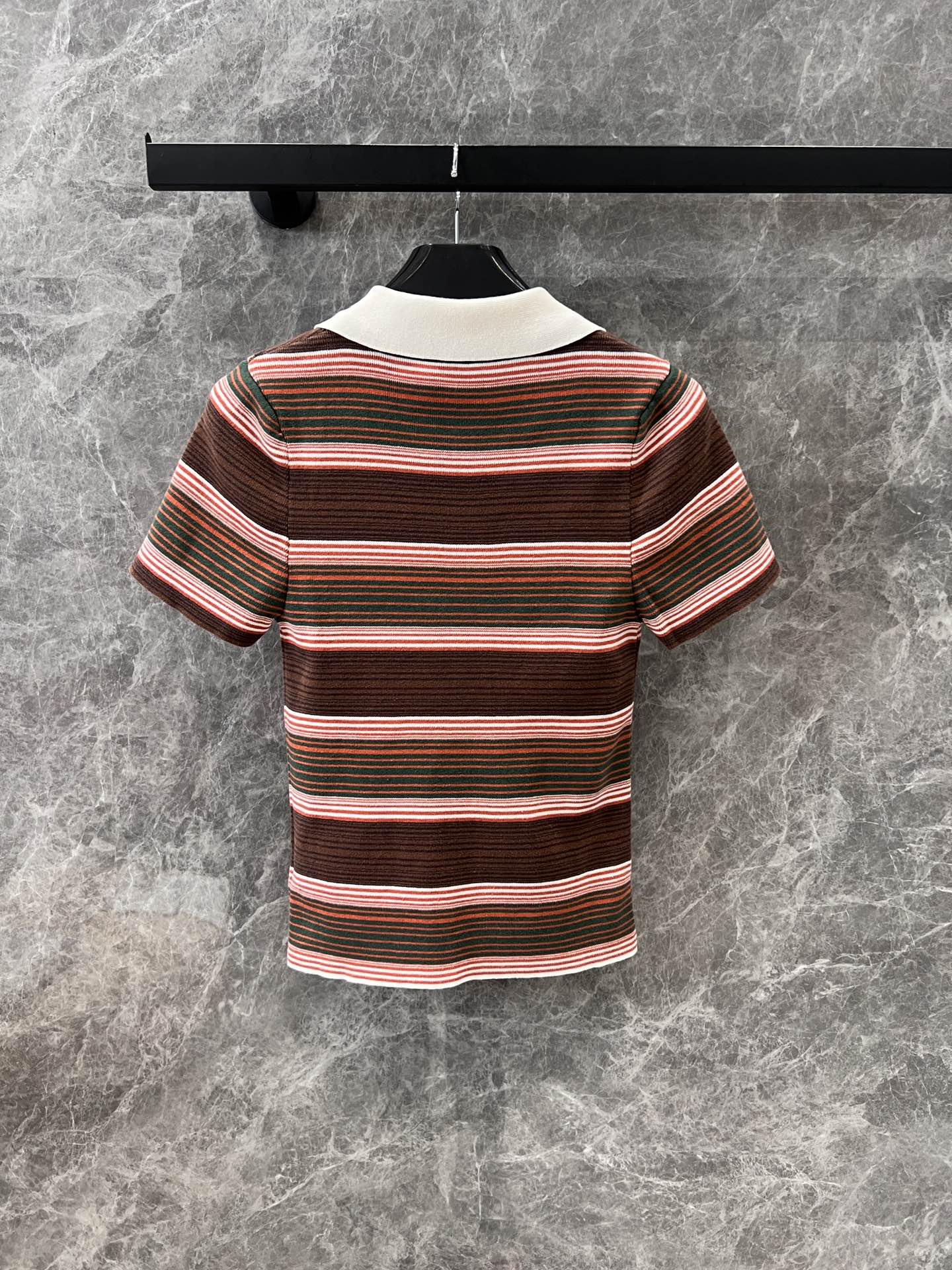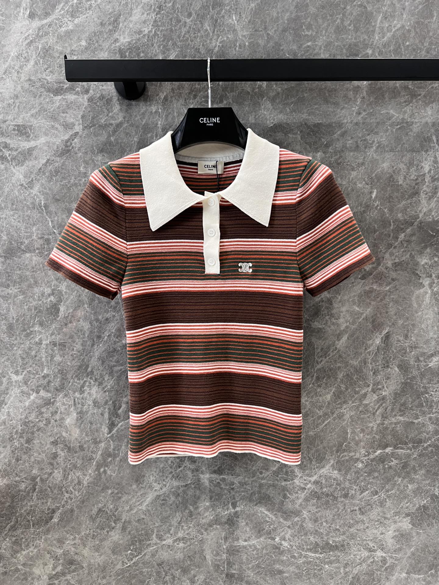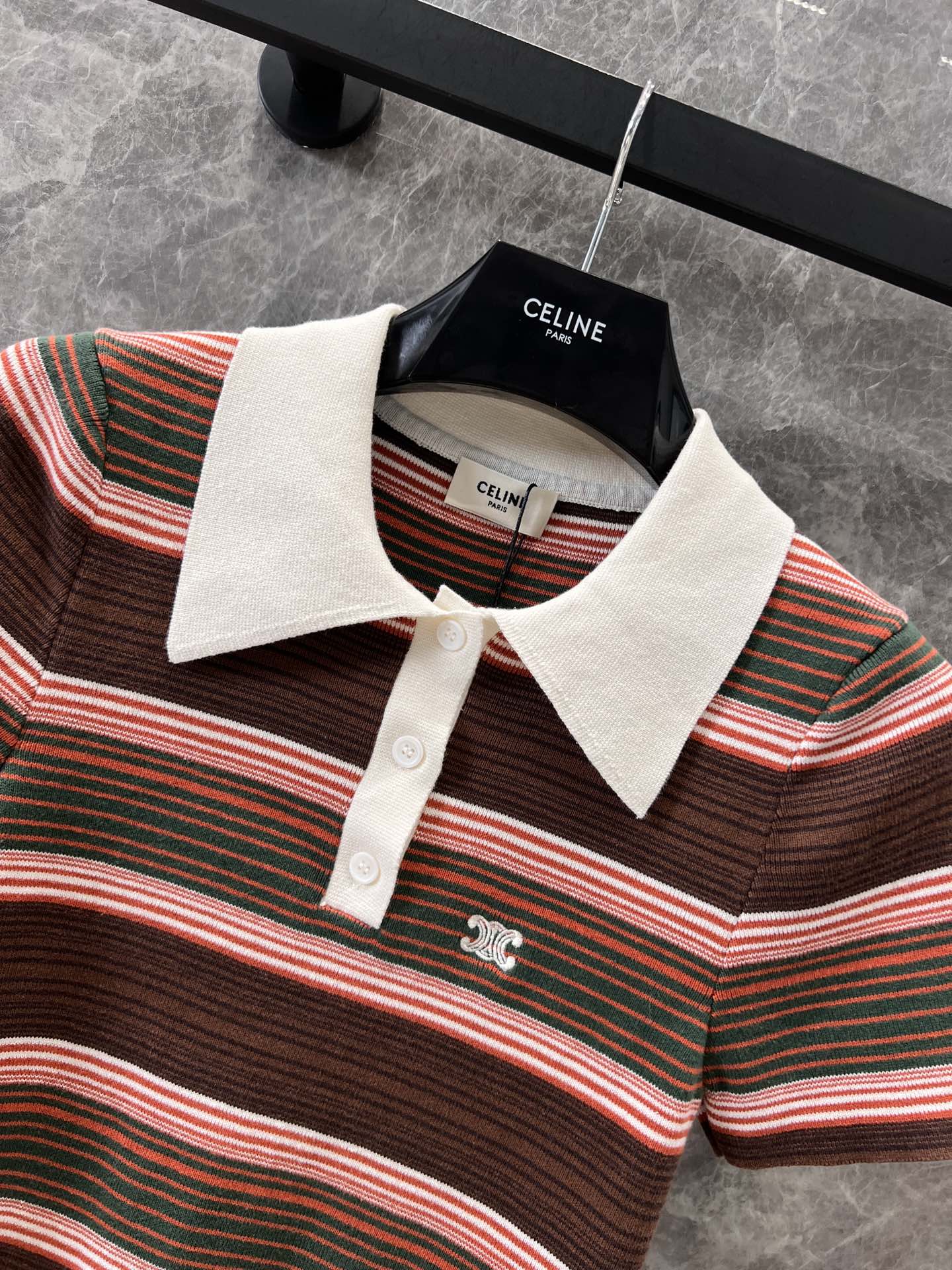 Celin* 25Ss早春新款 撞色条纹针织短袖Polo上衣丨⚠独家高版出品!经典的条纹设计 简约而不失格调 简直是百搭神器 搭配方面 更是不用愁啦 搭配牛仔裤 半身裙还是短裤 都能轻松驾驭 穿出不同的风格!现货发售S/M/L