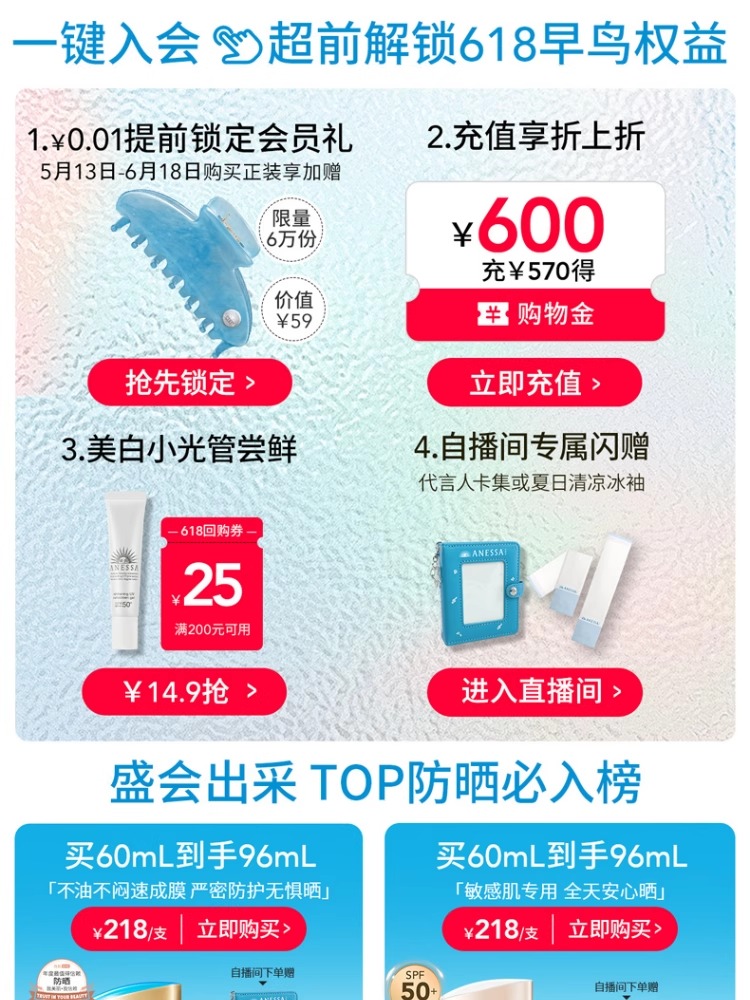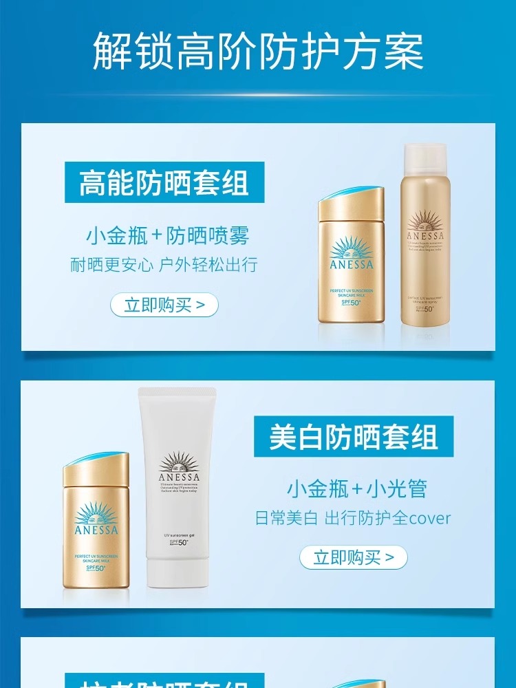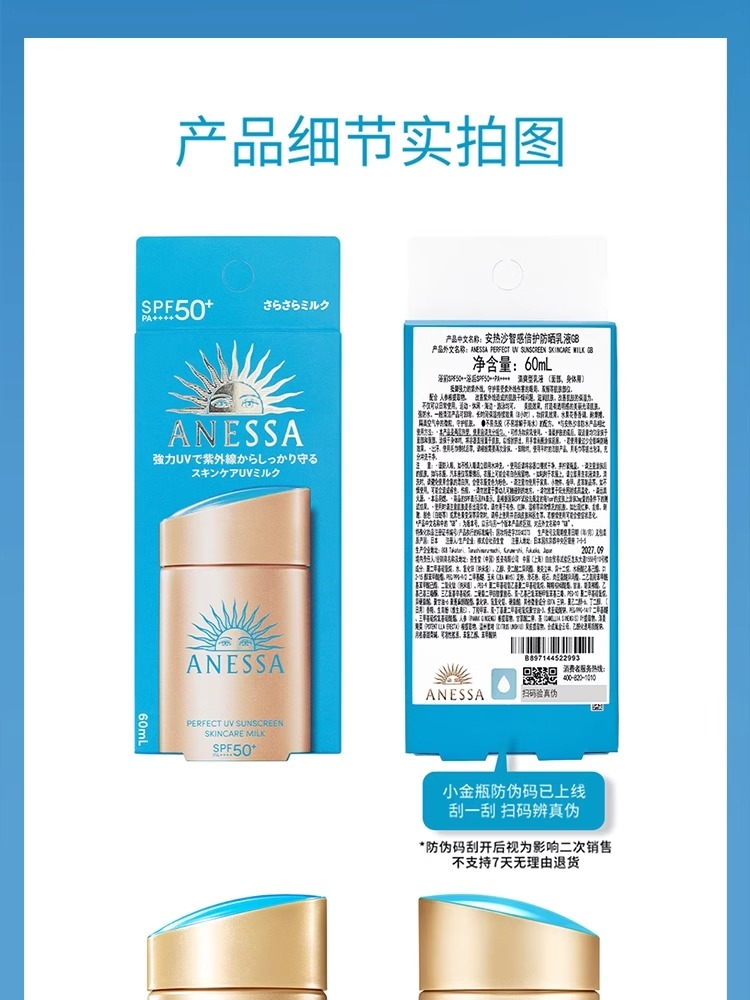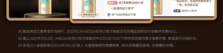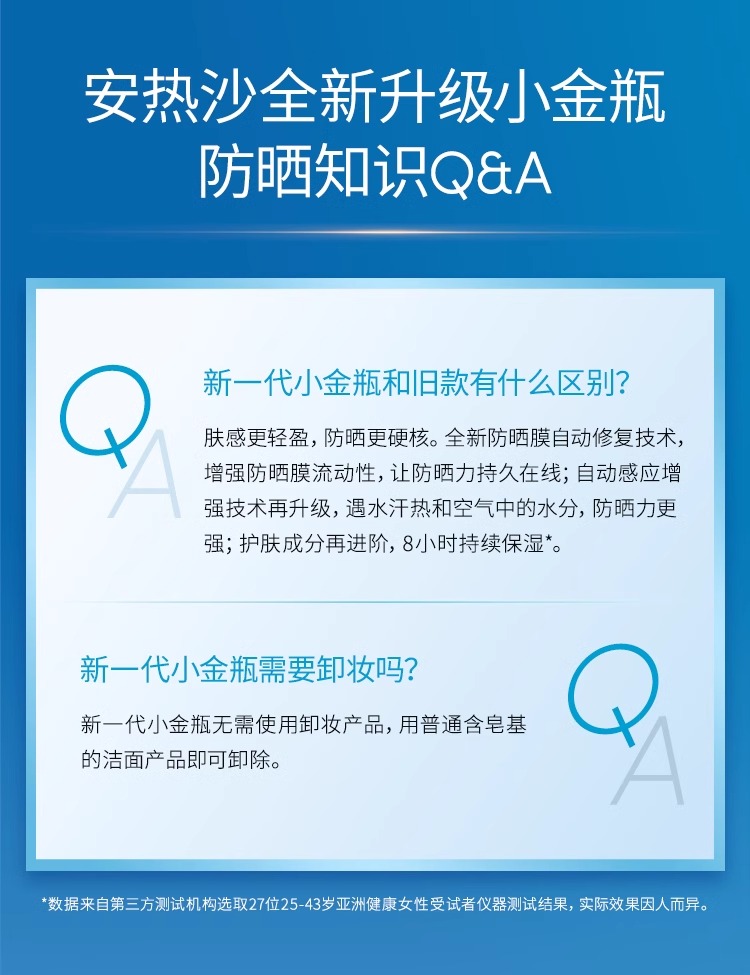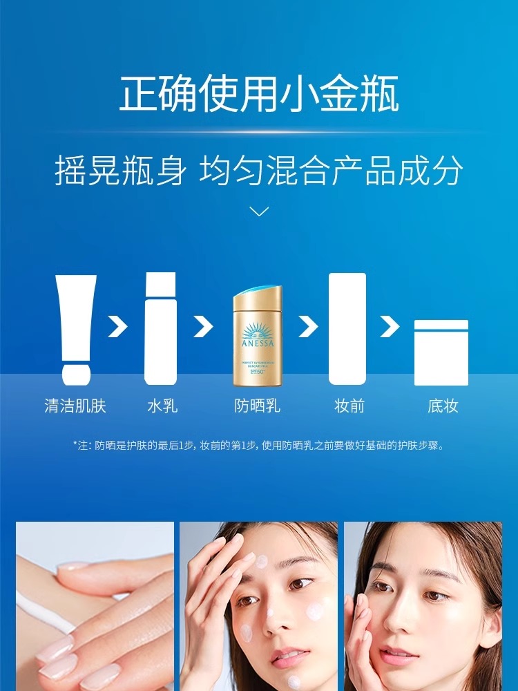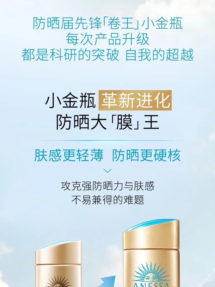 安热沙小金瓶防晒霜耐晒清爽隔离成膜快肤感好新升级