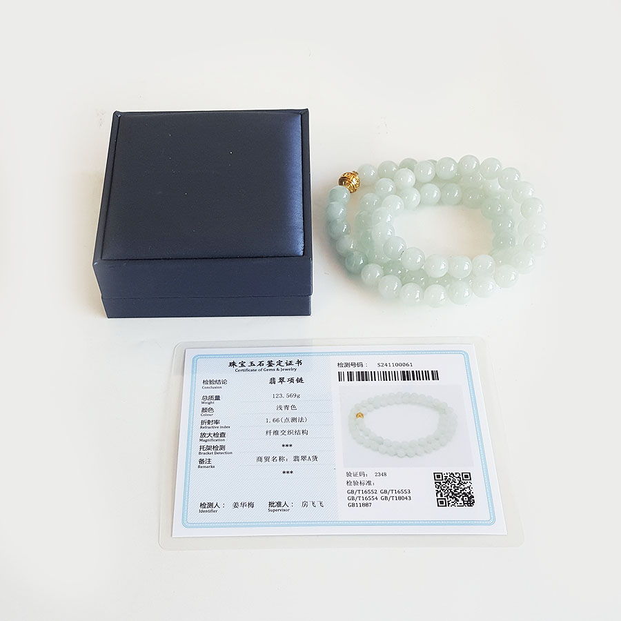 名称 | 天然精品约10.4MM无杂裂糯种翡翠圆珠项链 |