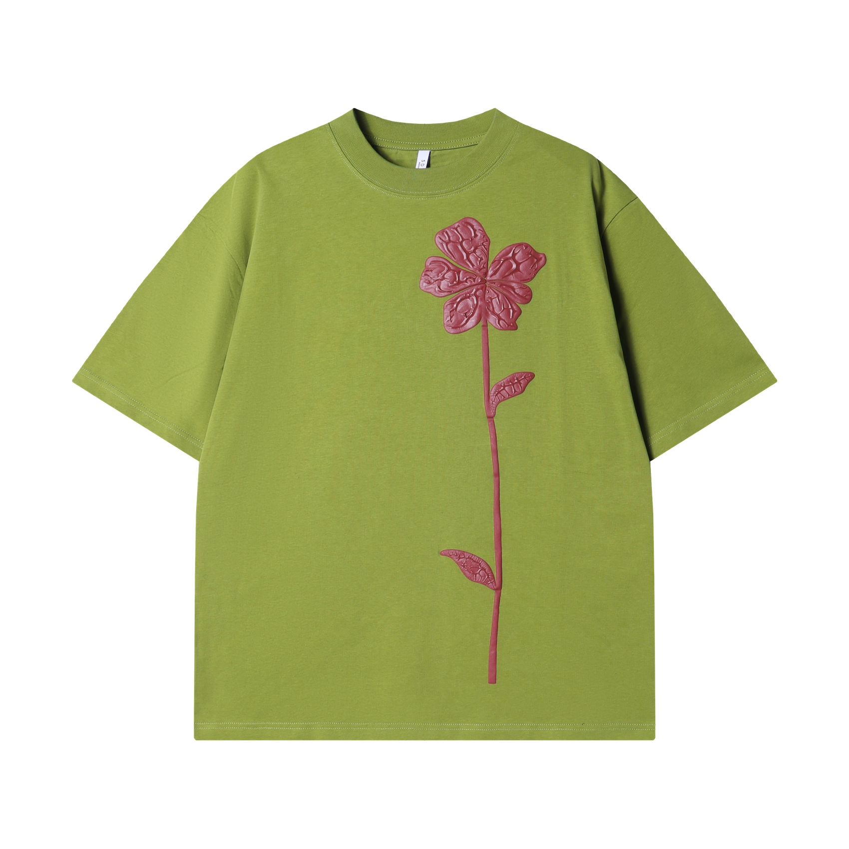 T1468夏季新款时尚拼接花卉男士短袖潮流百搭休闲T恤宽松小众上衣