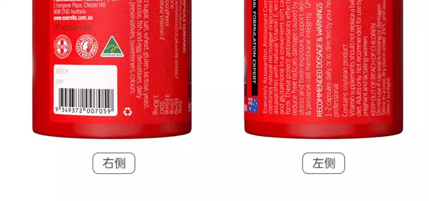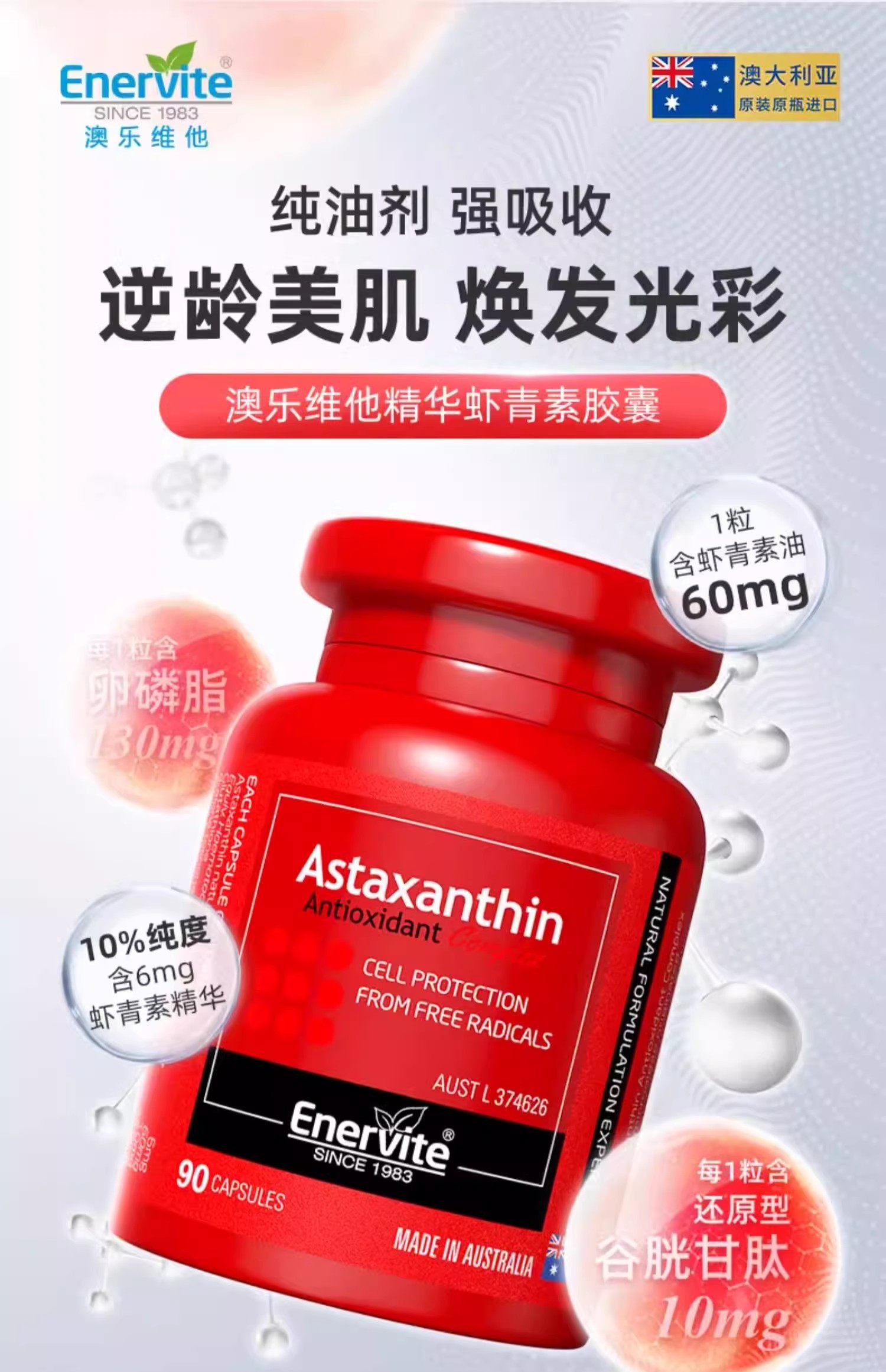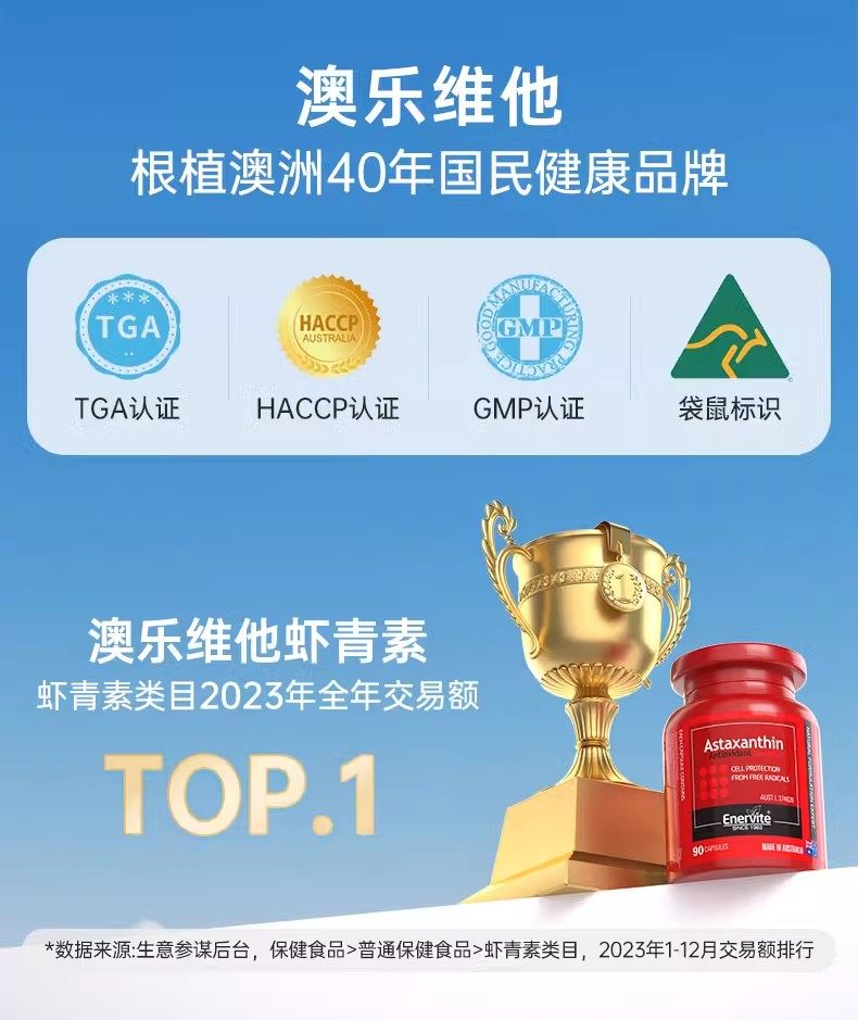 澳洲澳乐维他6mg虾青素油胶囊雨生红球藻口服精华官方谷胱甘肽