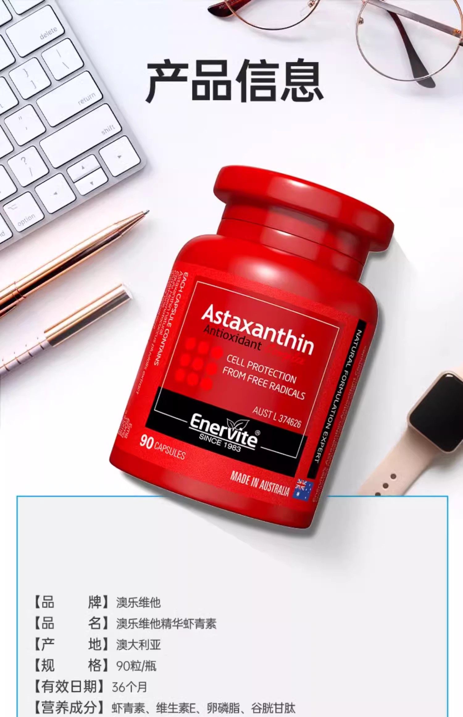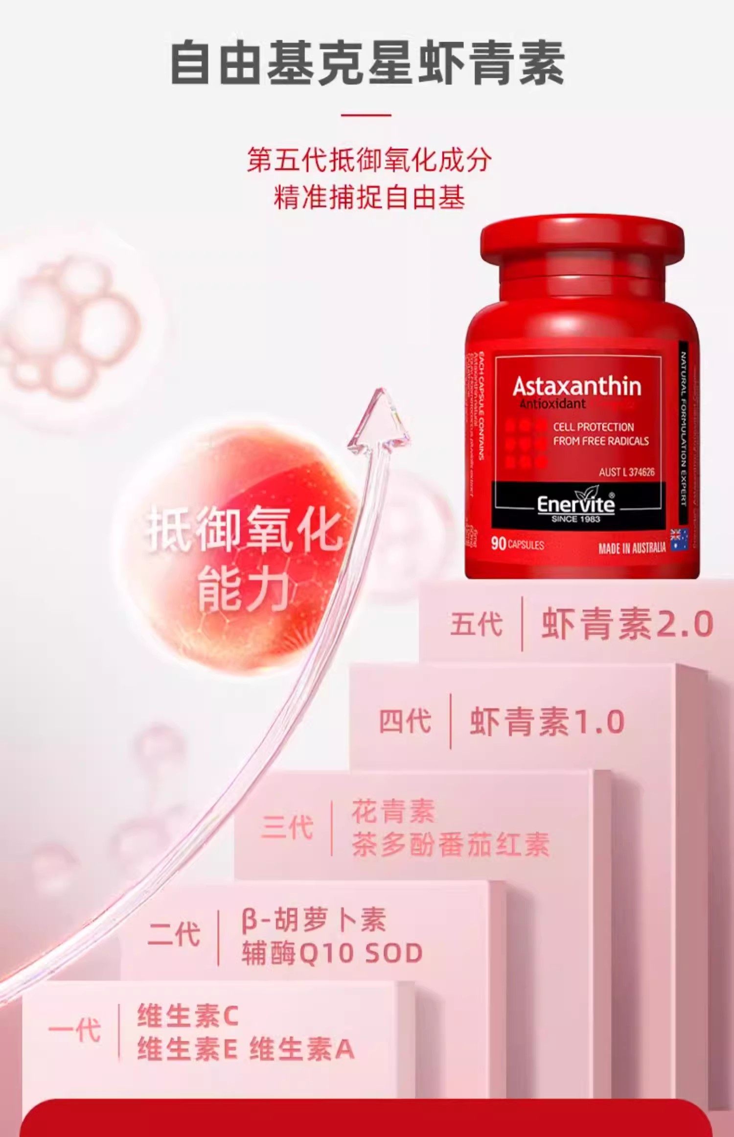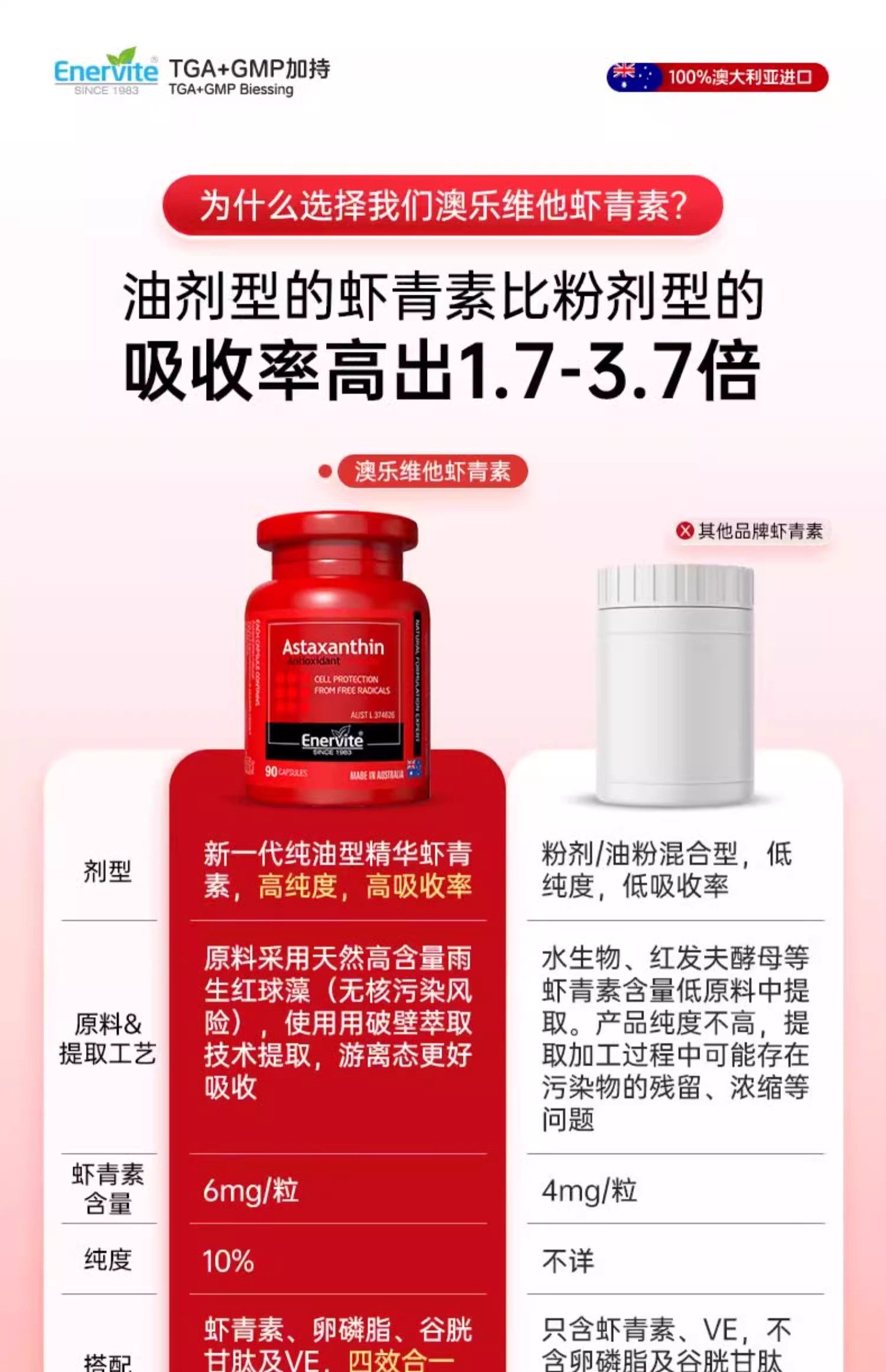 澳洲澳乐维他6mg虾青素油胶囊雨生红球藻口服精华官方谷胱甘肽